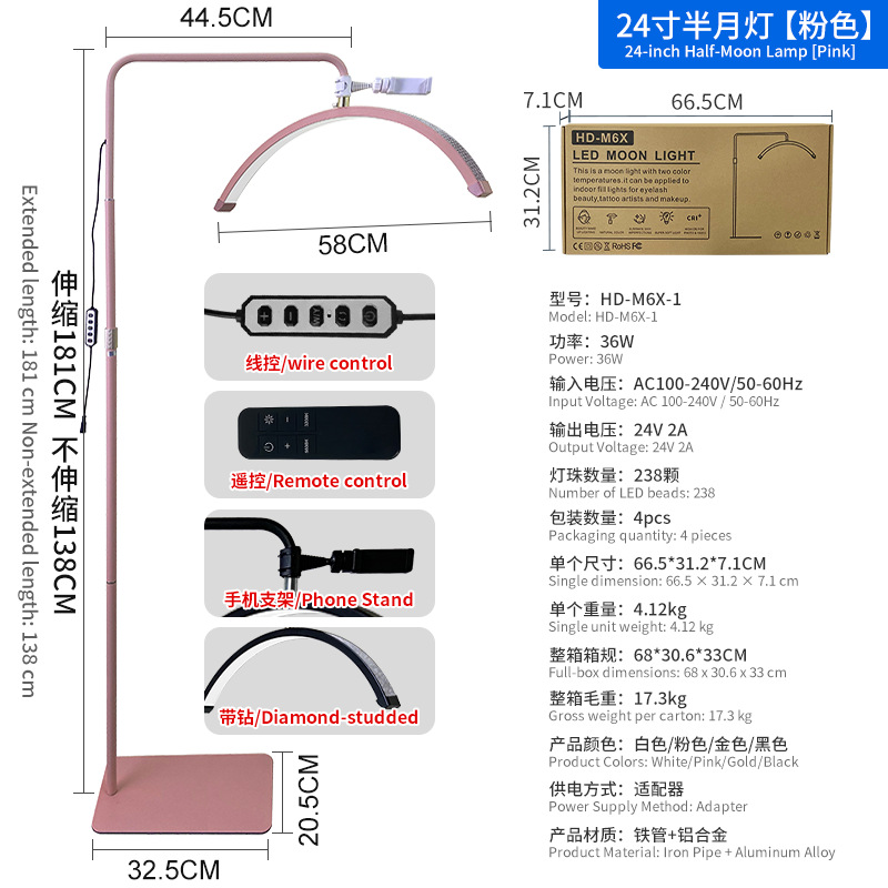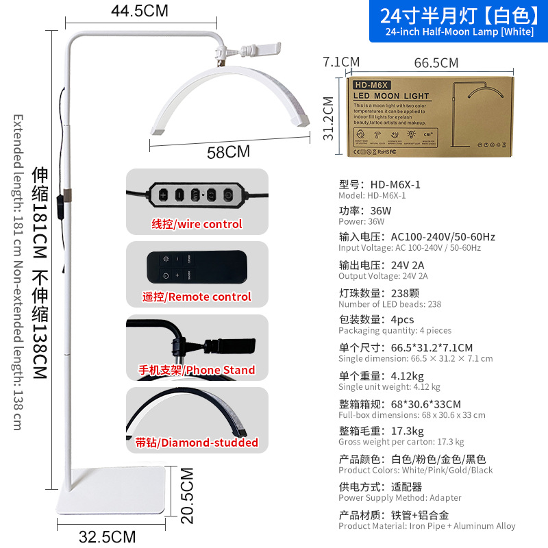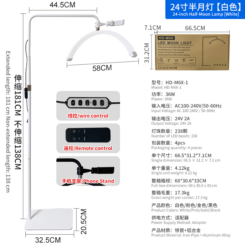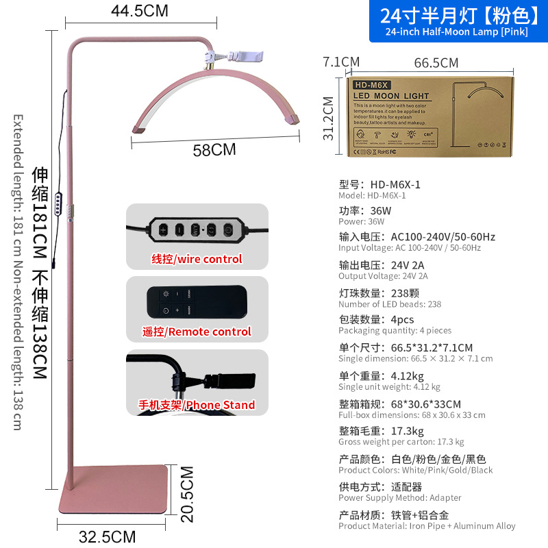 美睫灯半月美容照脸补光灯护眼纹绣无影灯24寸弧形u型落地灯纹眉