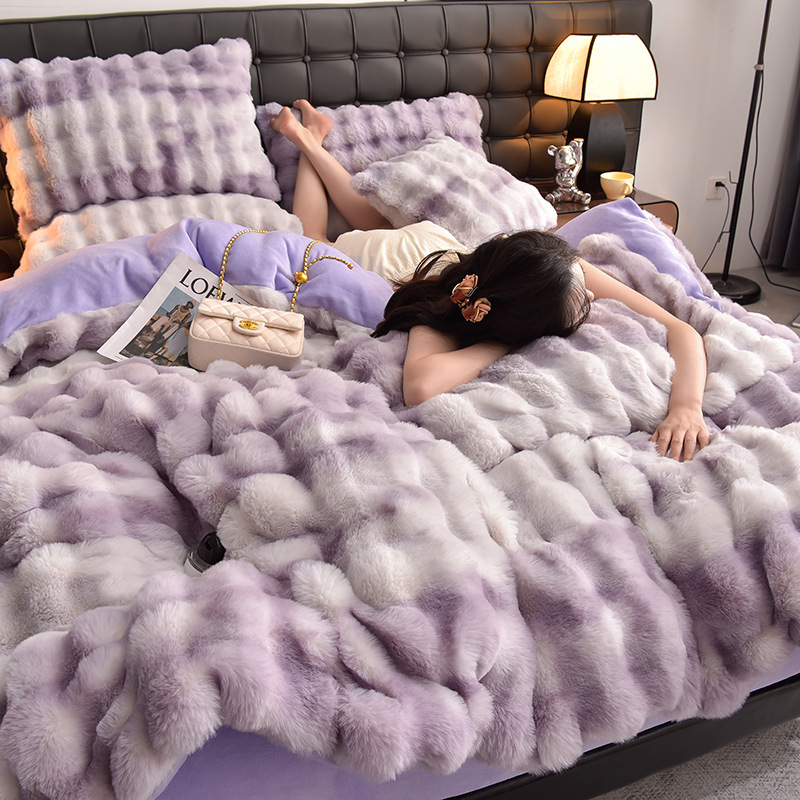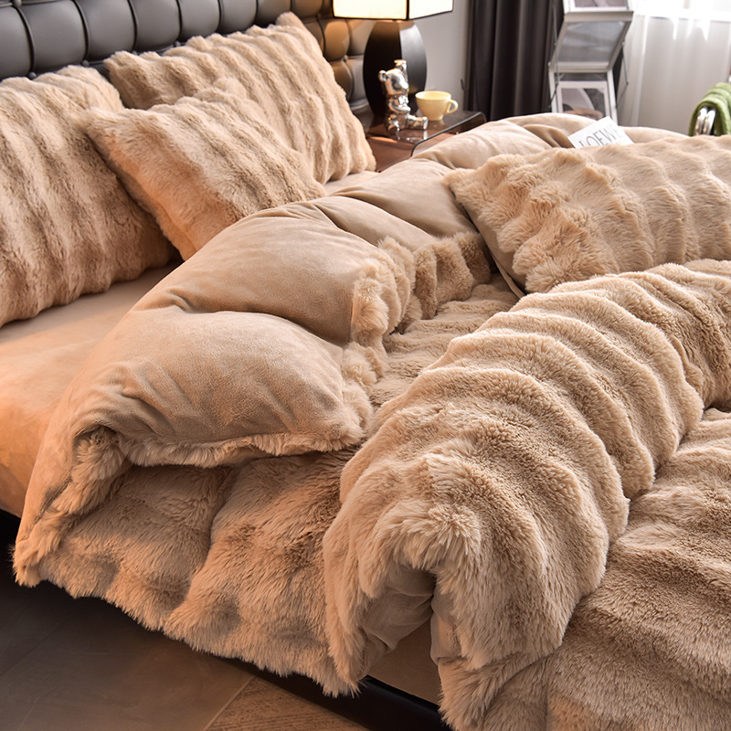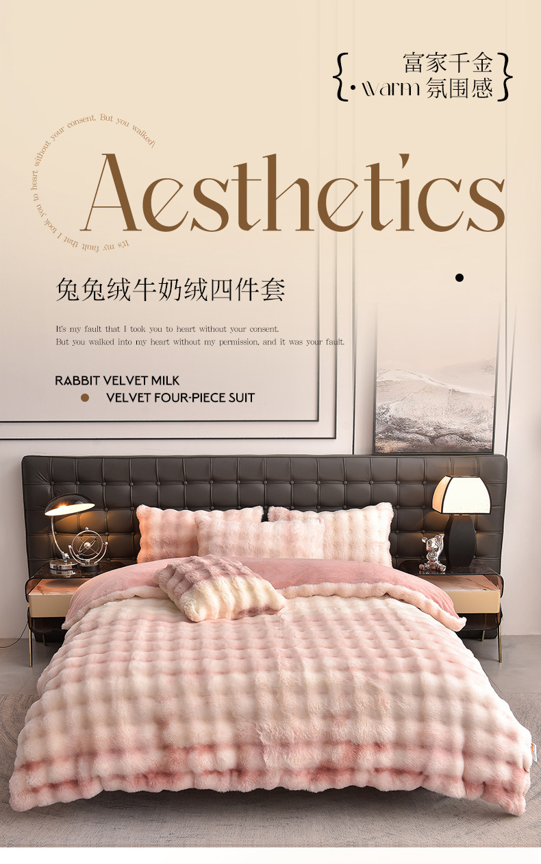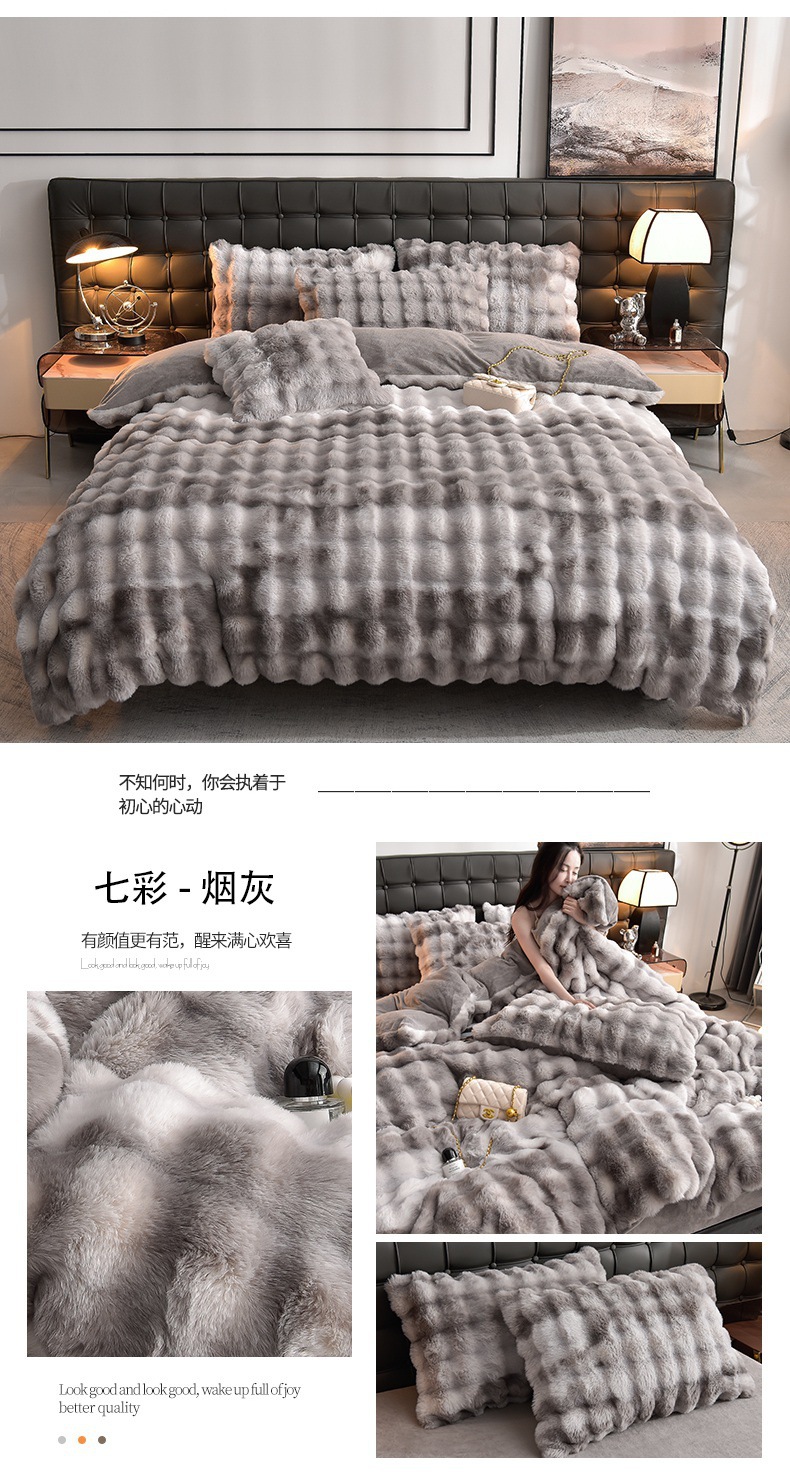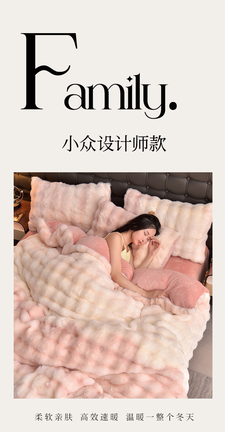 2025新款兔毛直播热款兔毛兔兔绒兔毛床上用品四件套床单被套