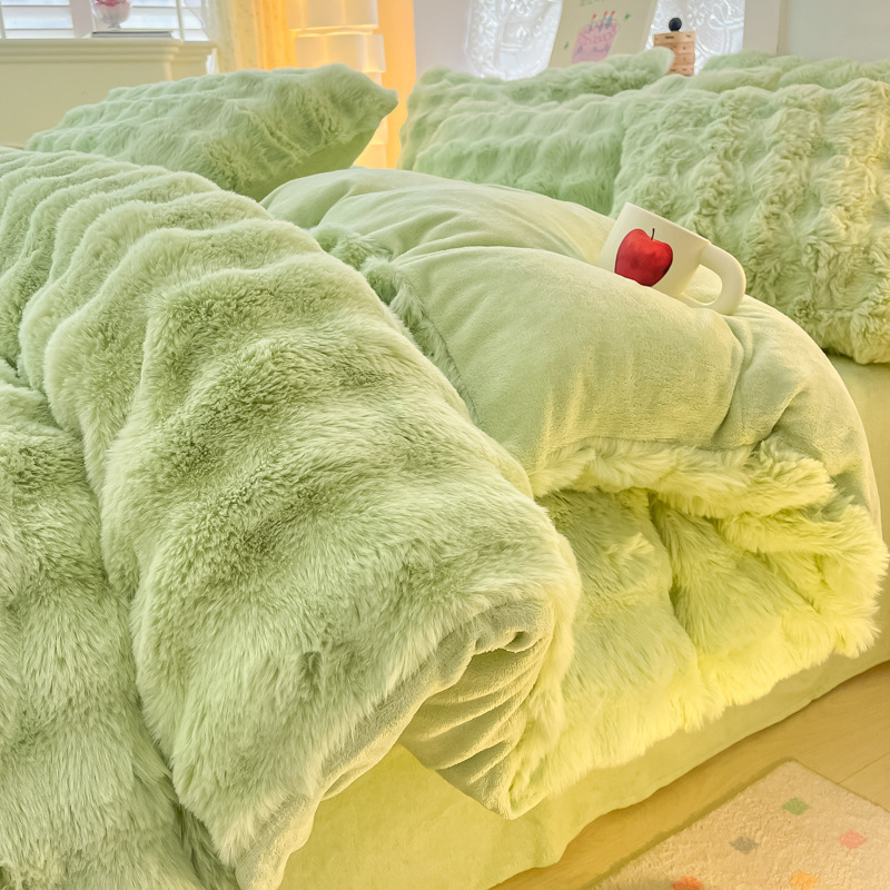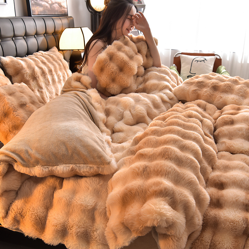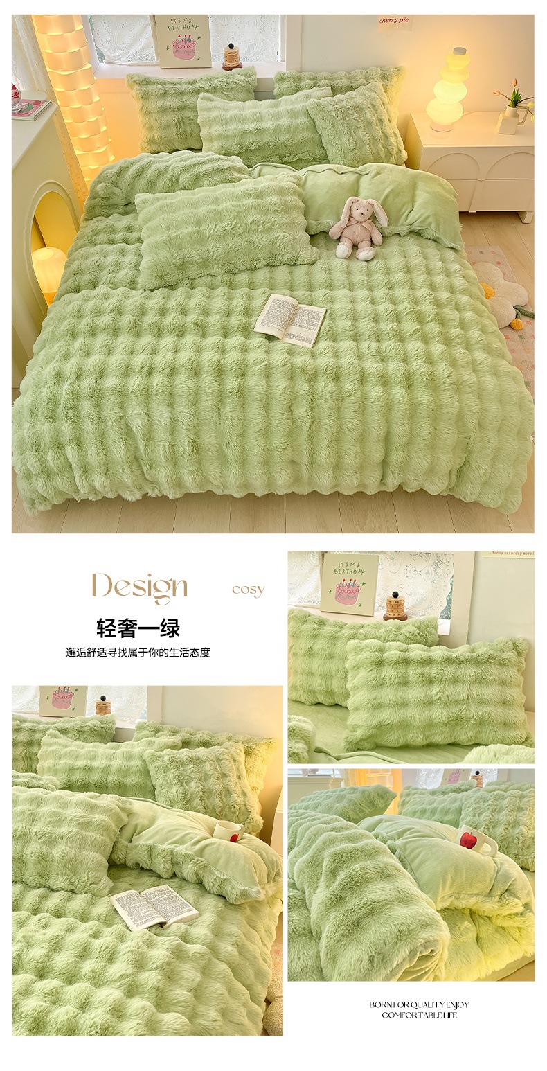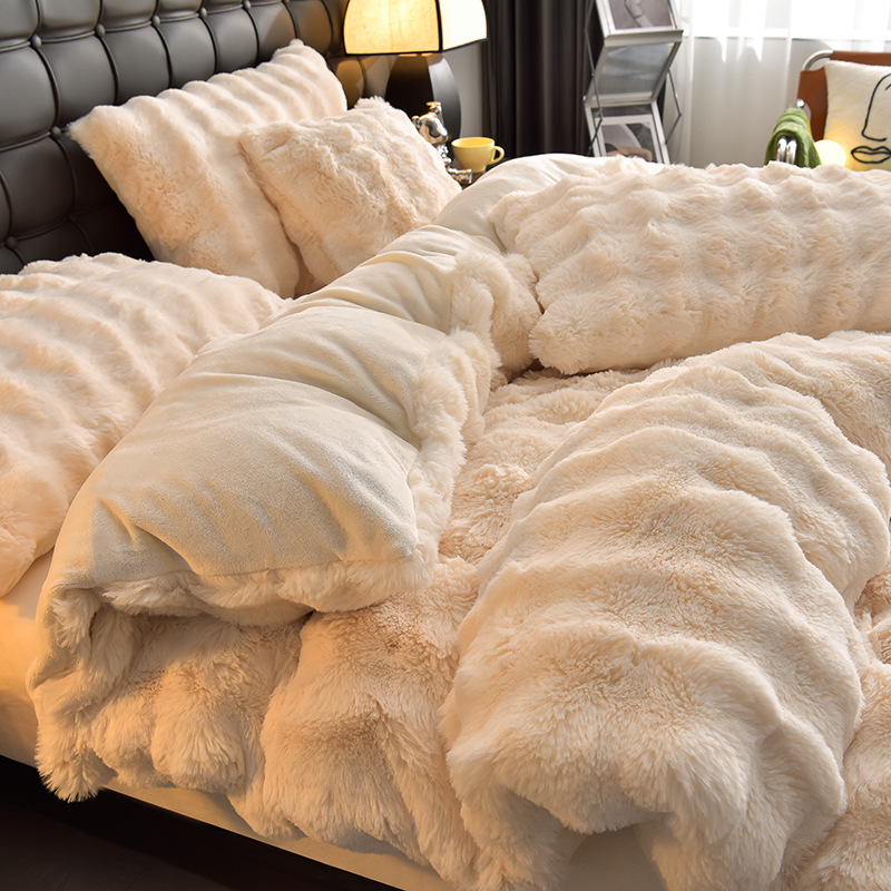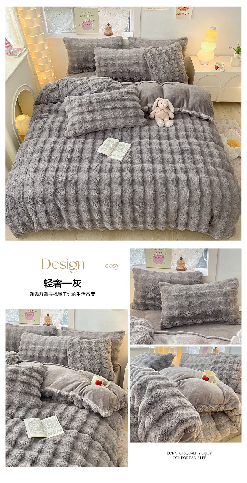 2025新款兔毛直播热款兔毛兔兔绒兔毛床上用品四件套床单被套