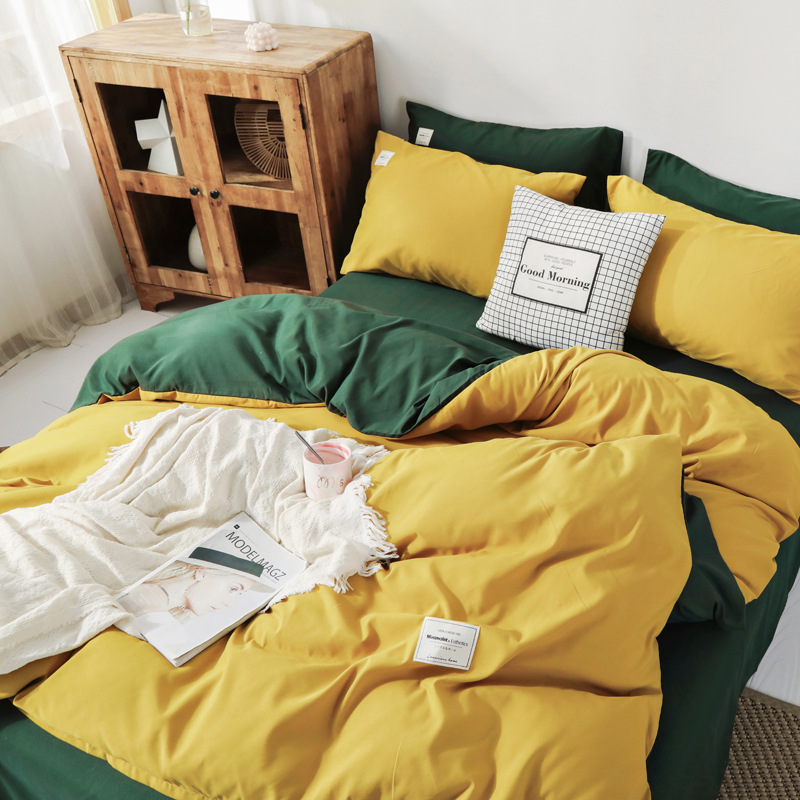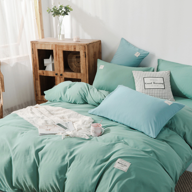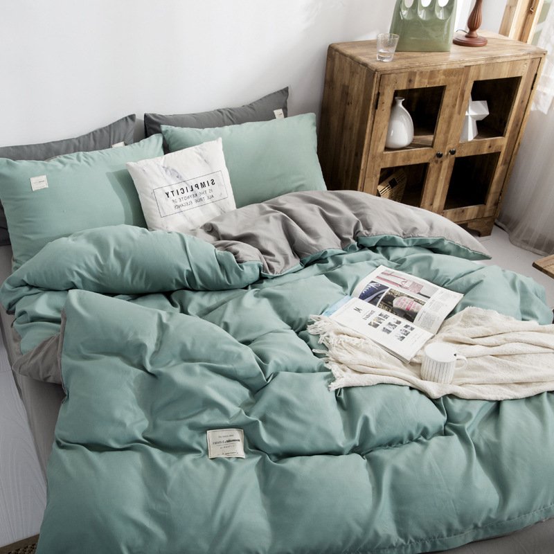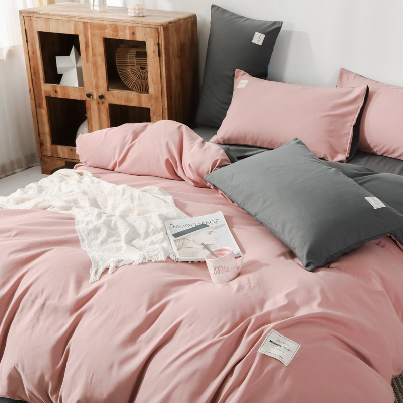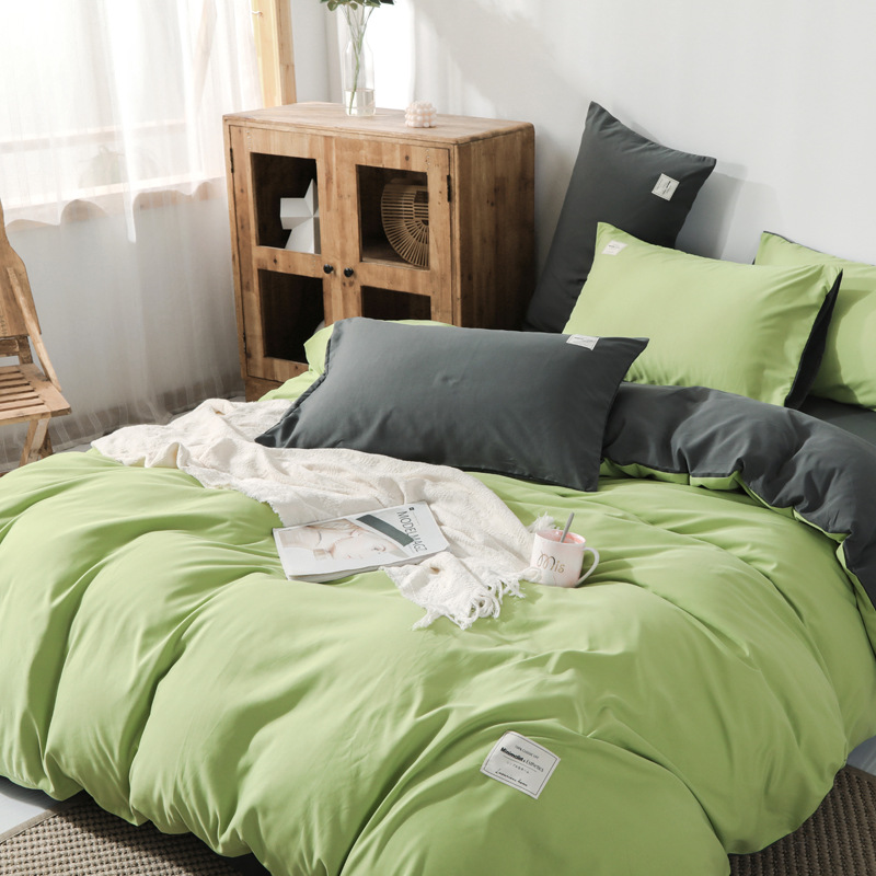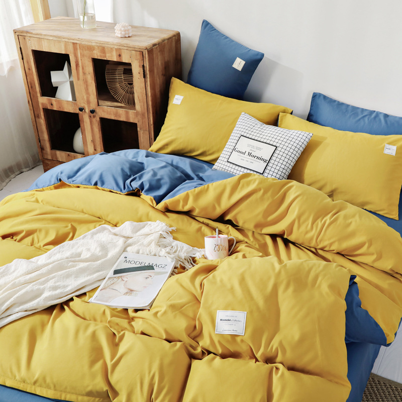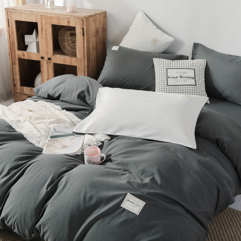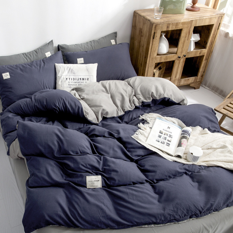 厂家直销简约纯色双拼磨毛四件套水洗棉床上用品学生被套一件代发