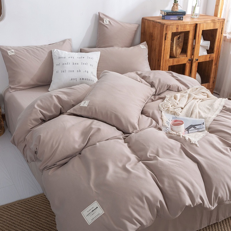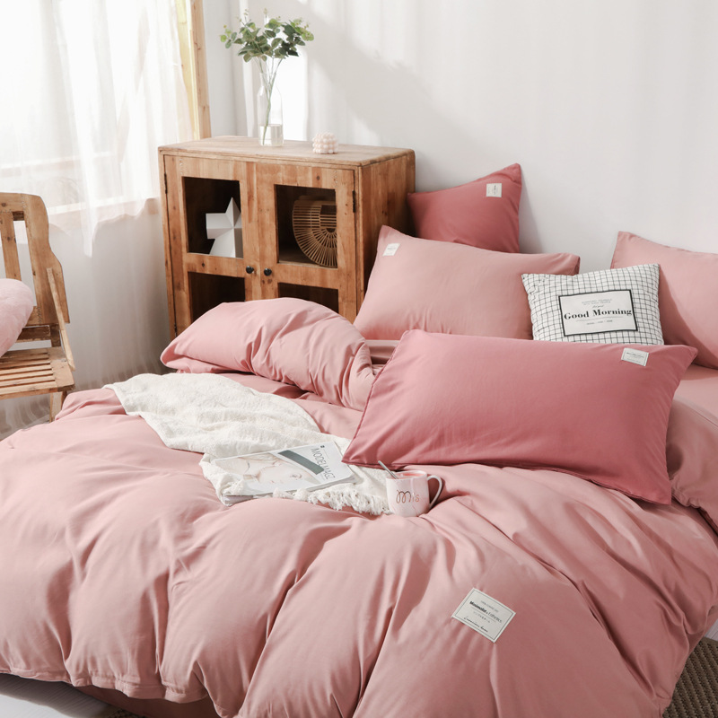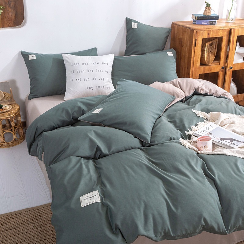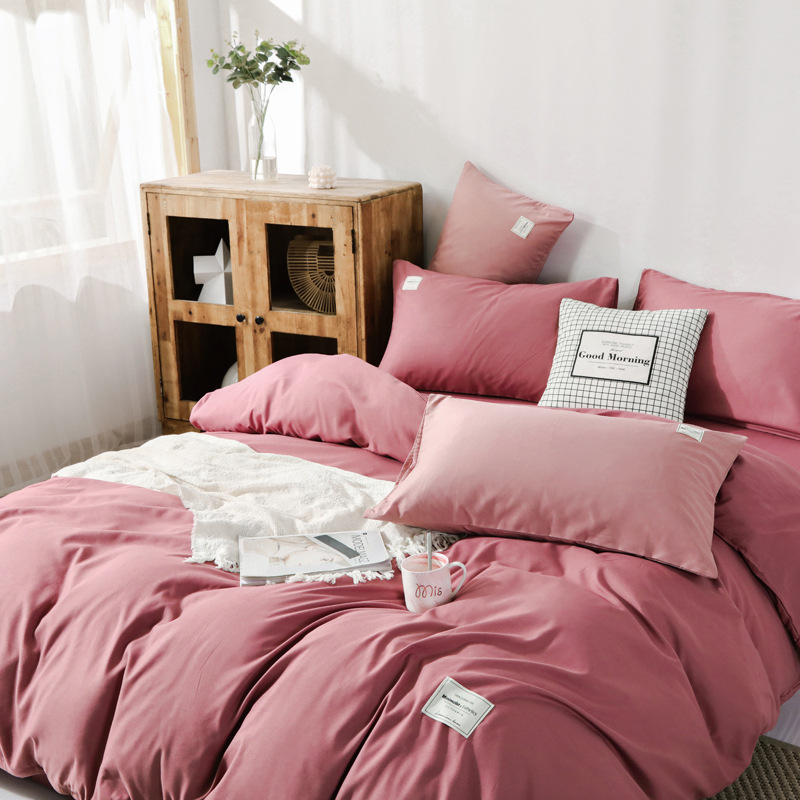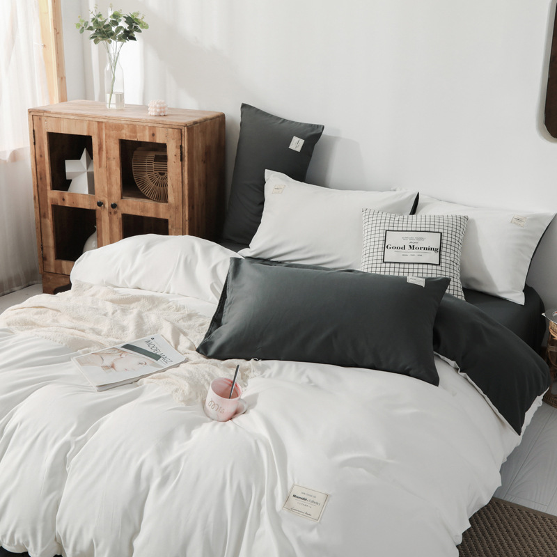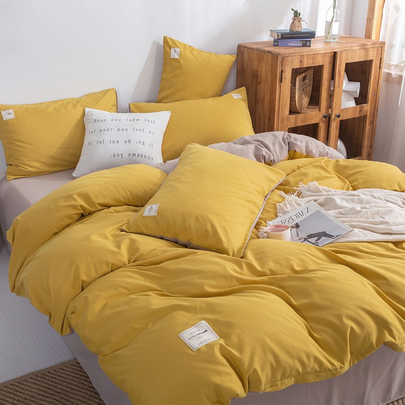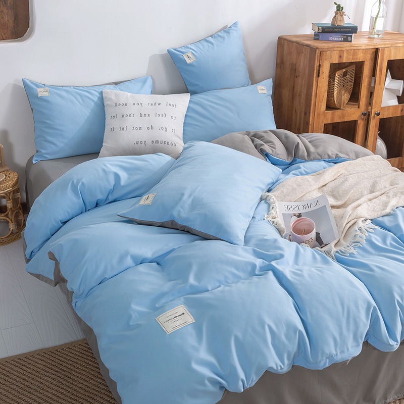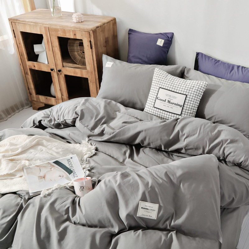 厂家直销简约纯色双拼磨毛四件套水洗棉床上用品学生被套一件代发