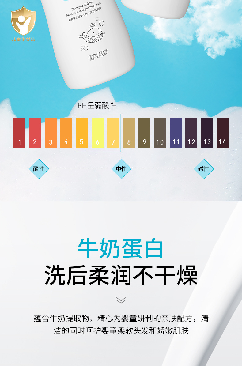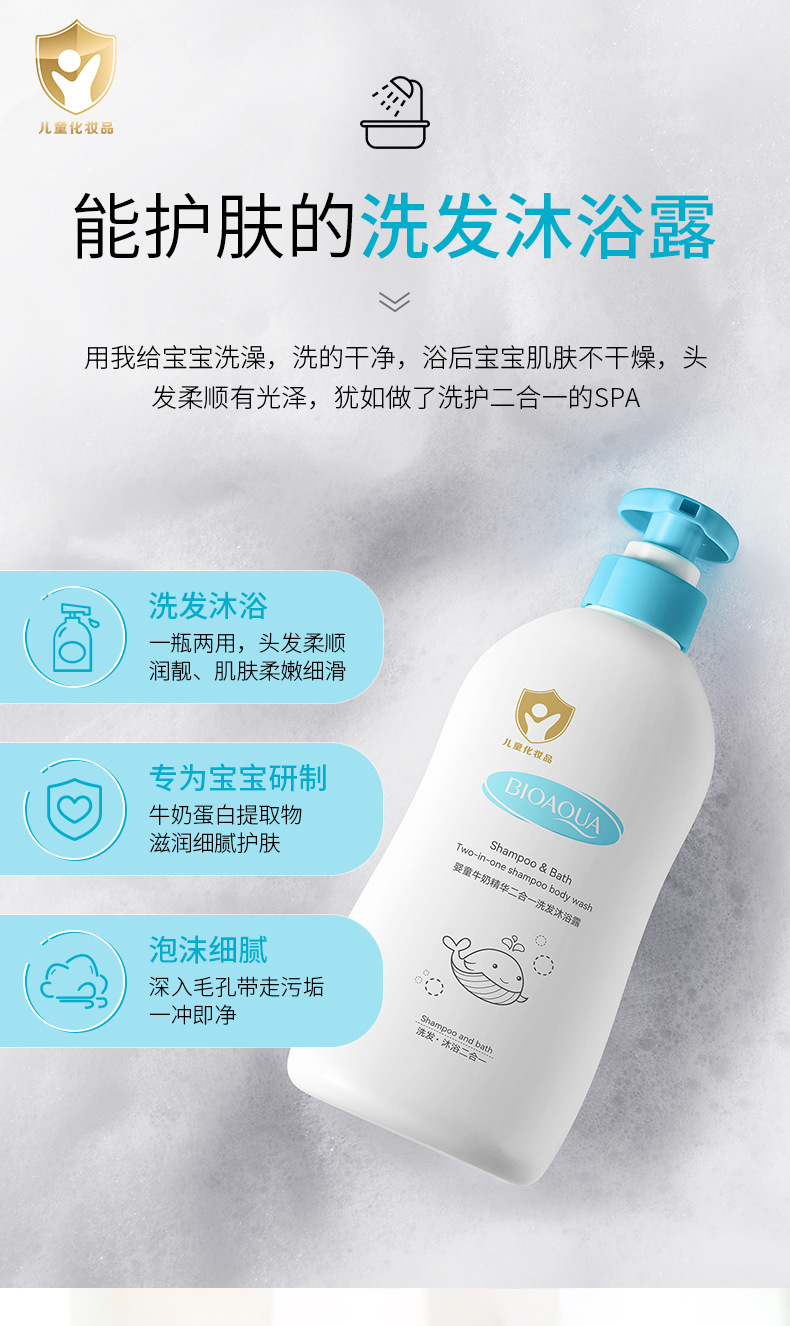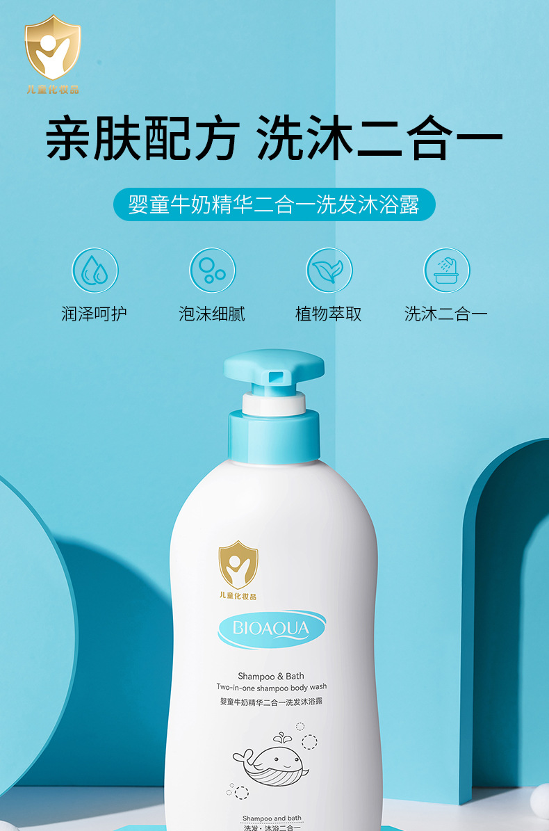 泊泉雅婴童牛奶二合一洗发沐浴露植物萃取柔嫩细滑润泽肌肤沐浴液