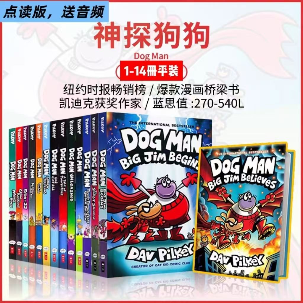 神探狗狗Dog Man14册狗狗侦探DavPilkey19册儿童英语漫画章节平装