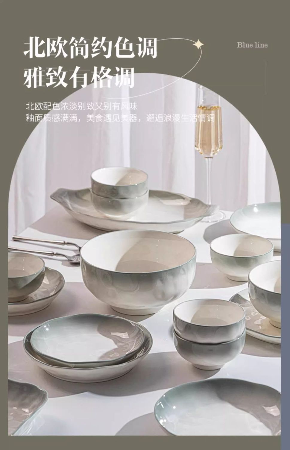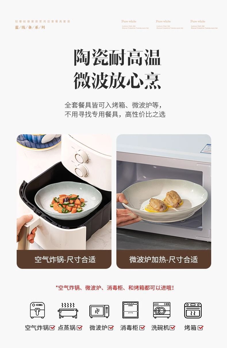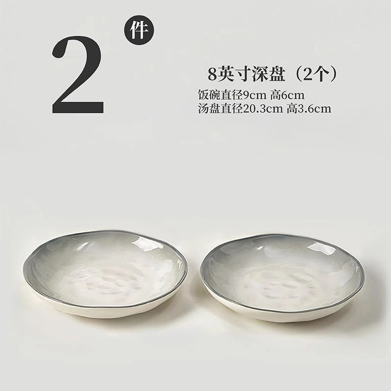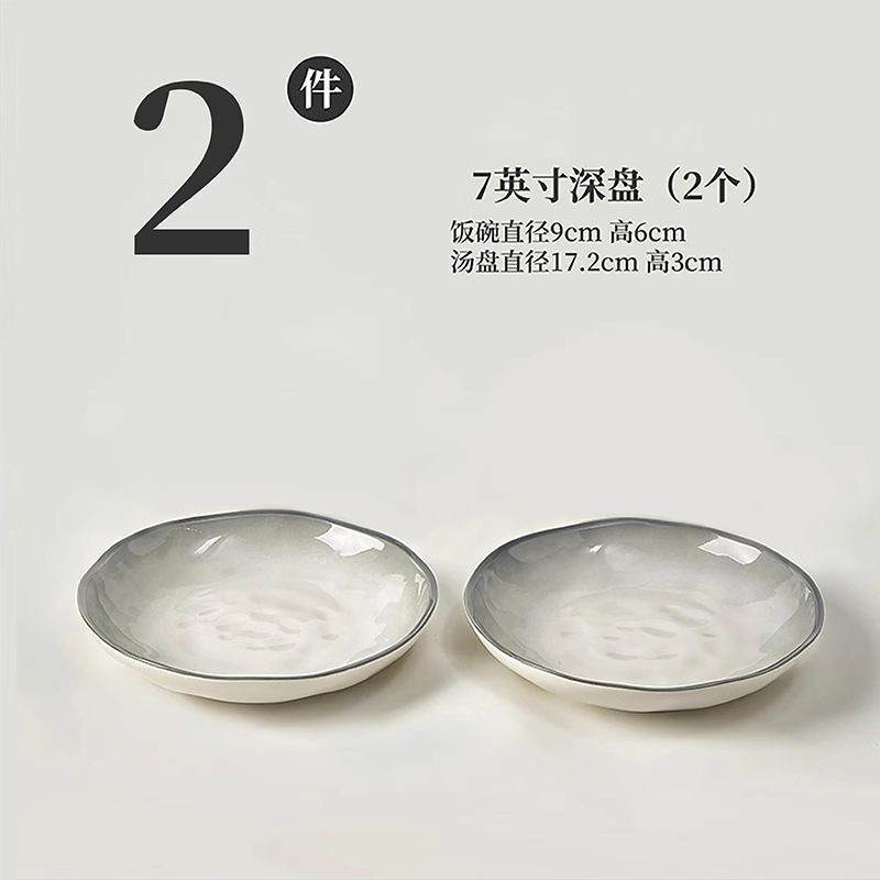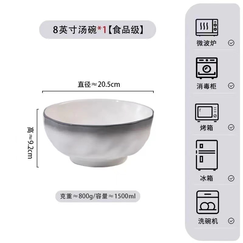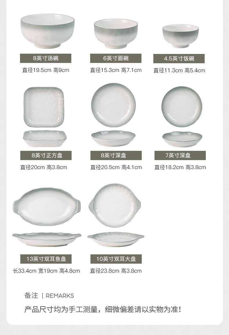 烟雨遥碗盘碟家用釉下彩陶瓷米饭碗高级渐变青碗具简约家用汤盘