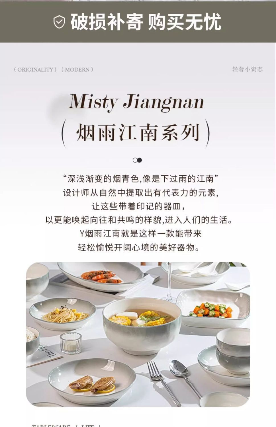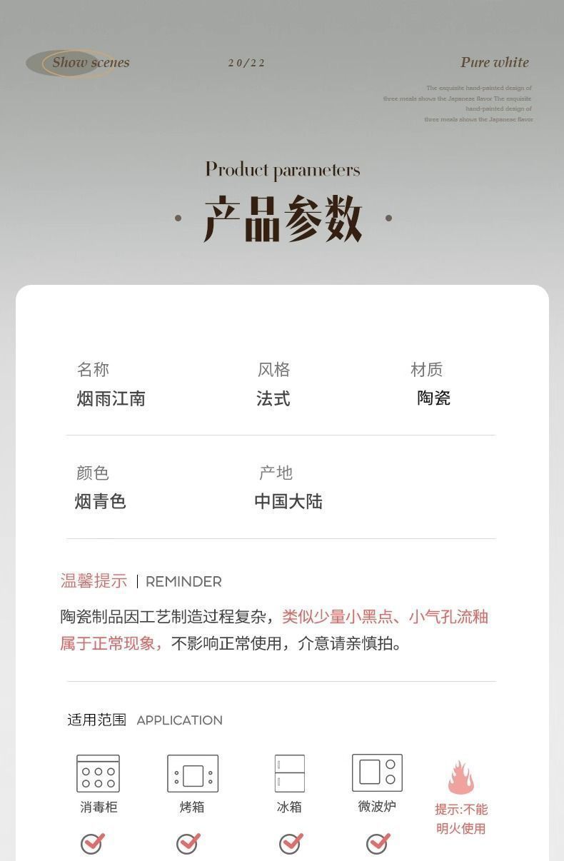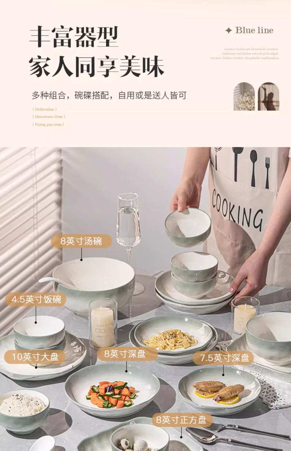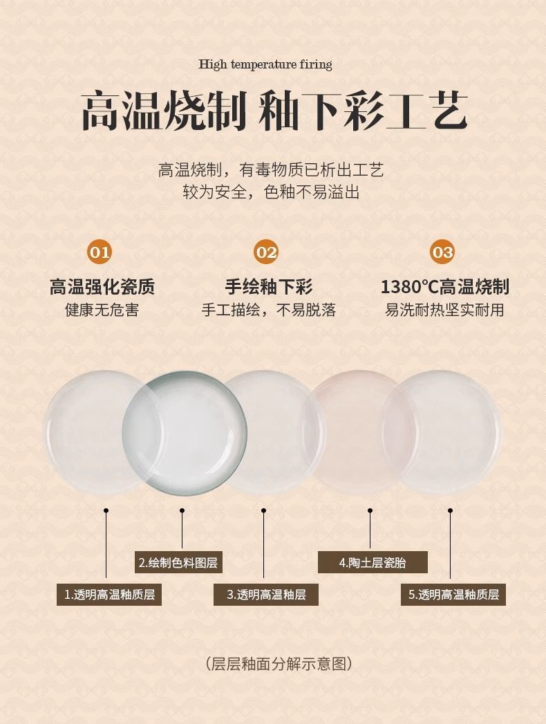 烟雨遥碗盘碟家用釉下彩陶瓷米饭碗高级渐变青碗具简约家用汤盘