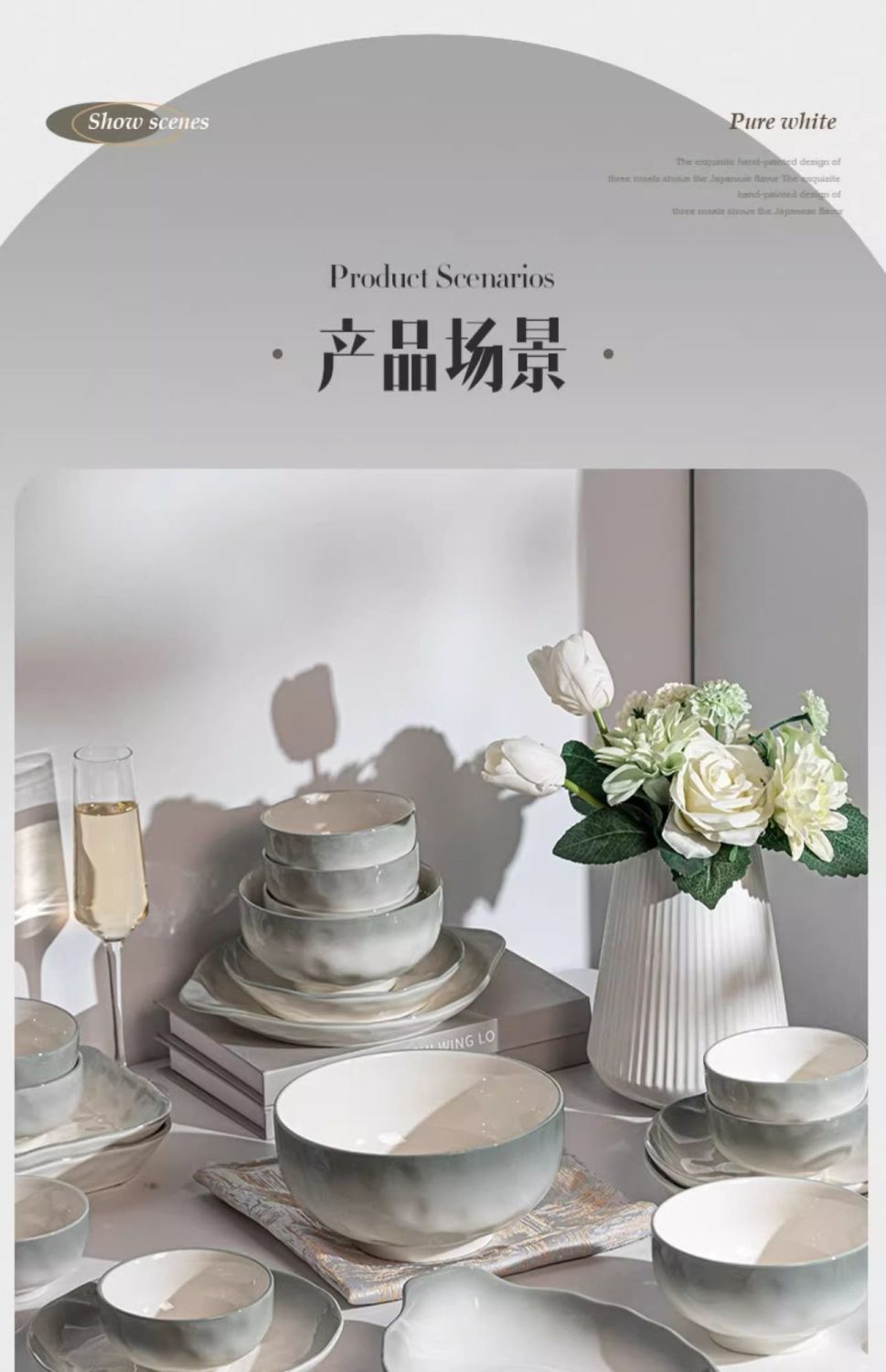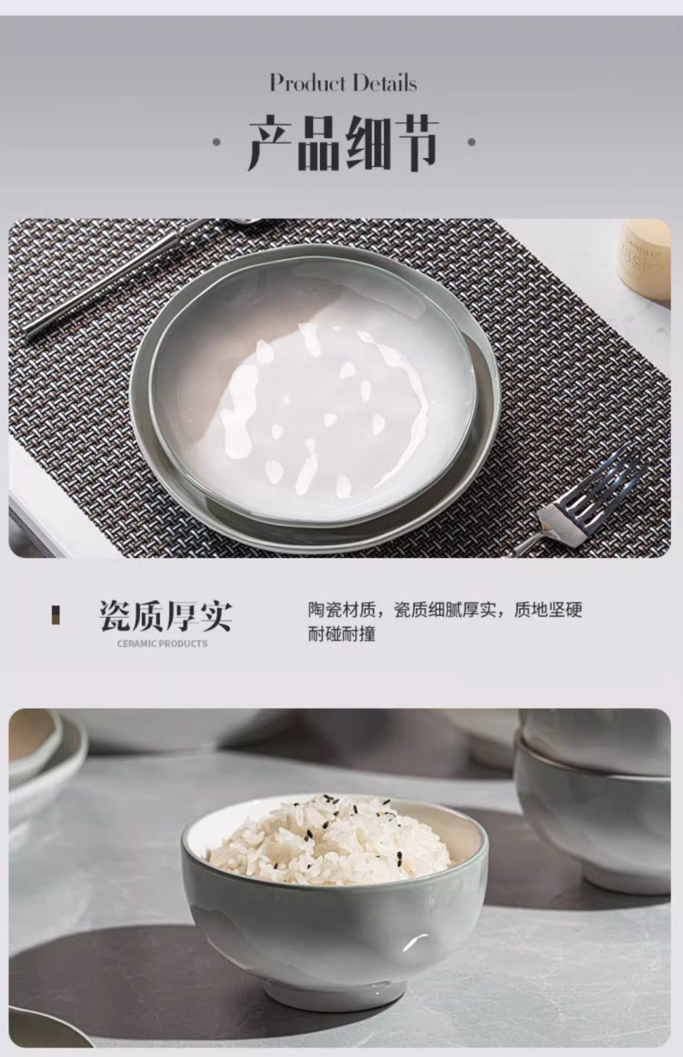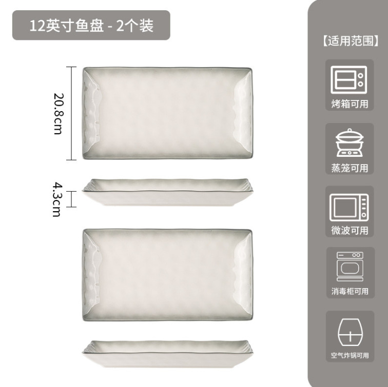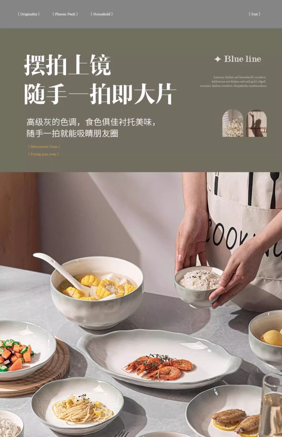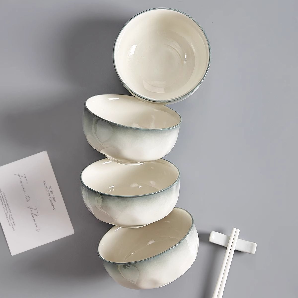 烟雨遥碗盘碟家用釉下彩陶瓷米饭碗高级渐变青碗具简约家用汤盘
