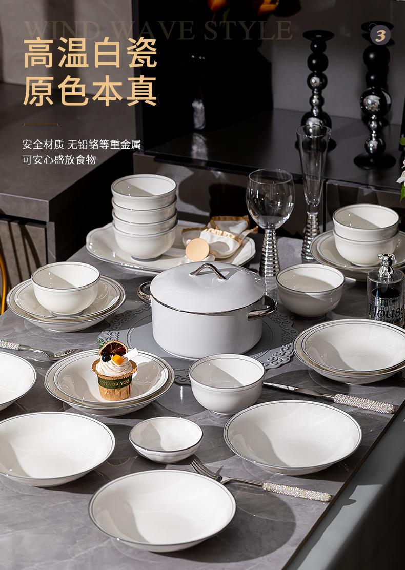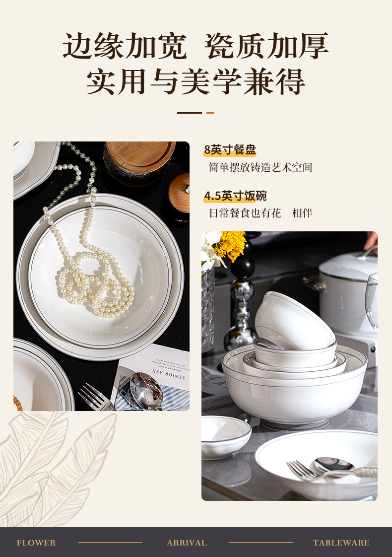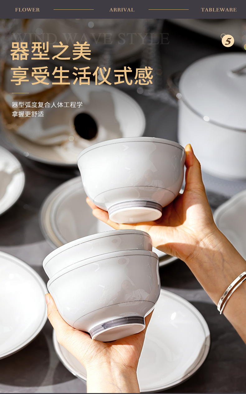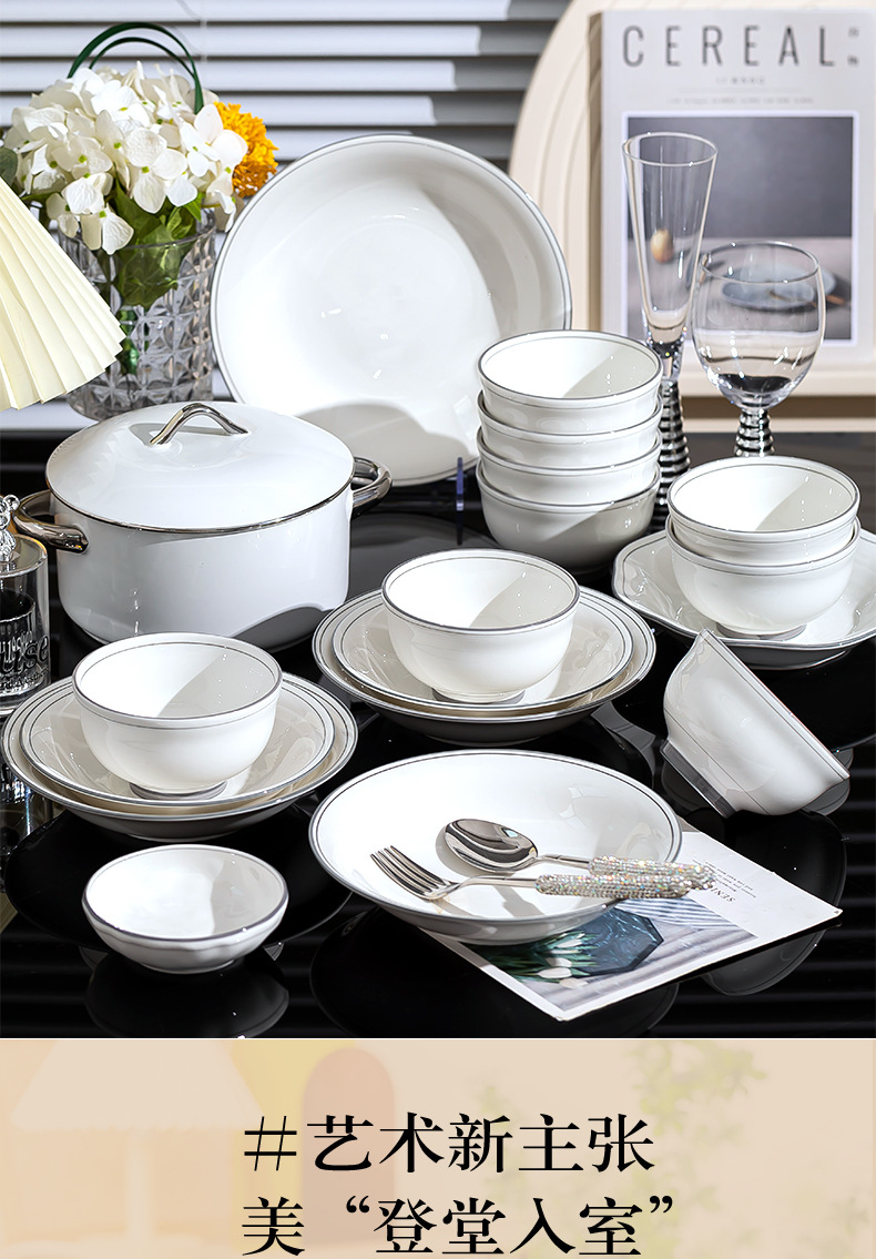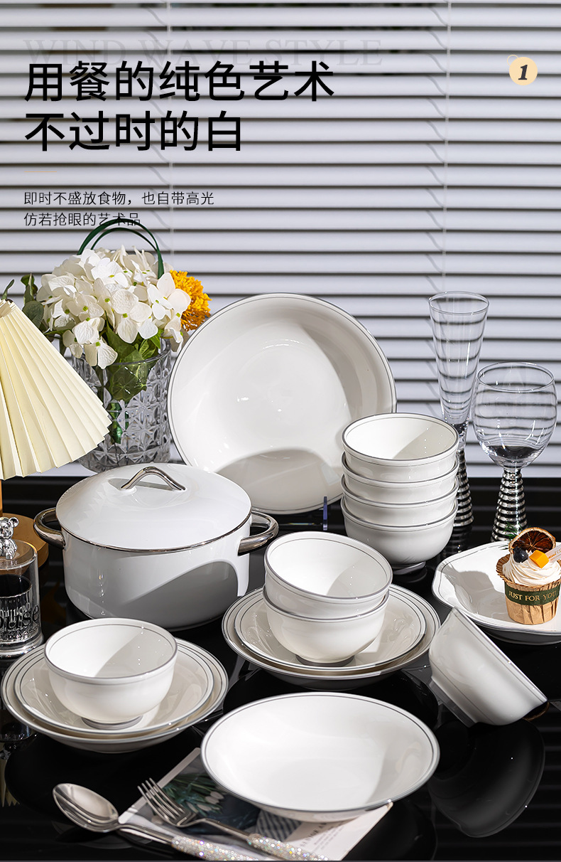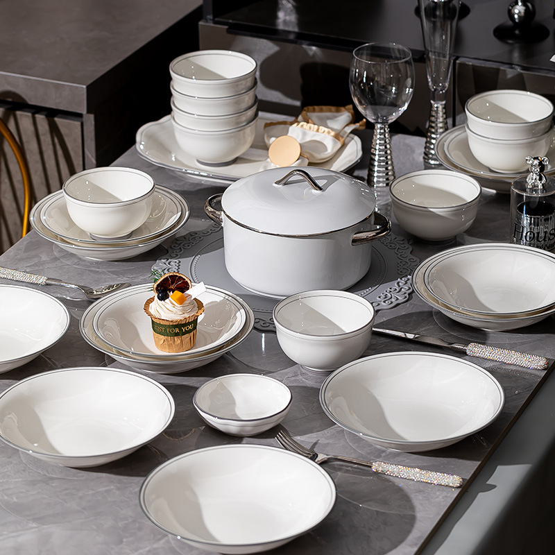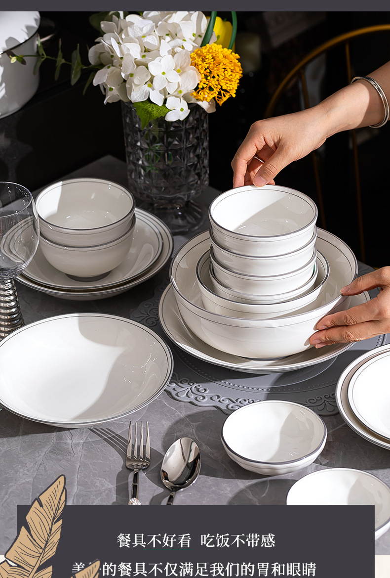 纯白餐具碗具碗盘釉下彩陶瓷吃饭碗菜盘子简约家用碗碟套装米饭碗