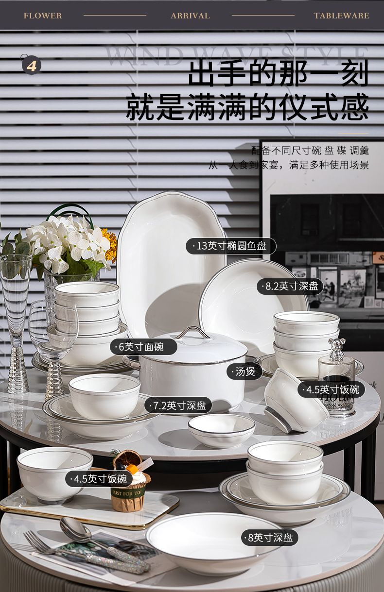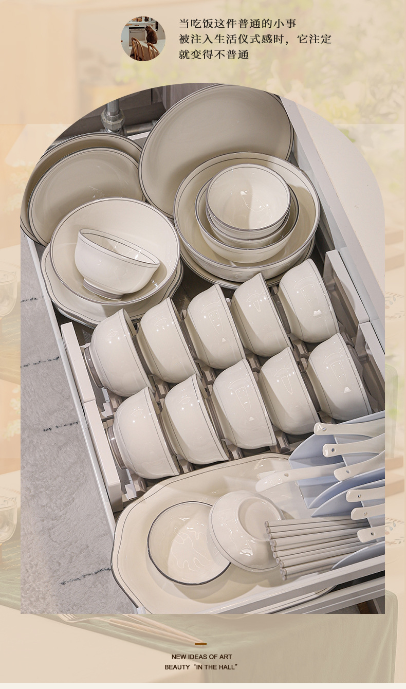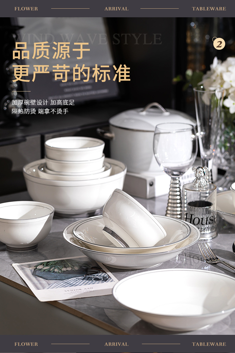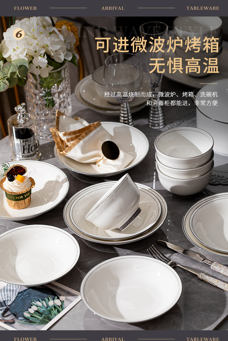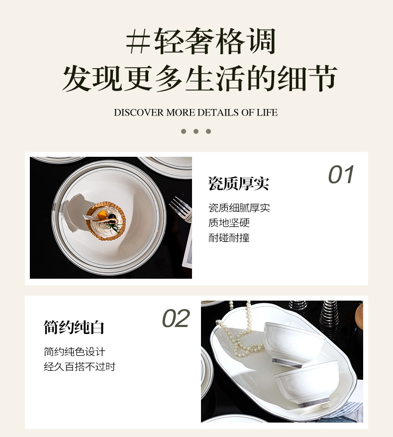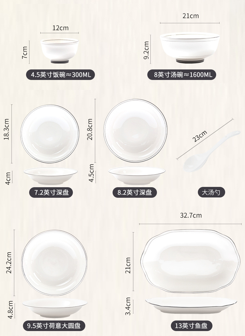 纯白餐具碗具碗盘釉下彩陶瓷吃饭碗菜盘子简约家用碗碟套装米饭碗