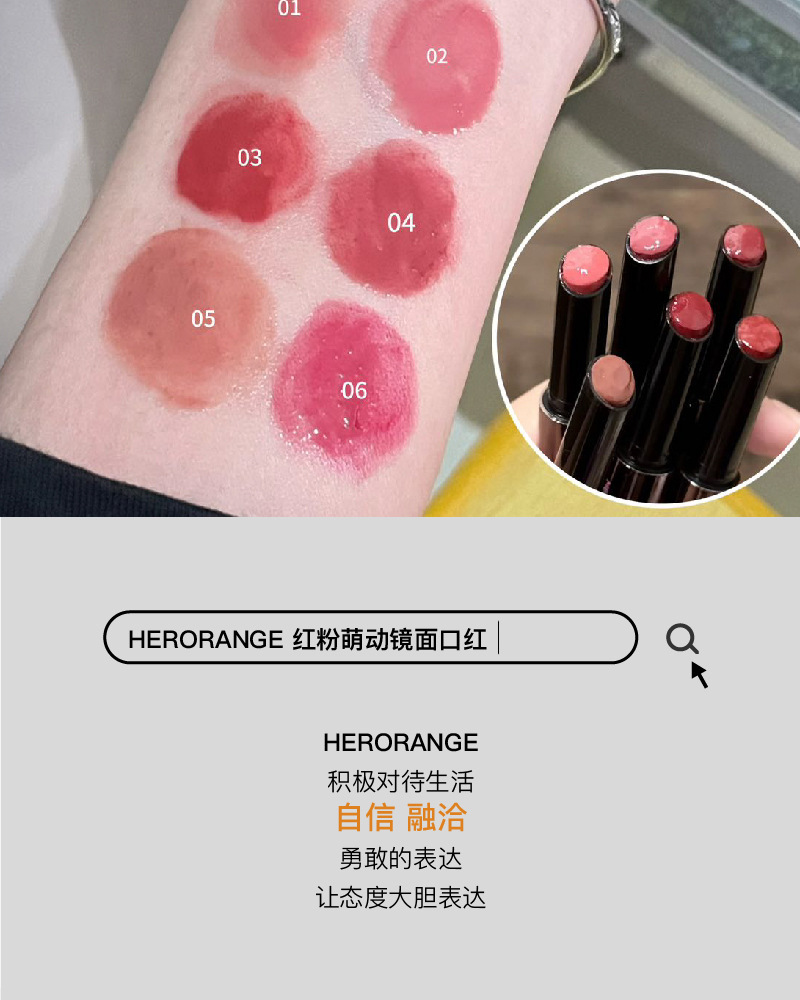 HERORANGE 红粉萌动镜面口红滋润水光嘟嘟唇不易沾杯韩系显嫩唇膏