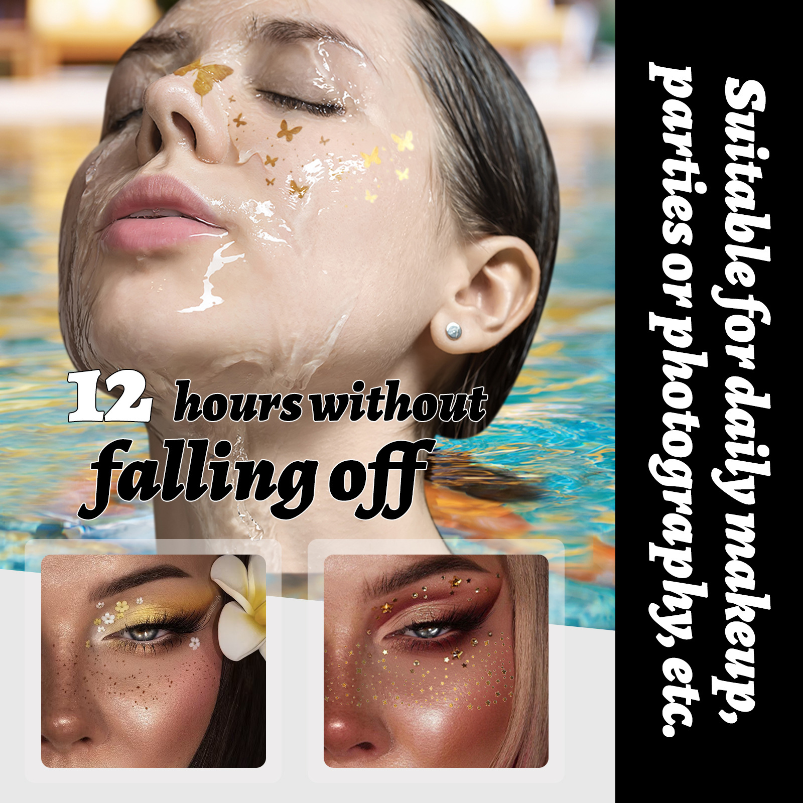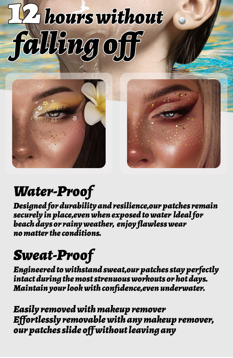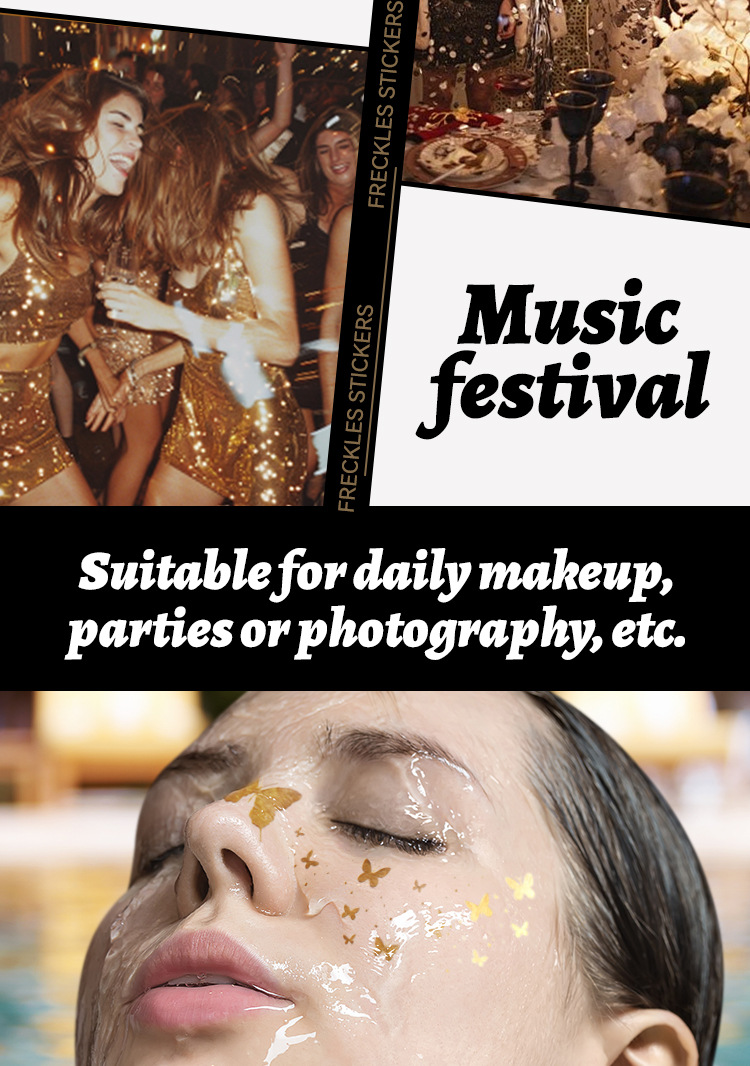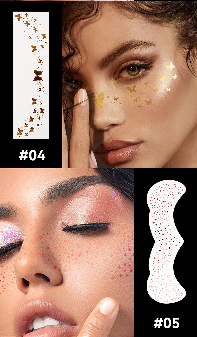 MLSMILE跨境烫金纹身贴欧美防水闪粉星星蝴蝶派对舞台演出贴