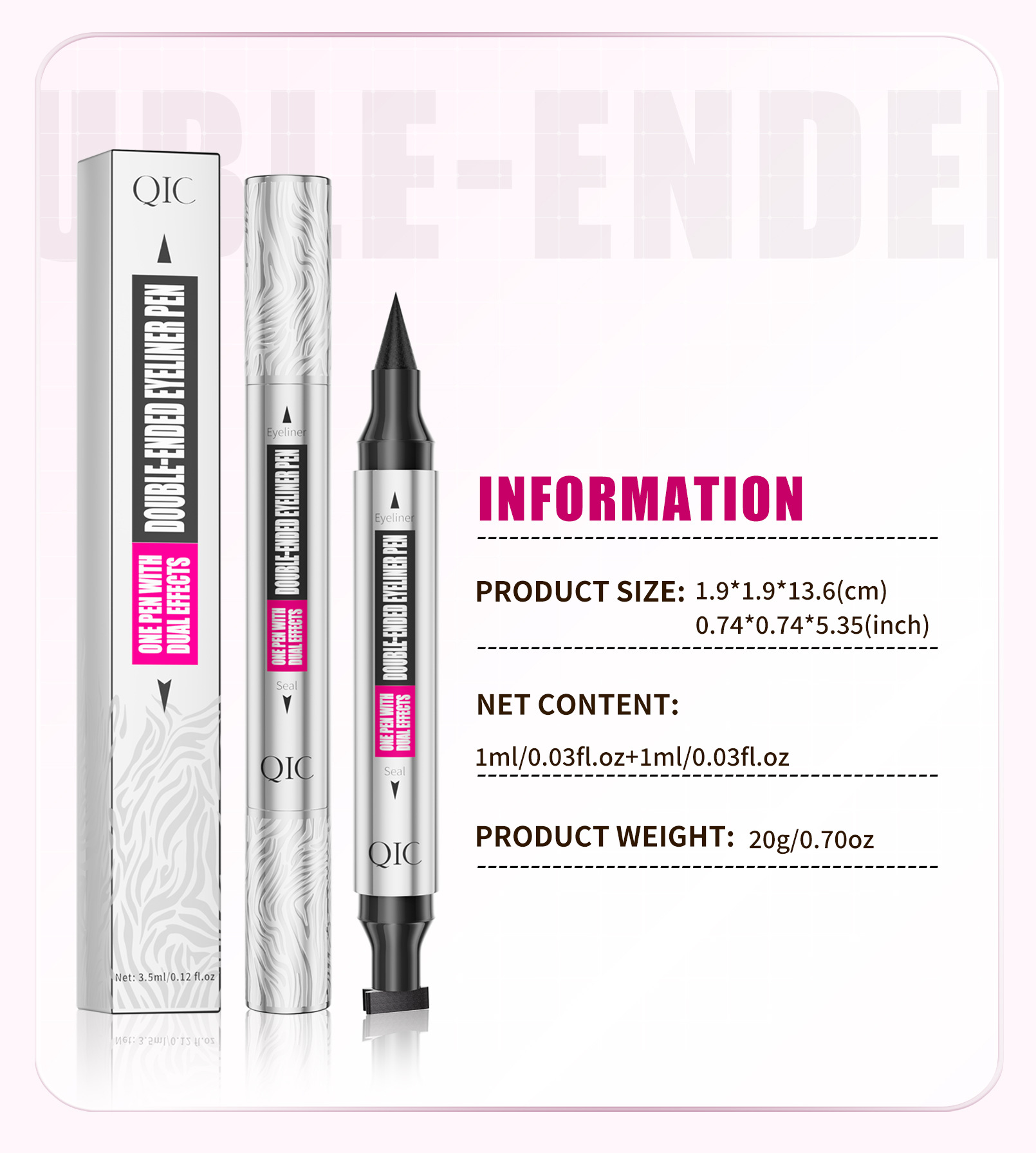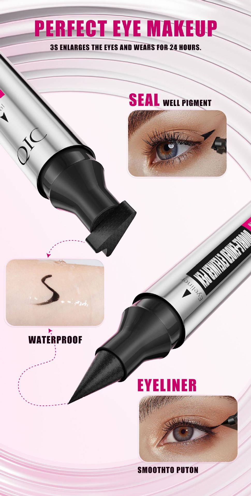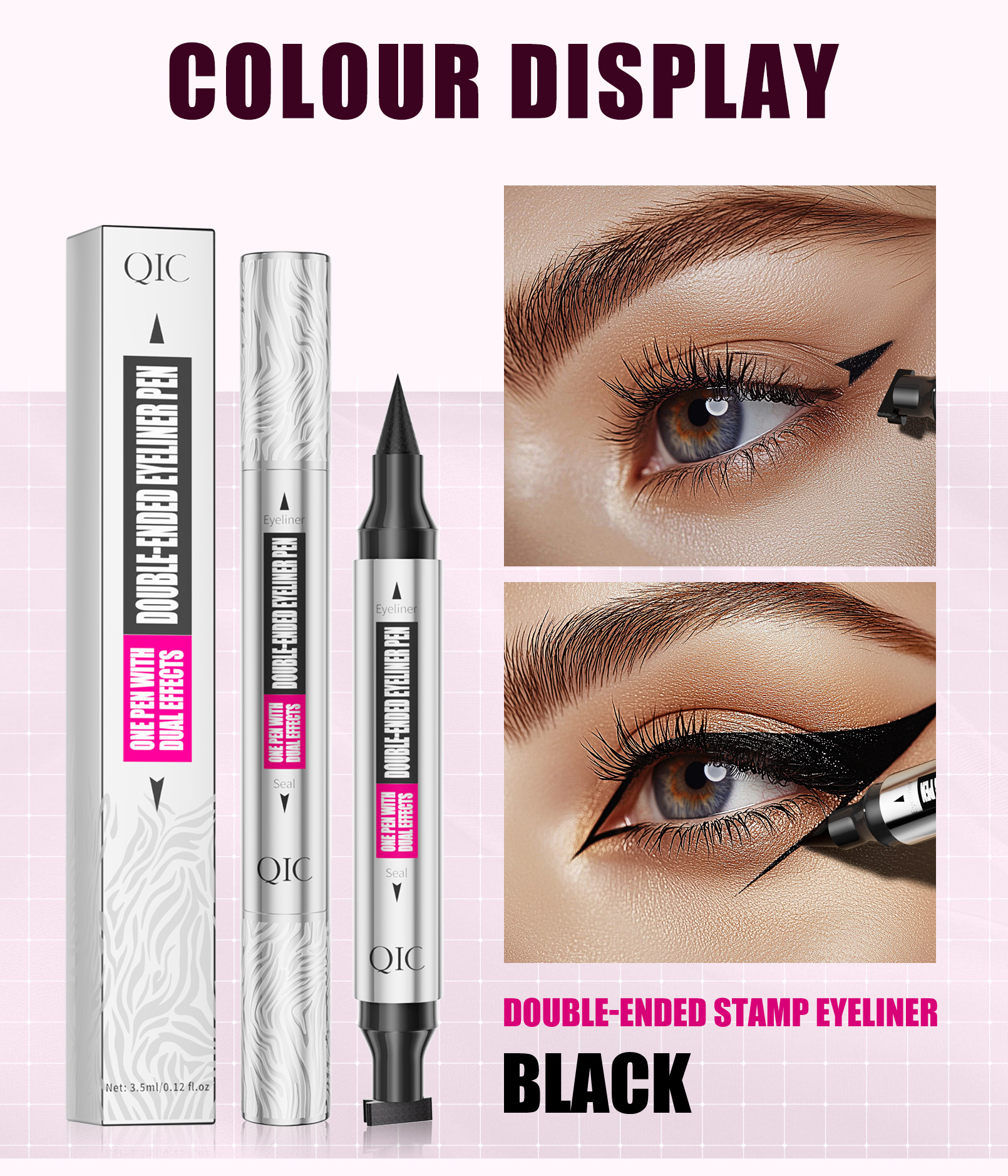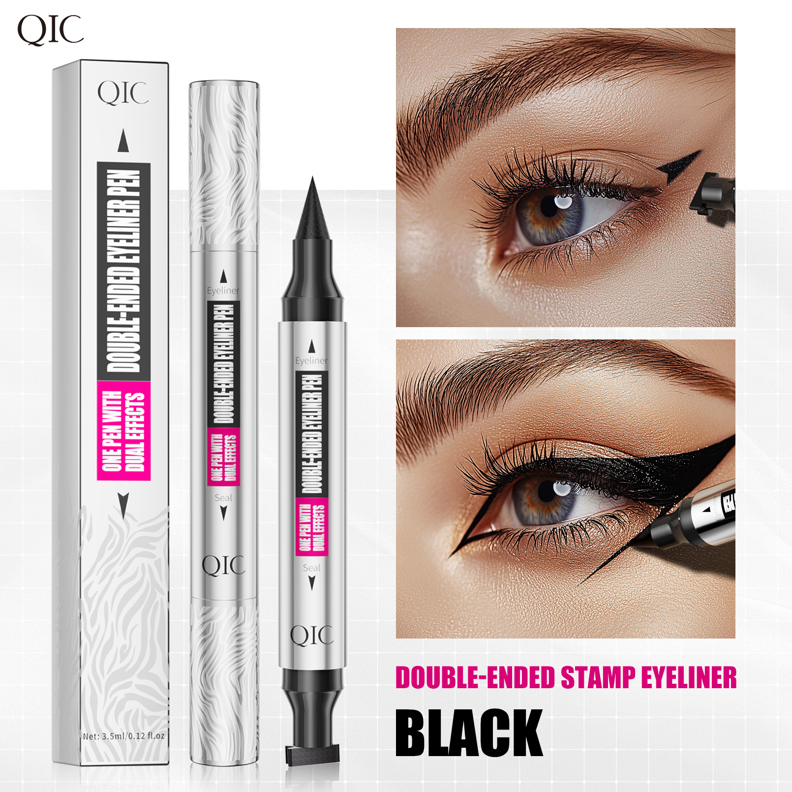 QIC双头印章眼线笔跨境爆款眼线笔防水不晕染2合1印章