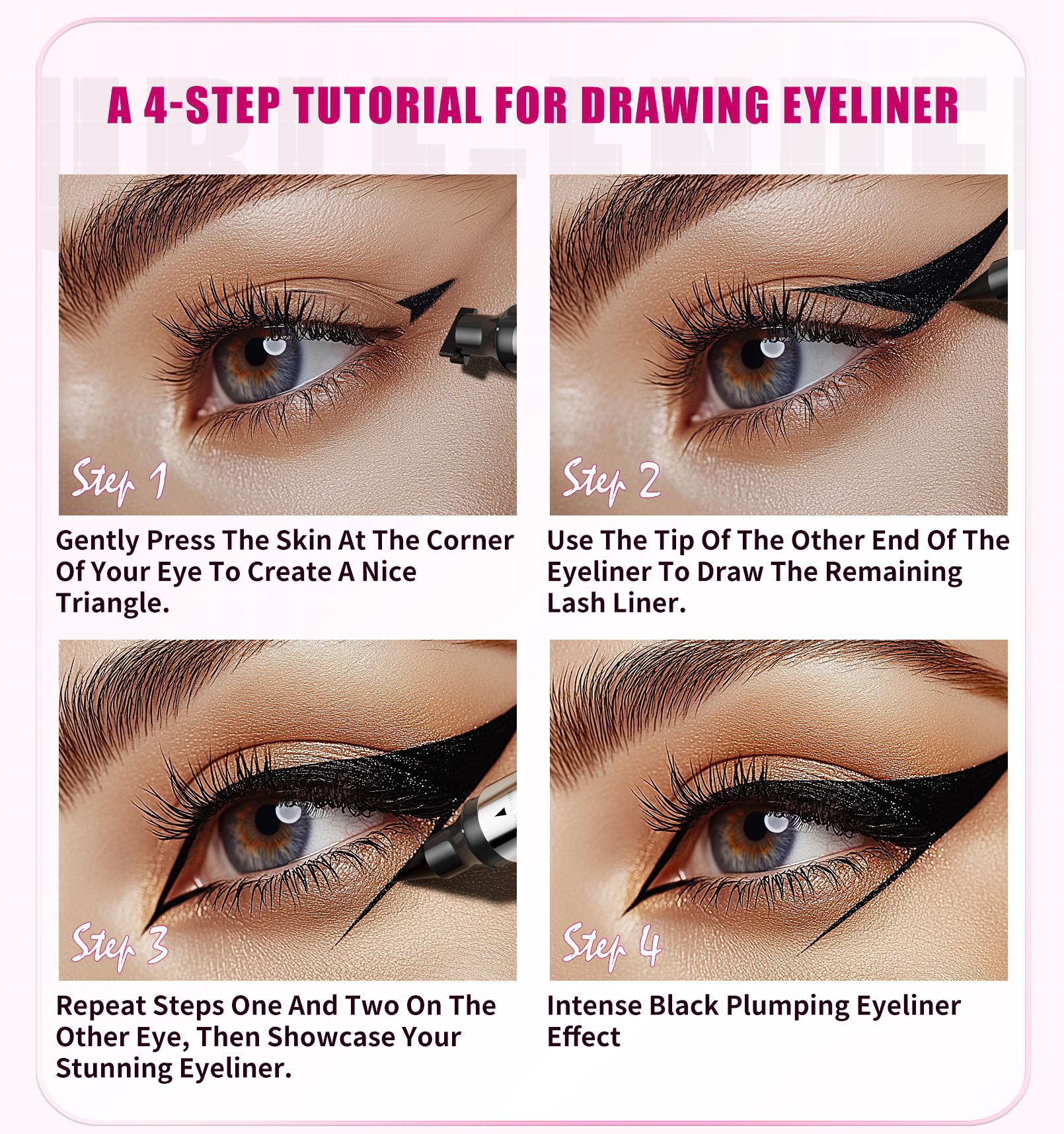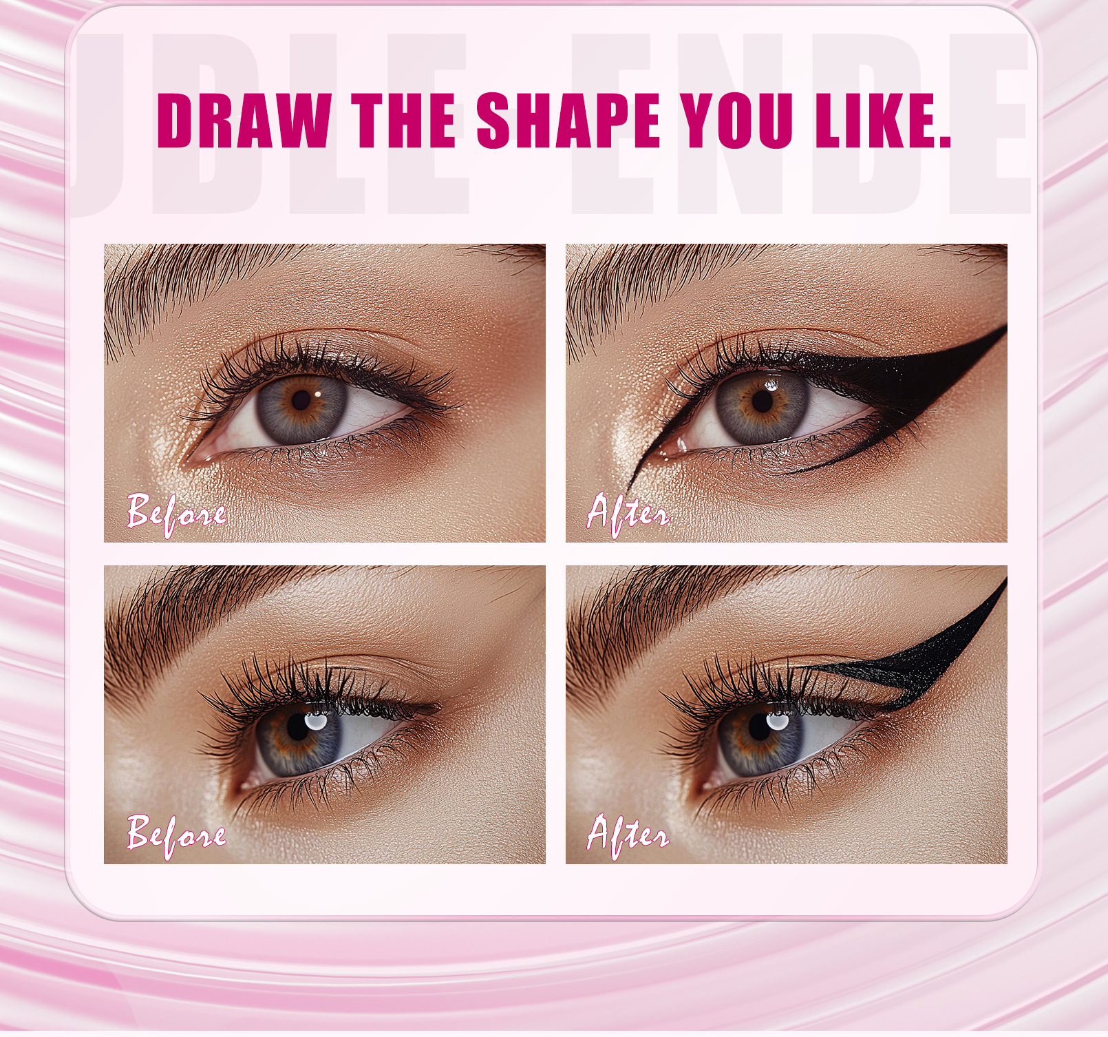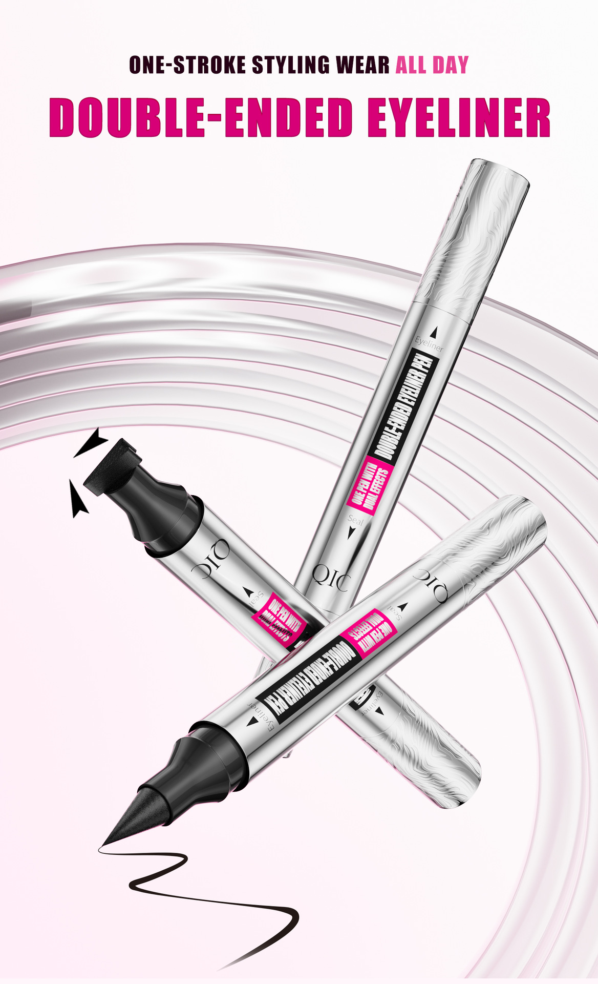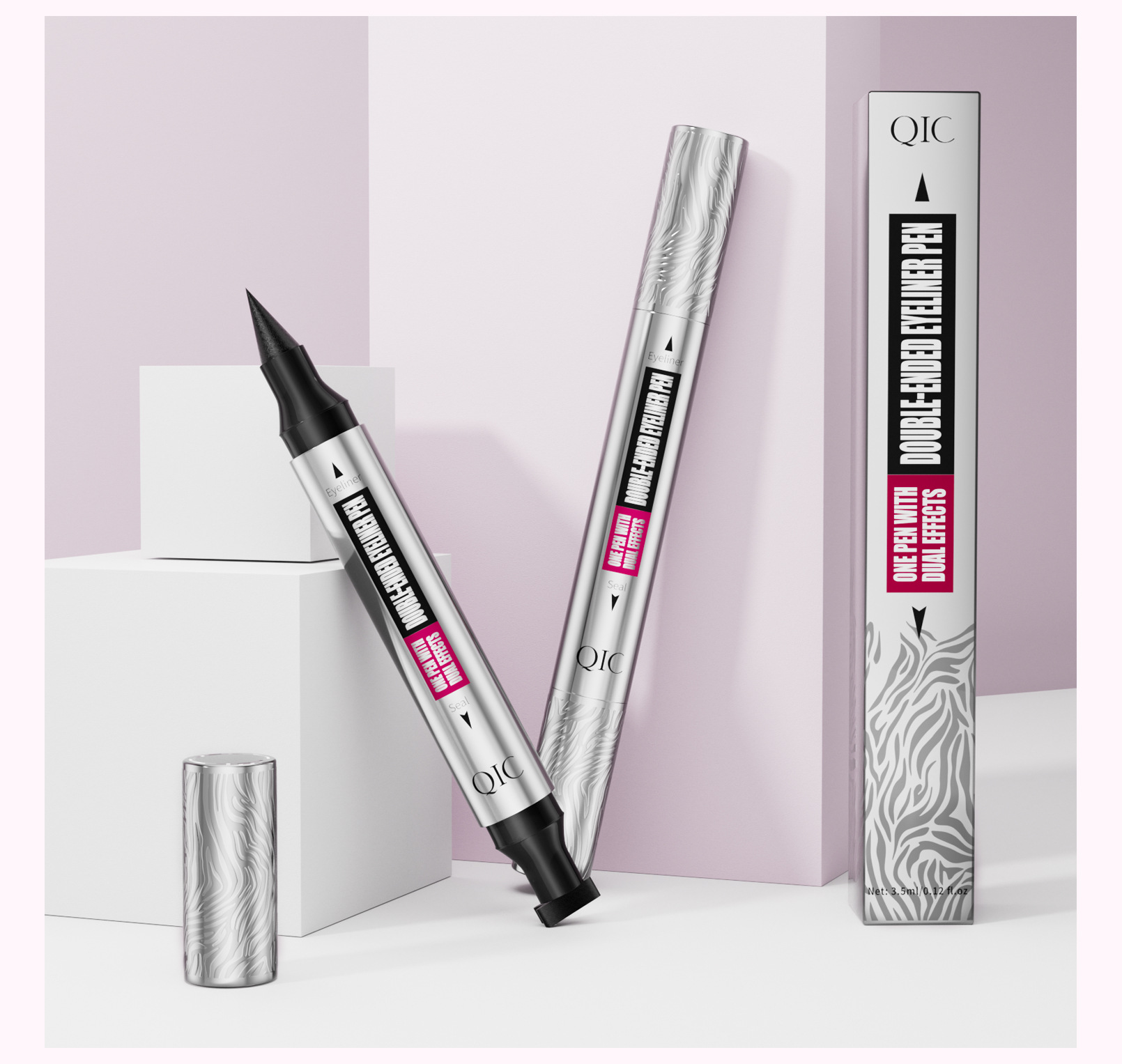 QIC双头印章眼线笔跨境爆款眼线笔防水不晕染2合1印章