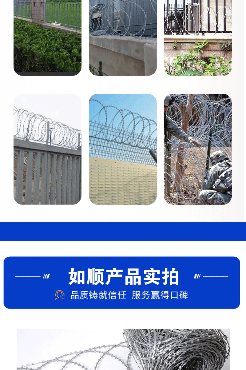 工厂刀片刺绳刺笼禁地蛇腹网边境防护带刺铁丝机场防攀爬刺网防盗