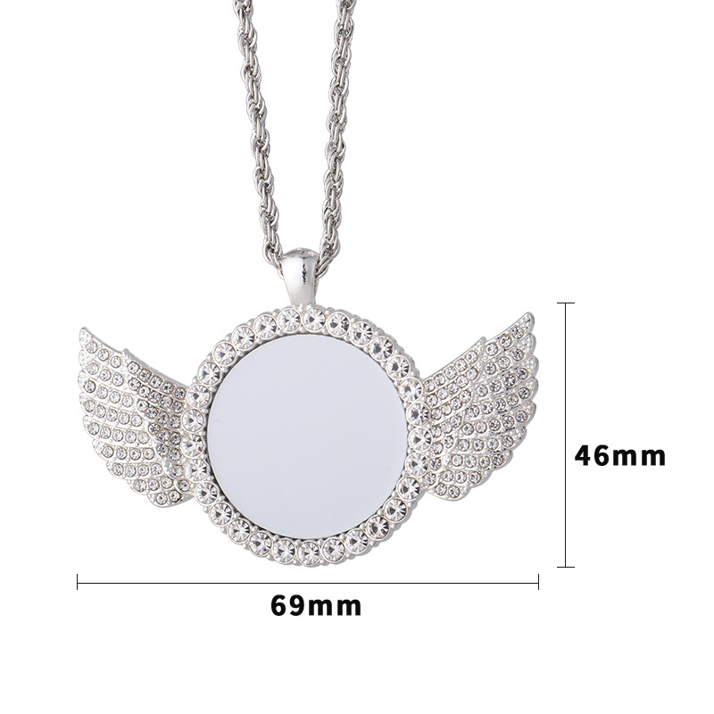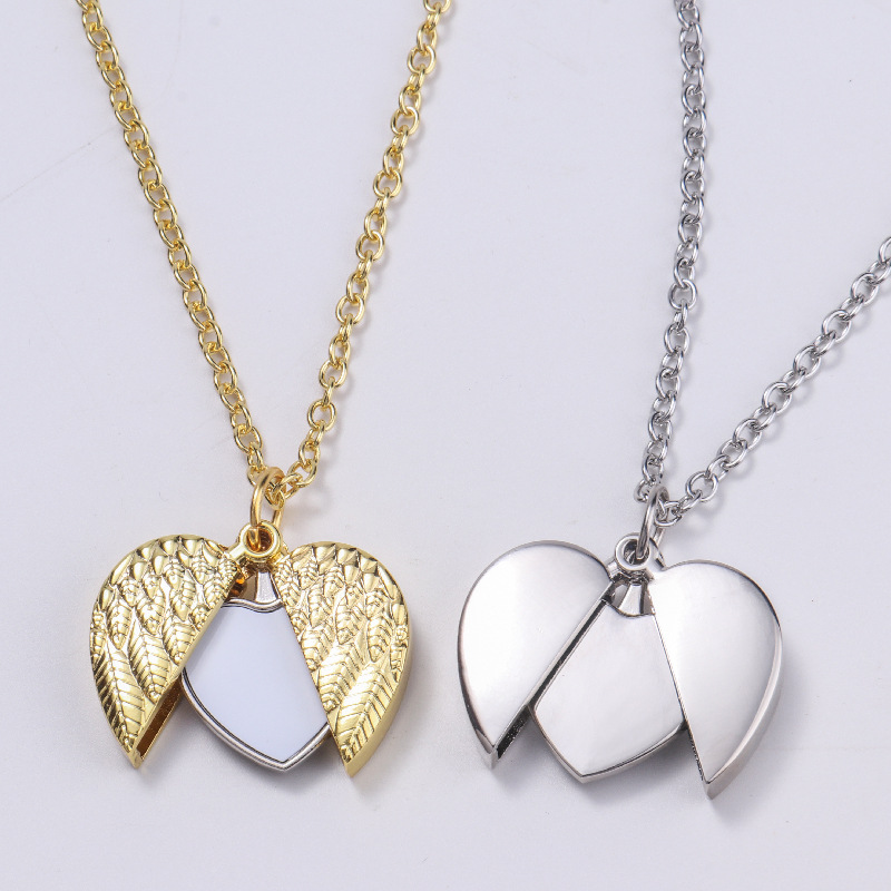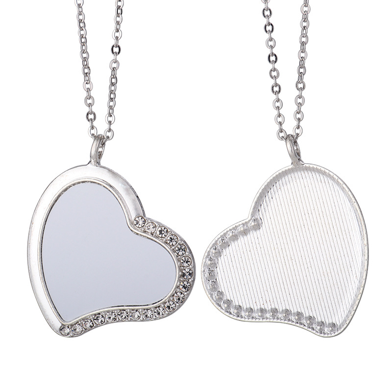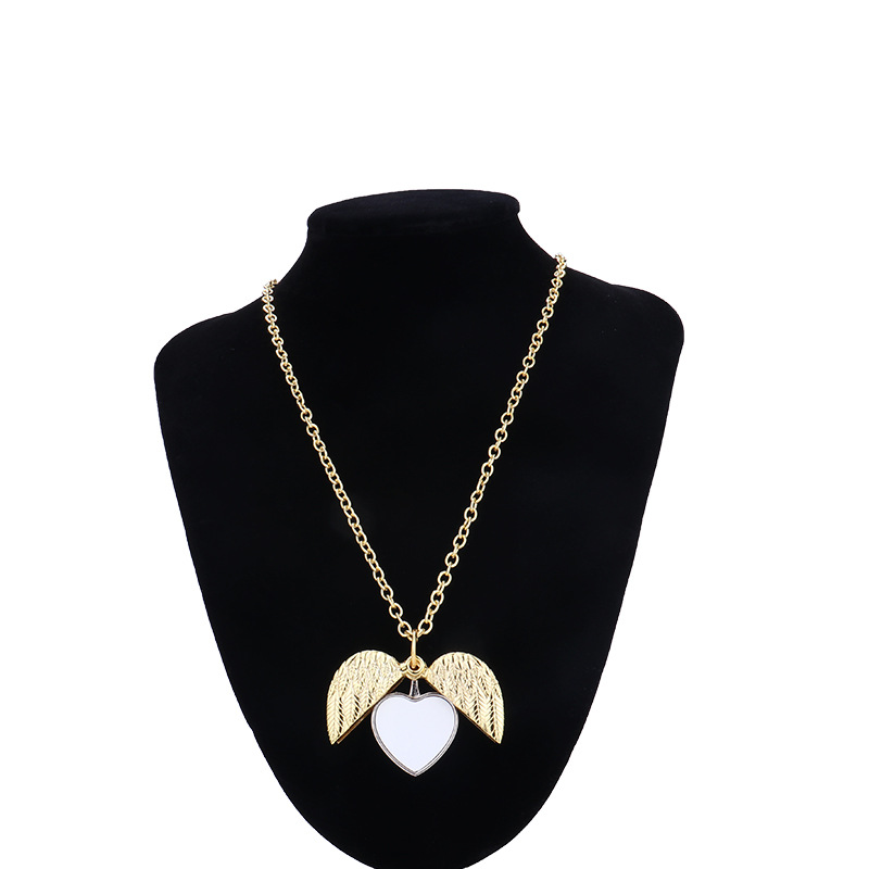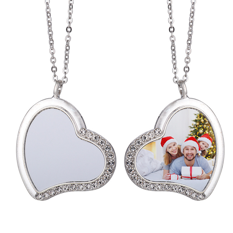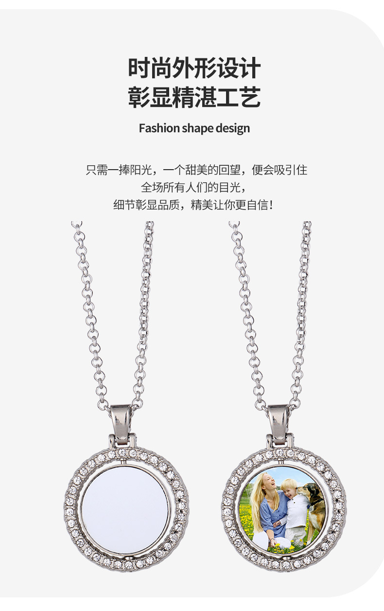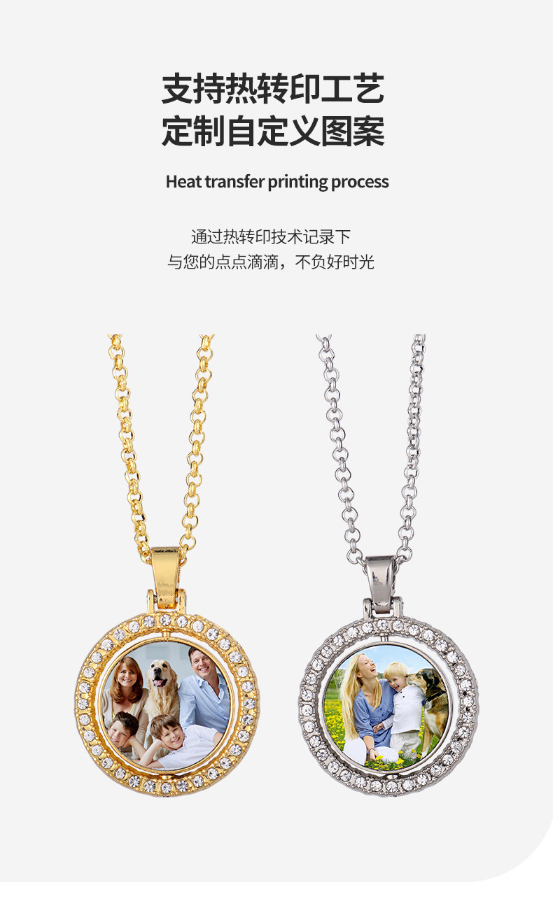 跨境热转印空白项链心形翅膀镶钻圆形旋转可打开向日葵骰子吊坠