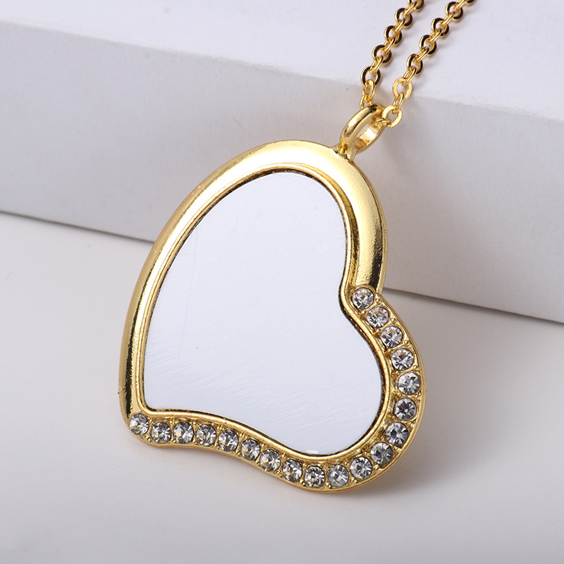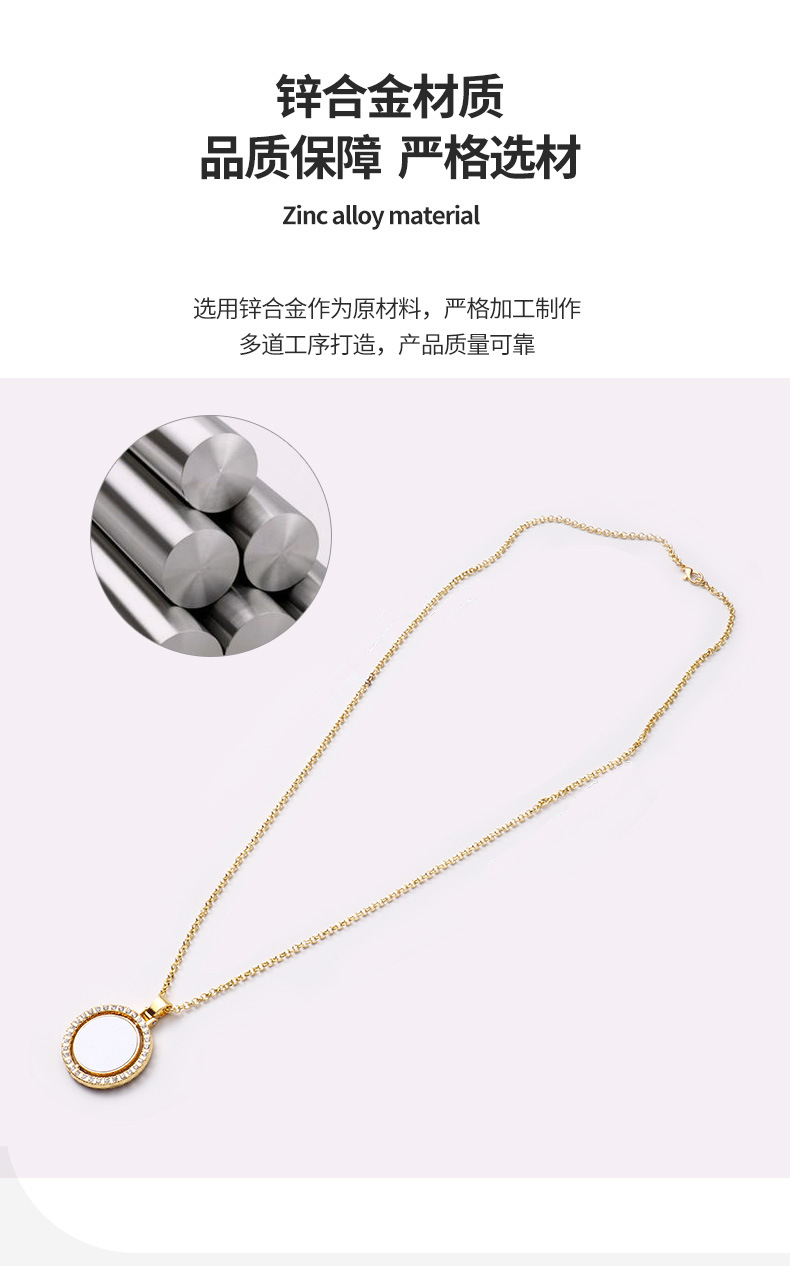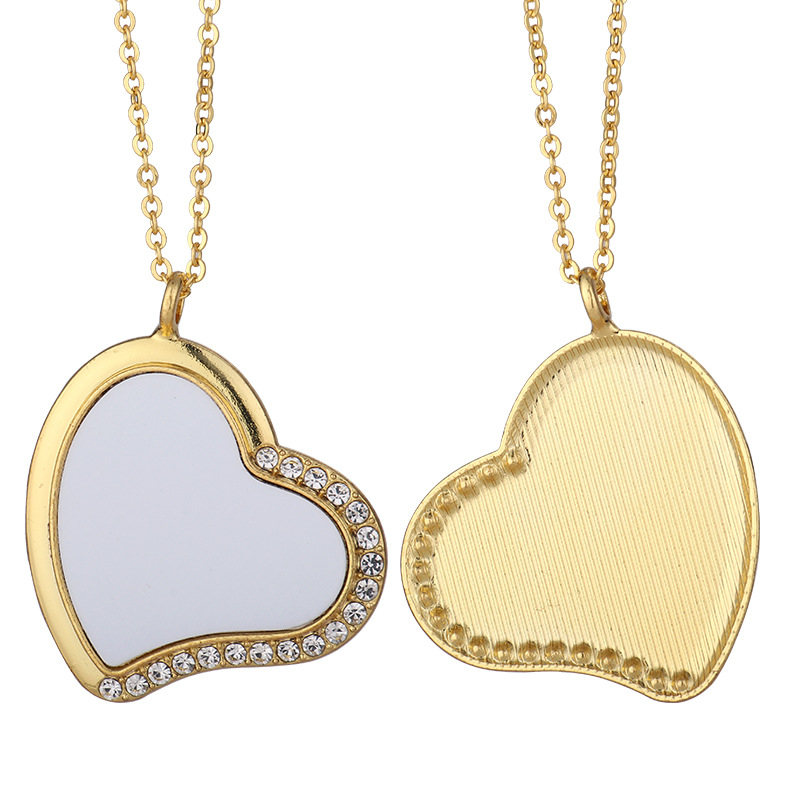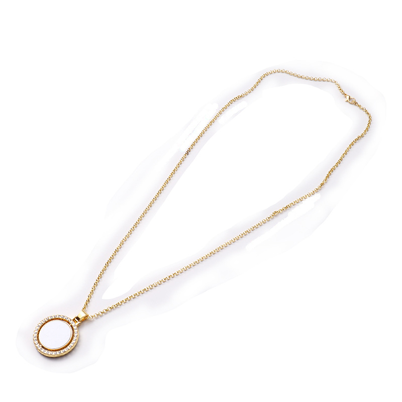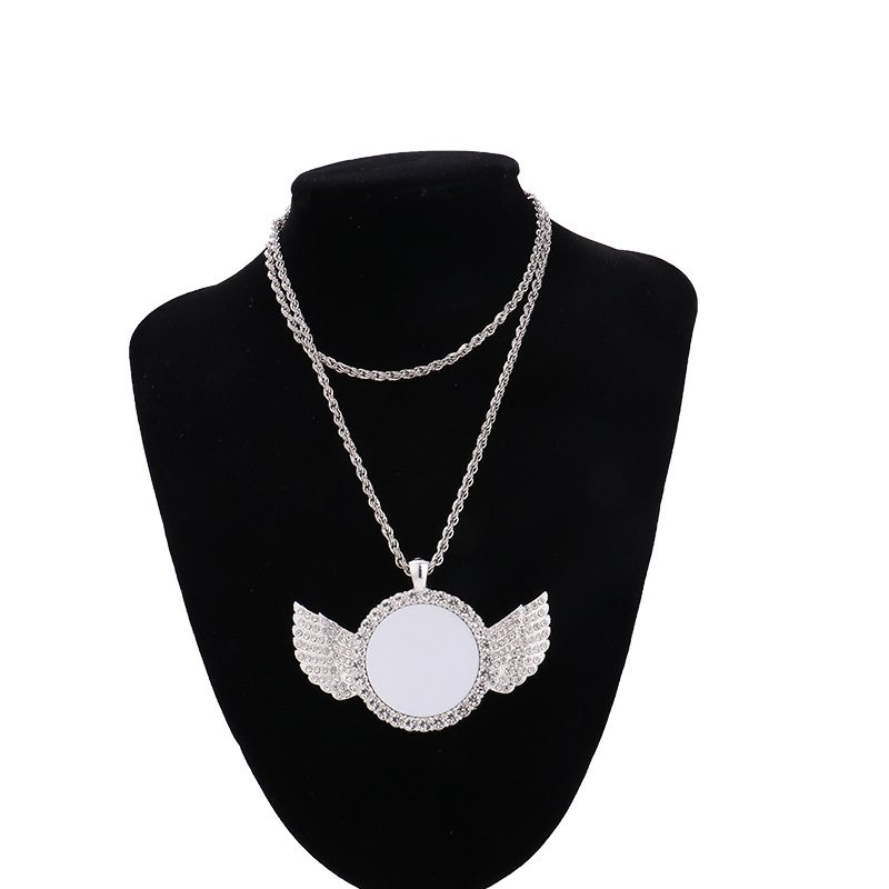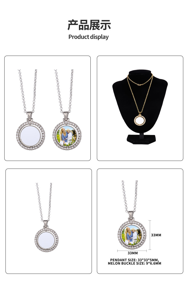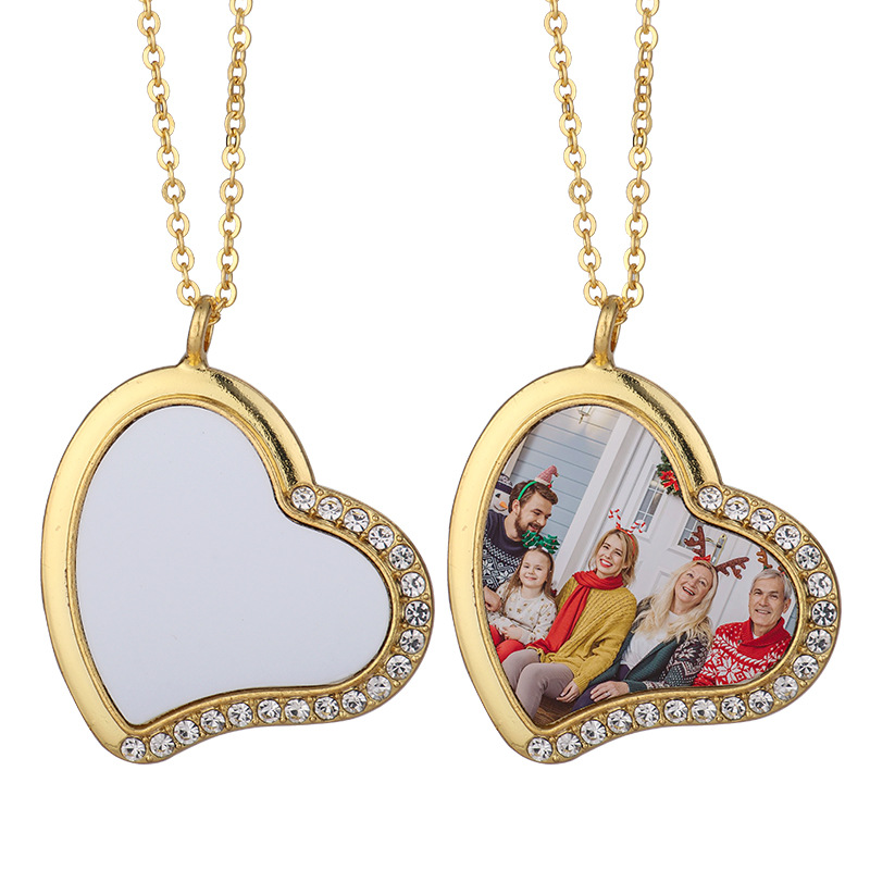 跨境热转印空白项链心形翅膀镶钻圆形旋转可打开向日葵骰子吊坠