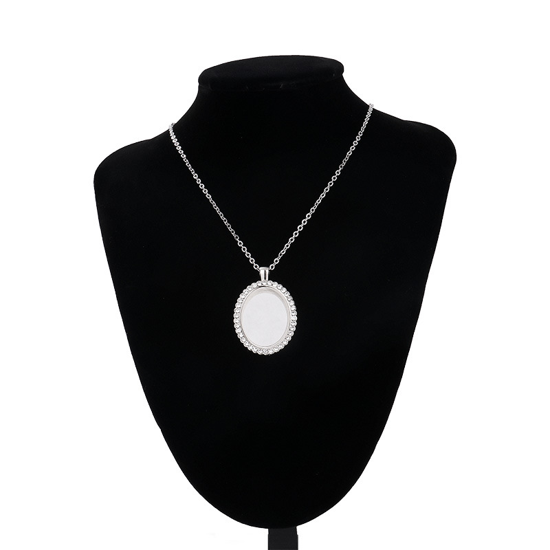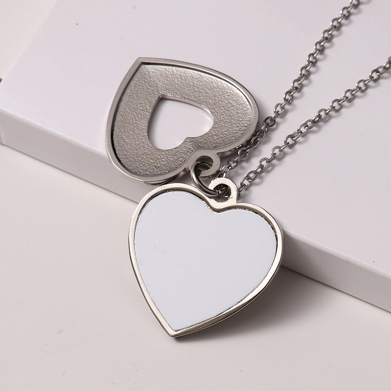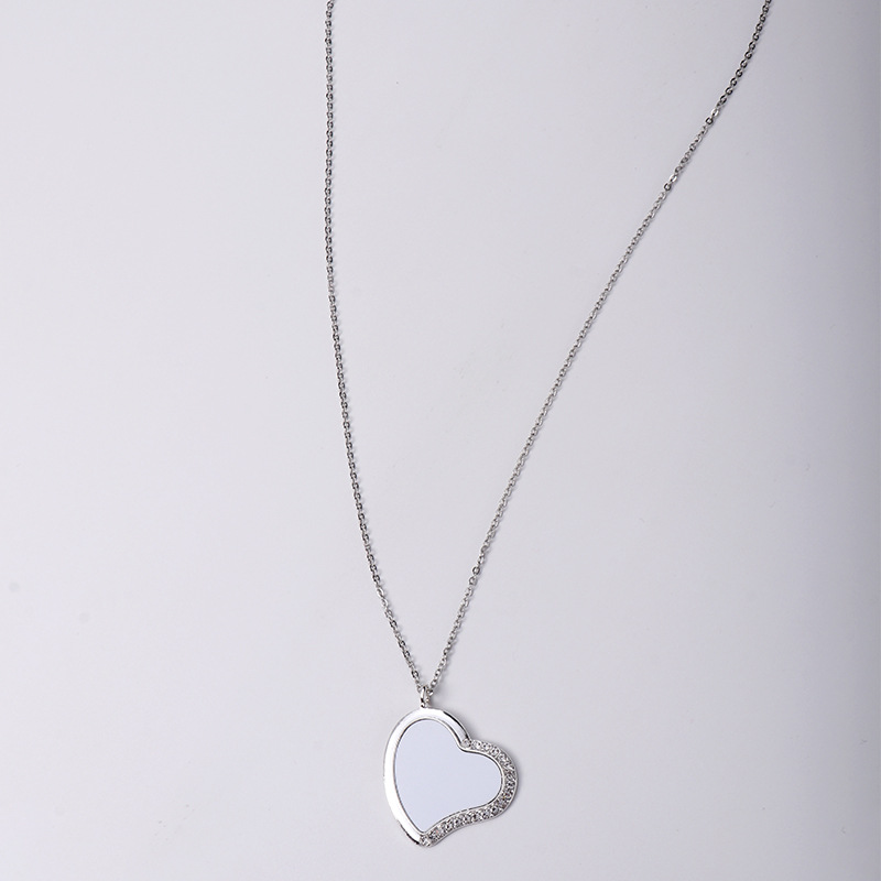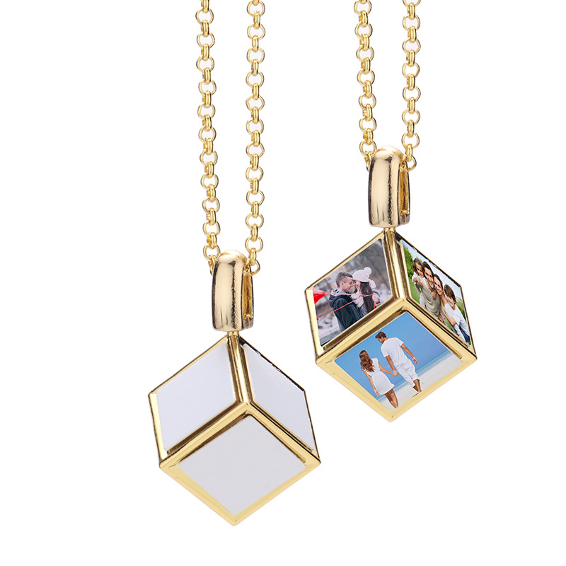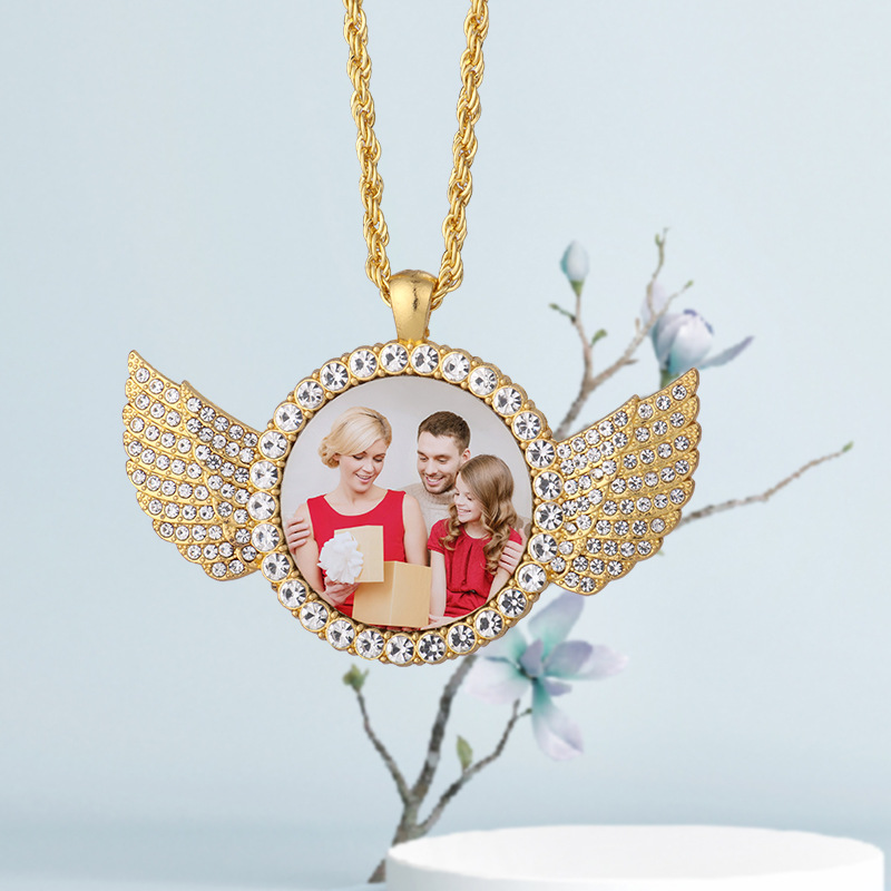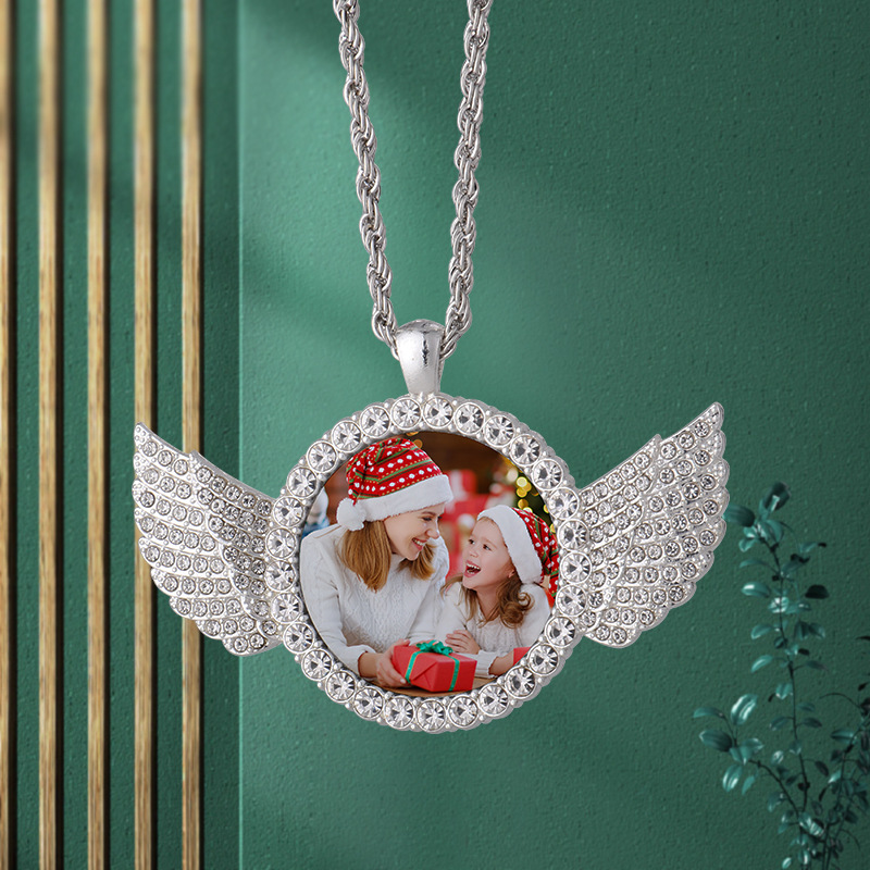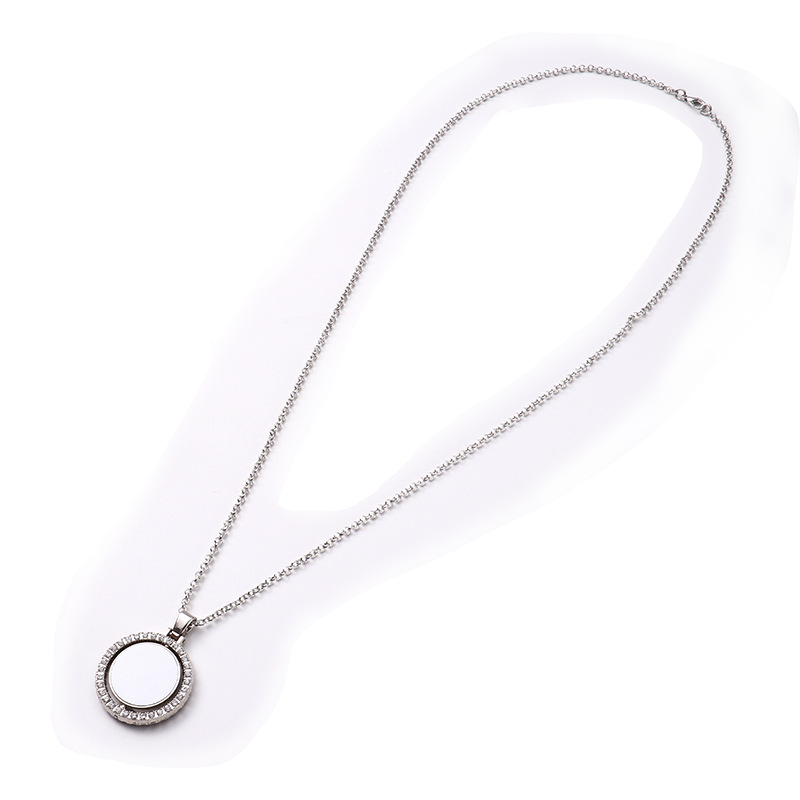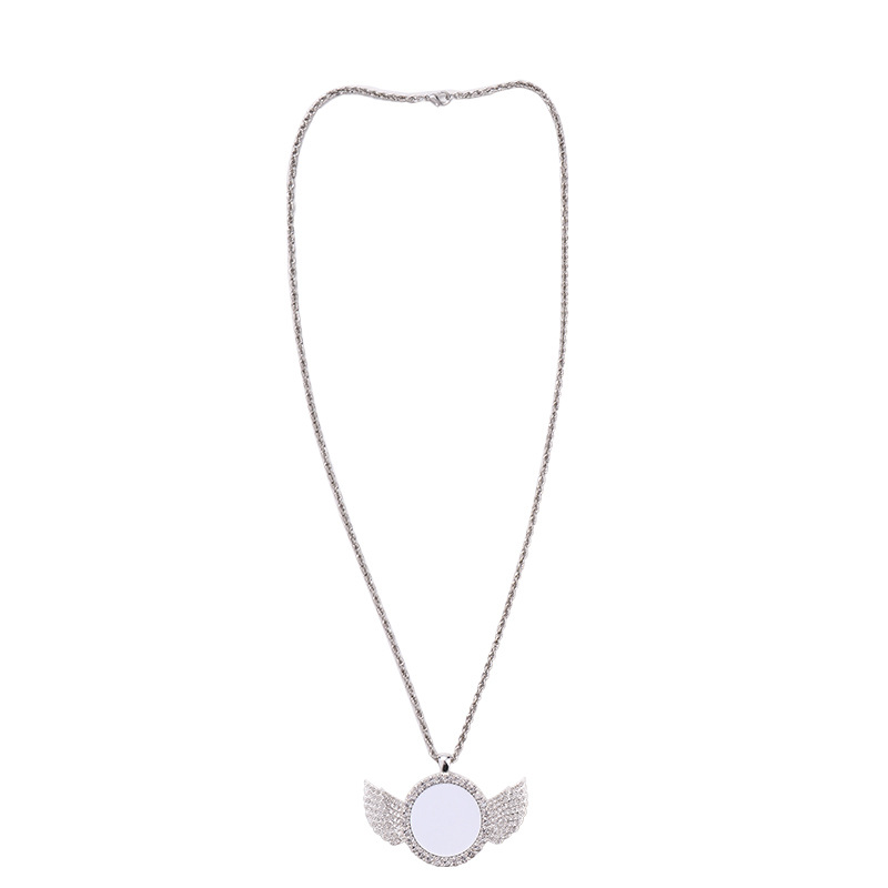 跨境热转印空白项链心形翅膀镶钻圆形旋转可打开向日葵骰子吊坠