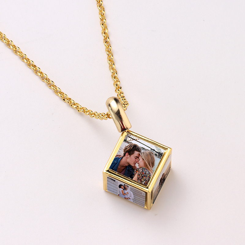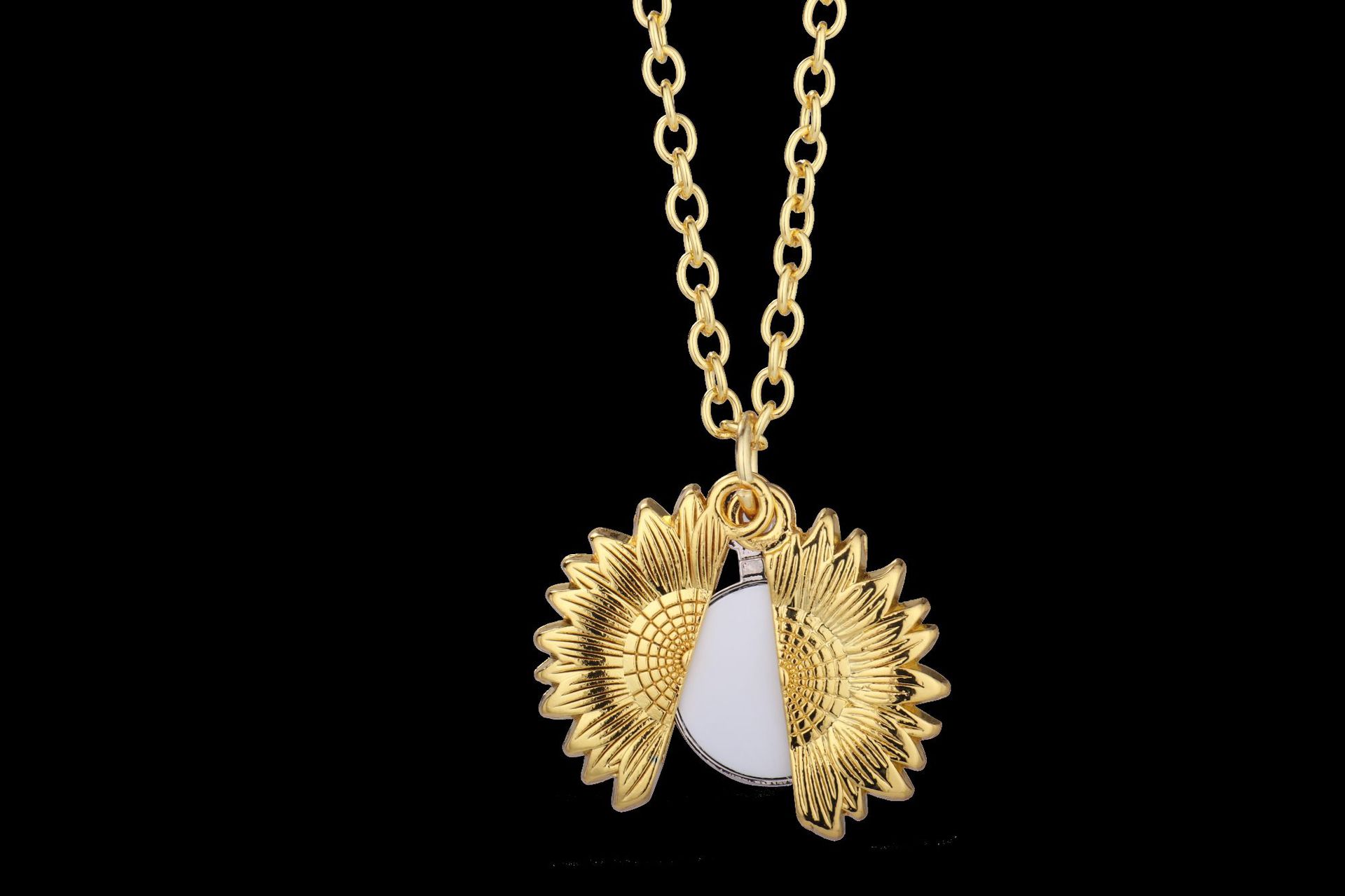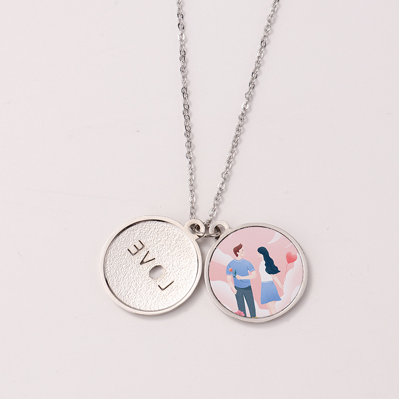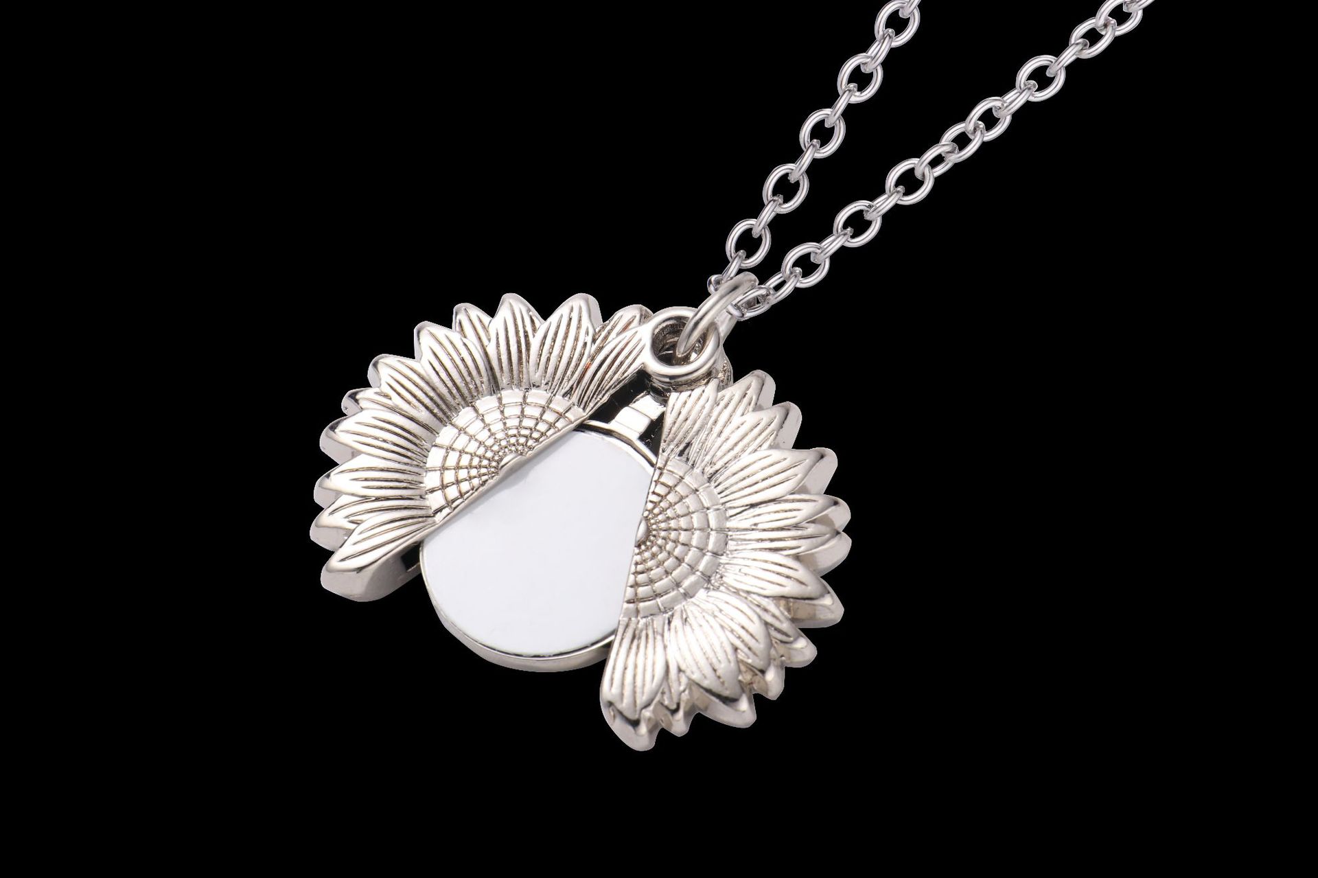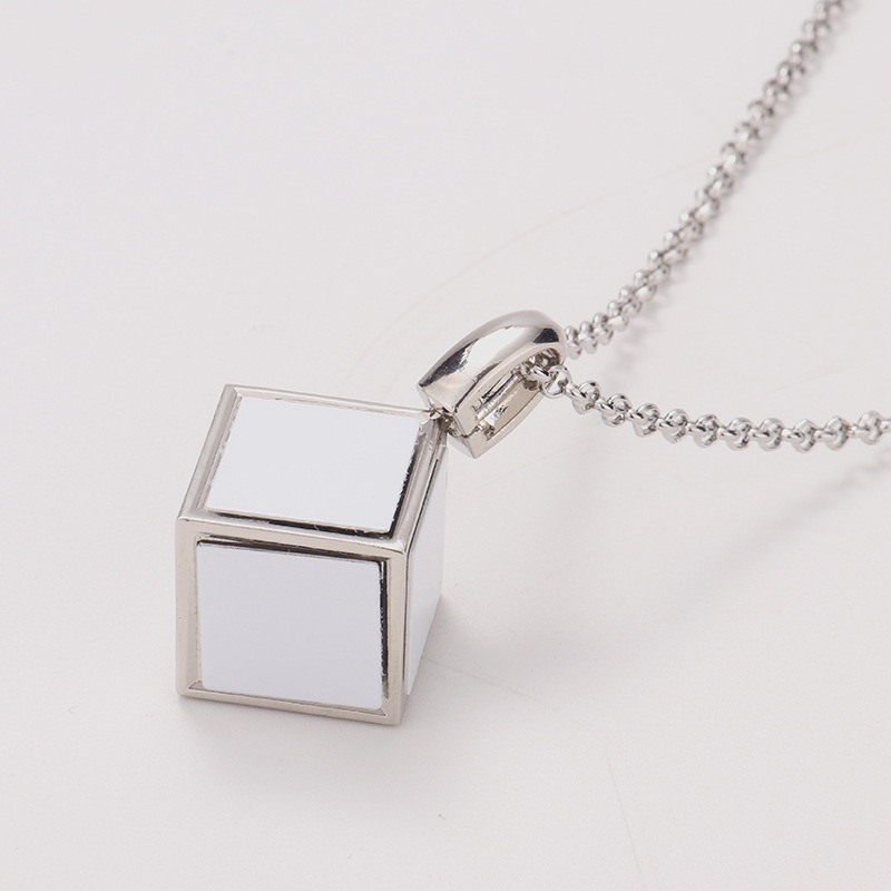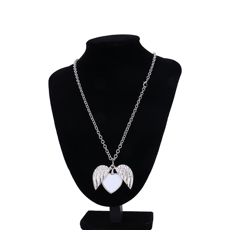 跨境热转印空白项链心形翅膀镶钻圆形旋转可打开向日葵骰子吊坠