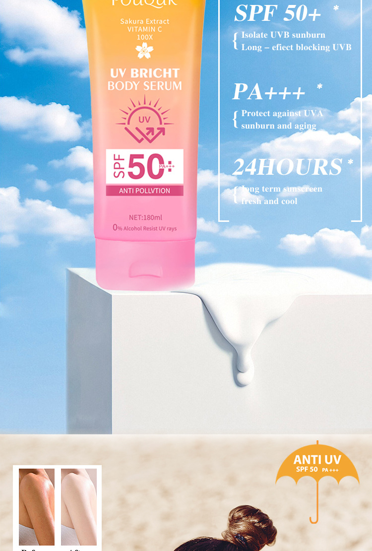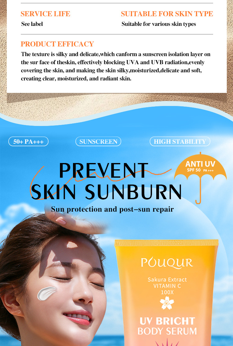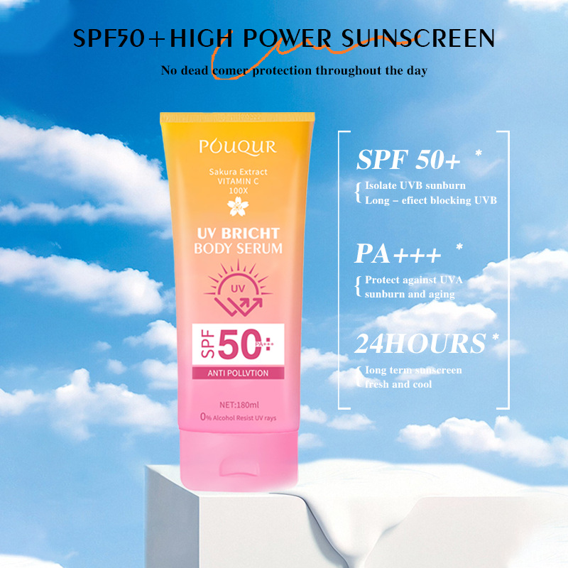 跨境樱花UV隔离防晒乳 POUQUR身体精华美白BB保湿霜sunscreen外贸