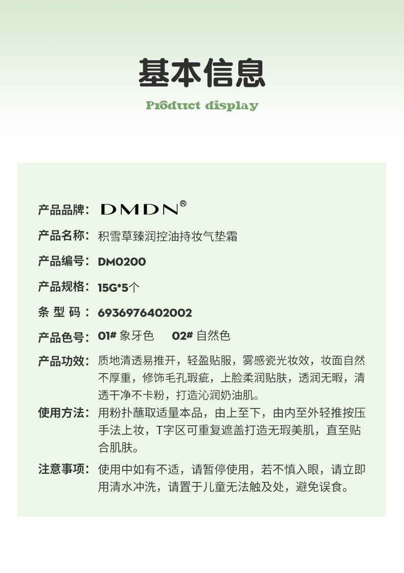 dmdn积雪草控油持妆气垫轻薄水润不卡粉保湿买一送四气垫bb霜套盒