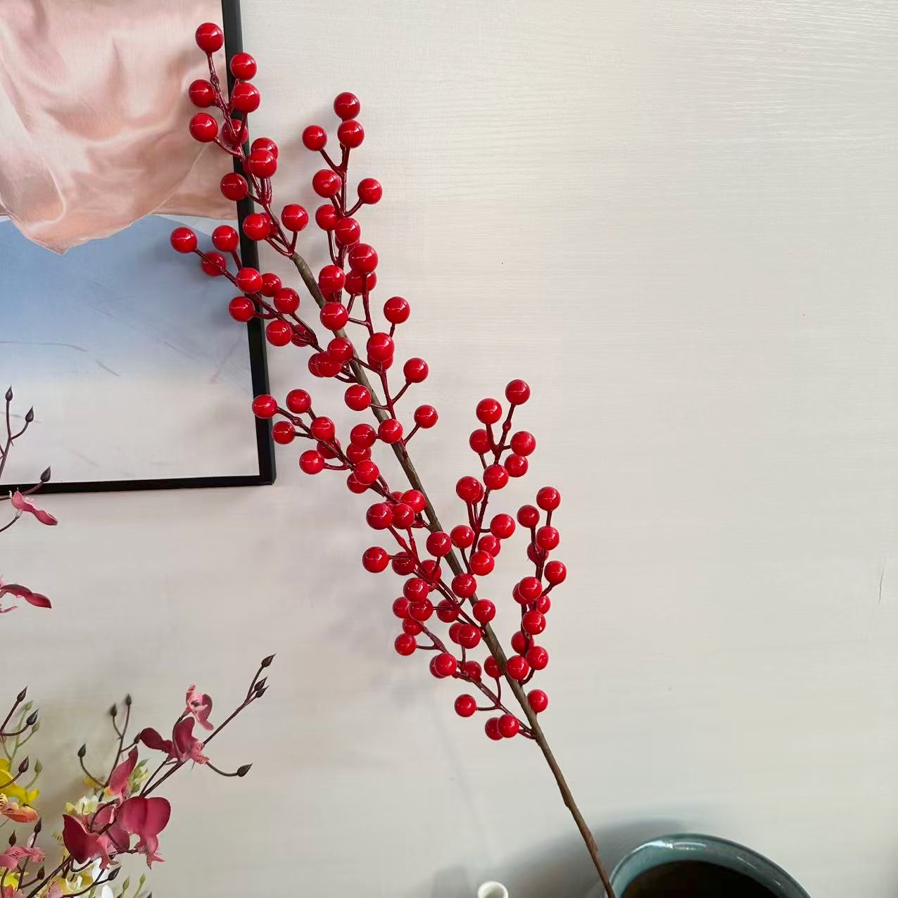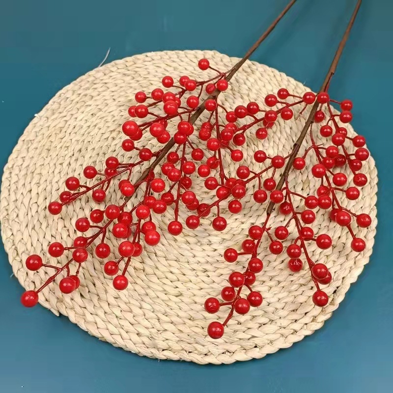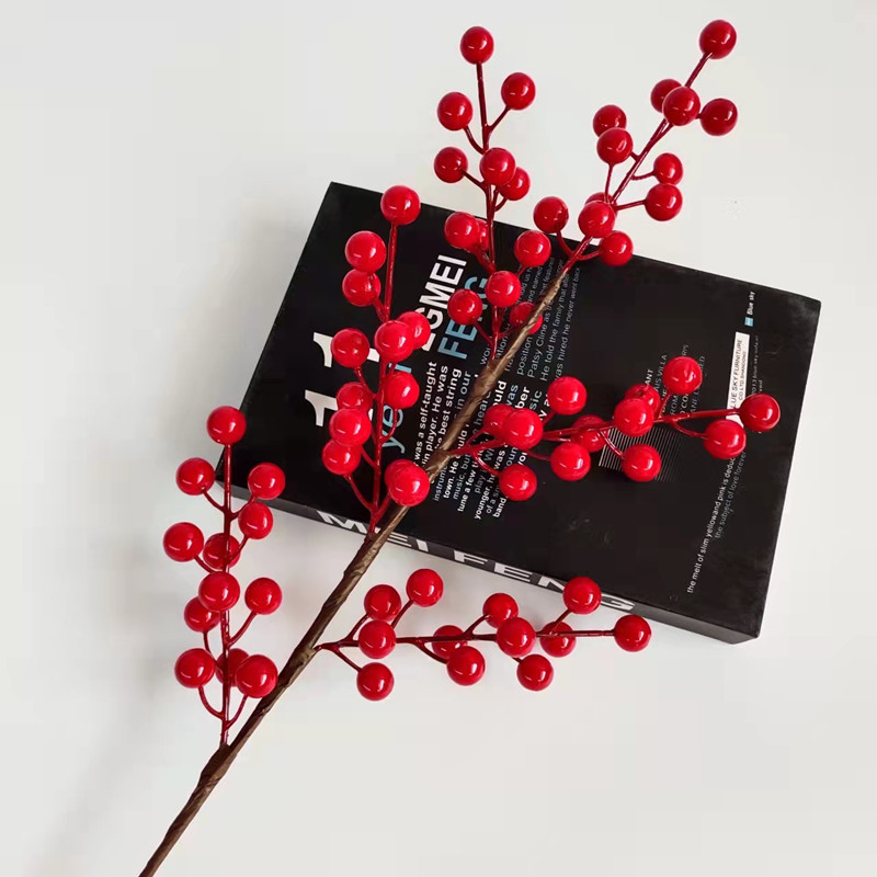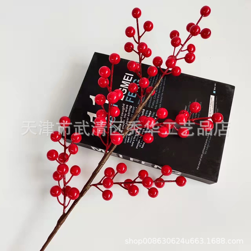 冬青仿真花发财果年宵花福桶红果居家摆设假花客厅餐桌相思豆批发