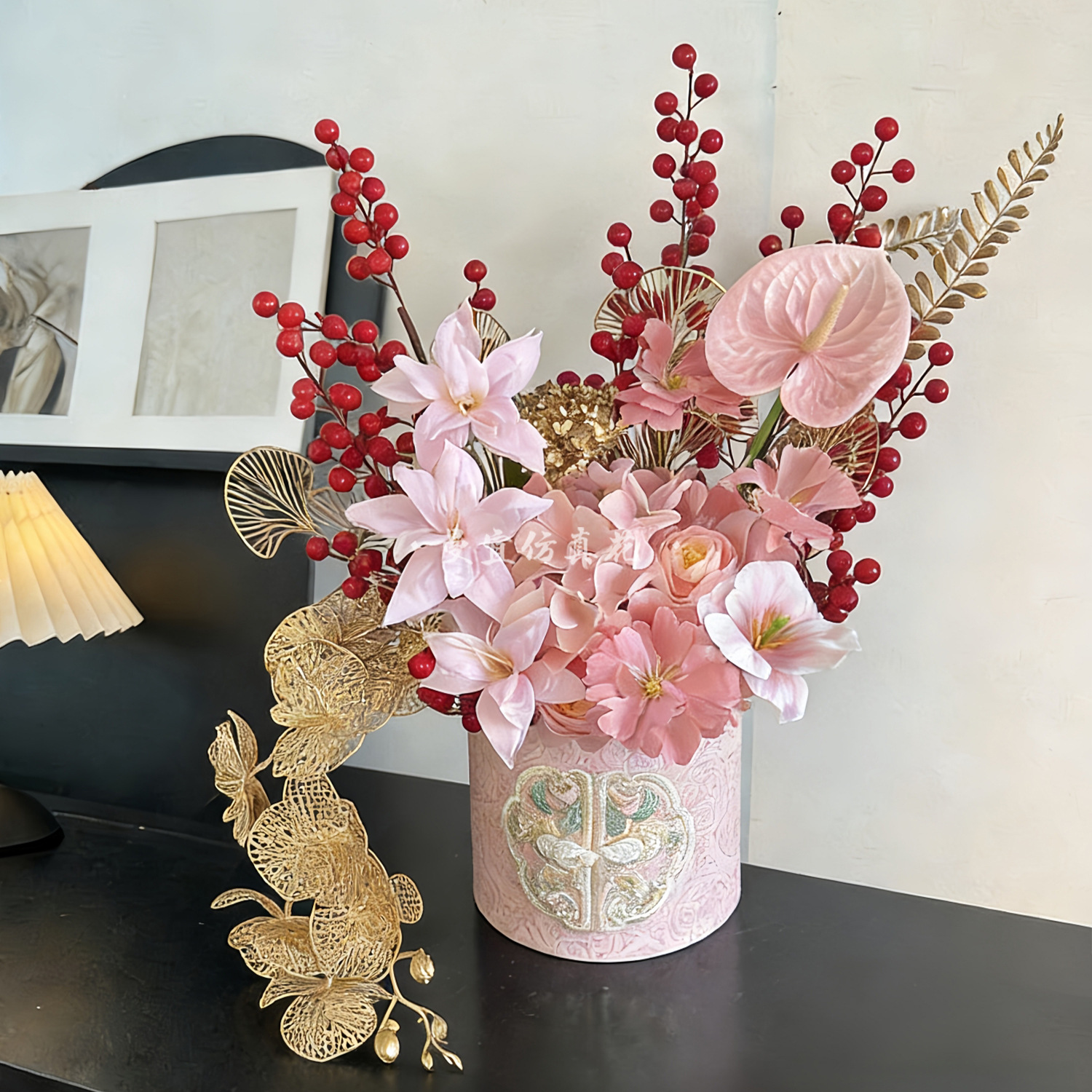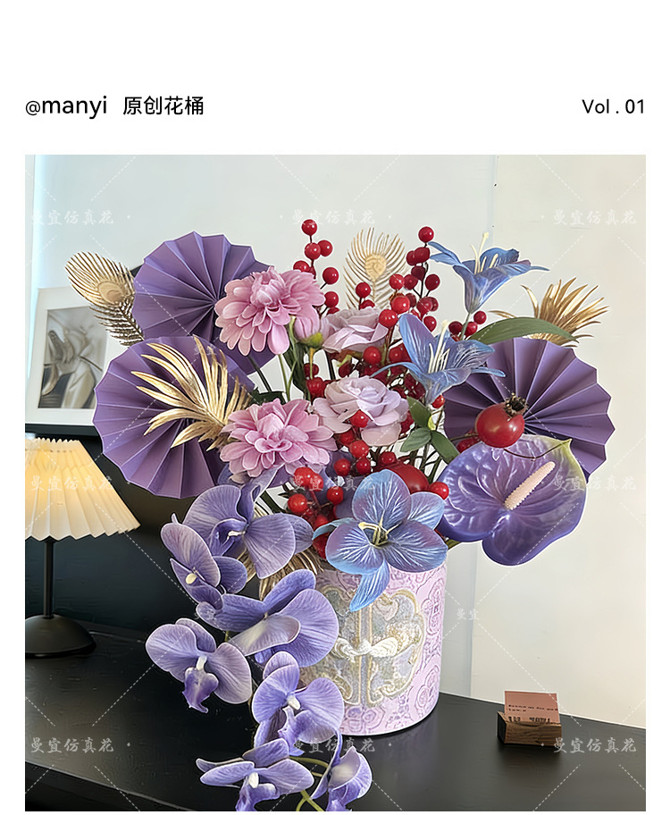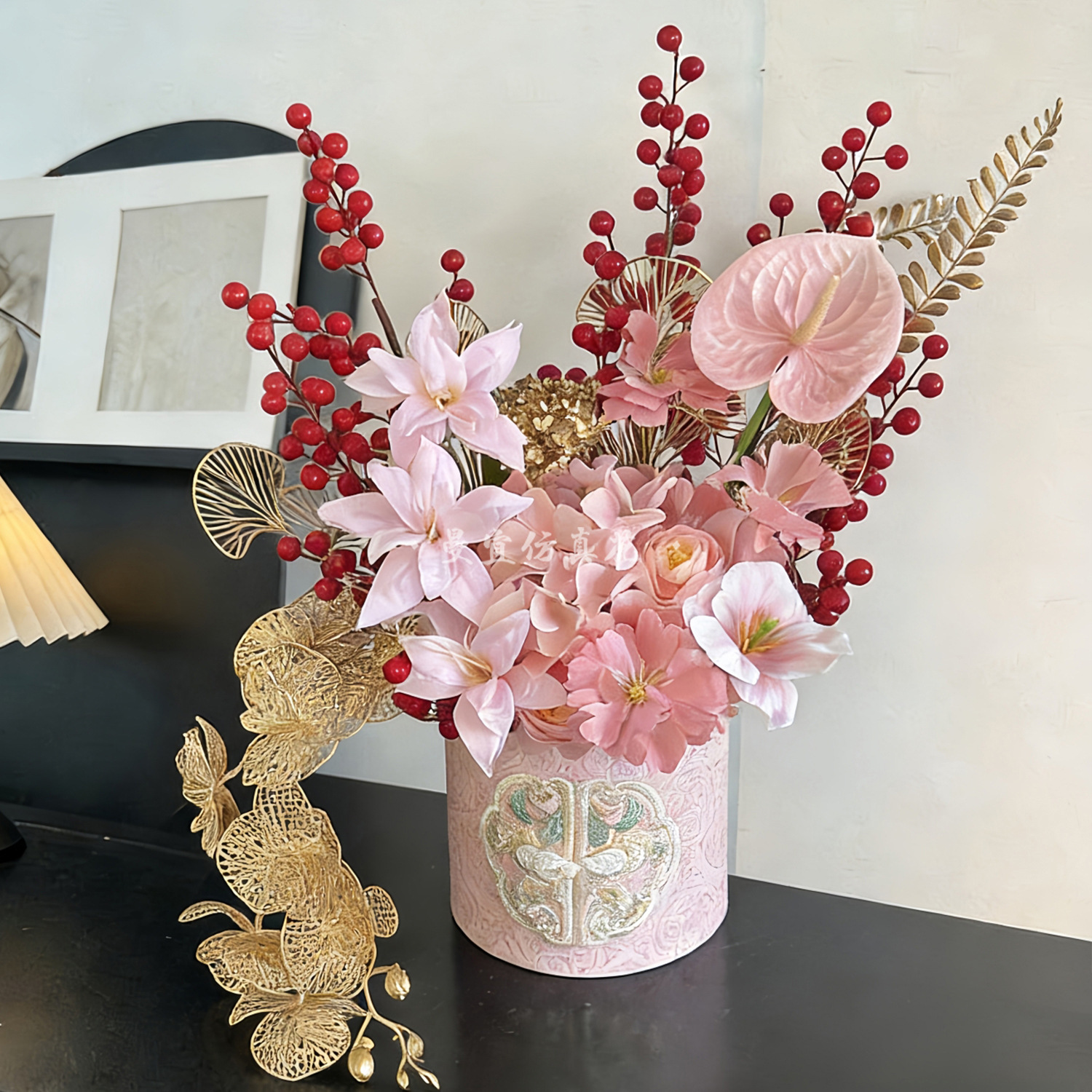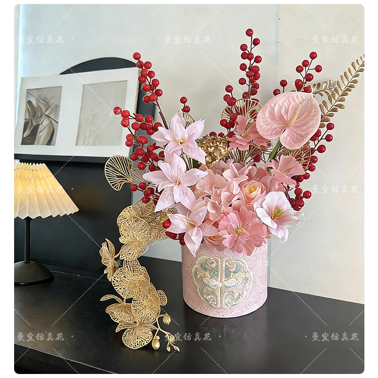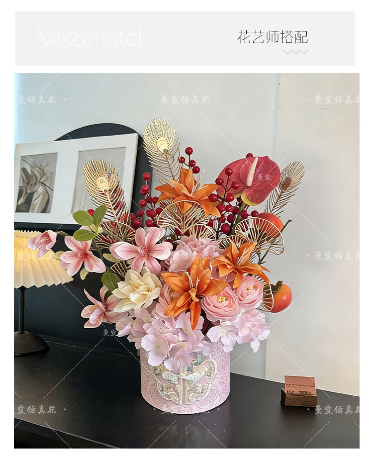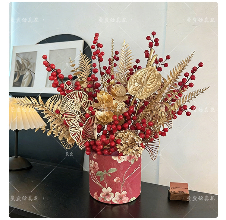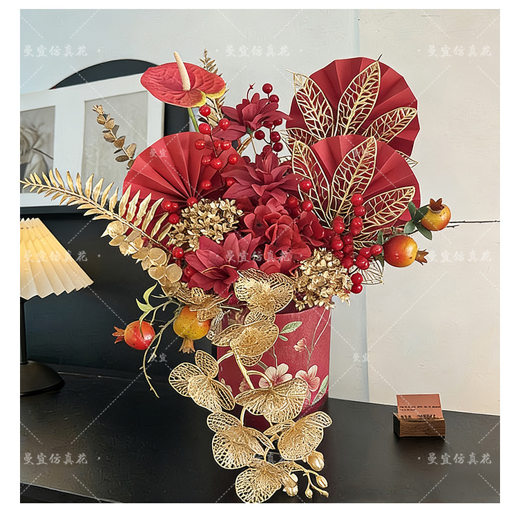 2026马年中式年宵花发财果福桶假花新婚新年春节客厅台桌装饰批发