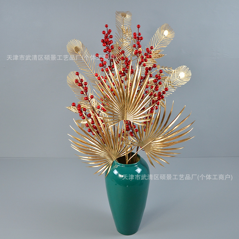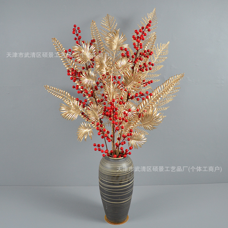金色系花材仿真塑料金色年宵花婚房福桶插花圣诞新年氛围装饰道具