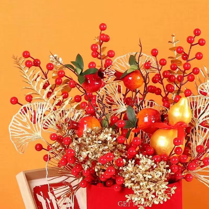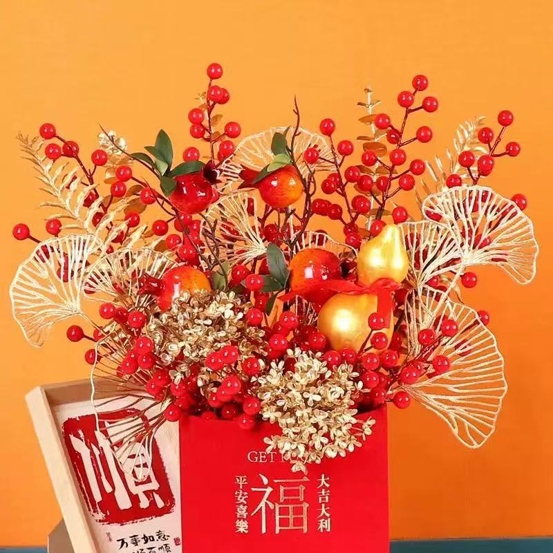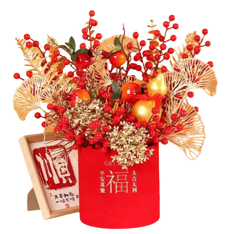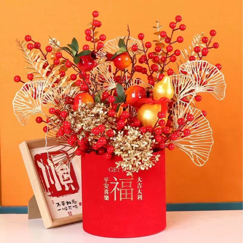 新年年宵花福桶乔迁之喜红果发财果客厅装饰喜庆摆件新居结婚布置