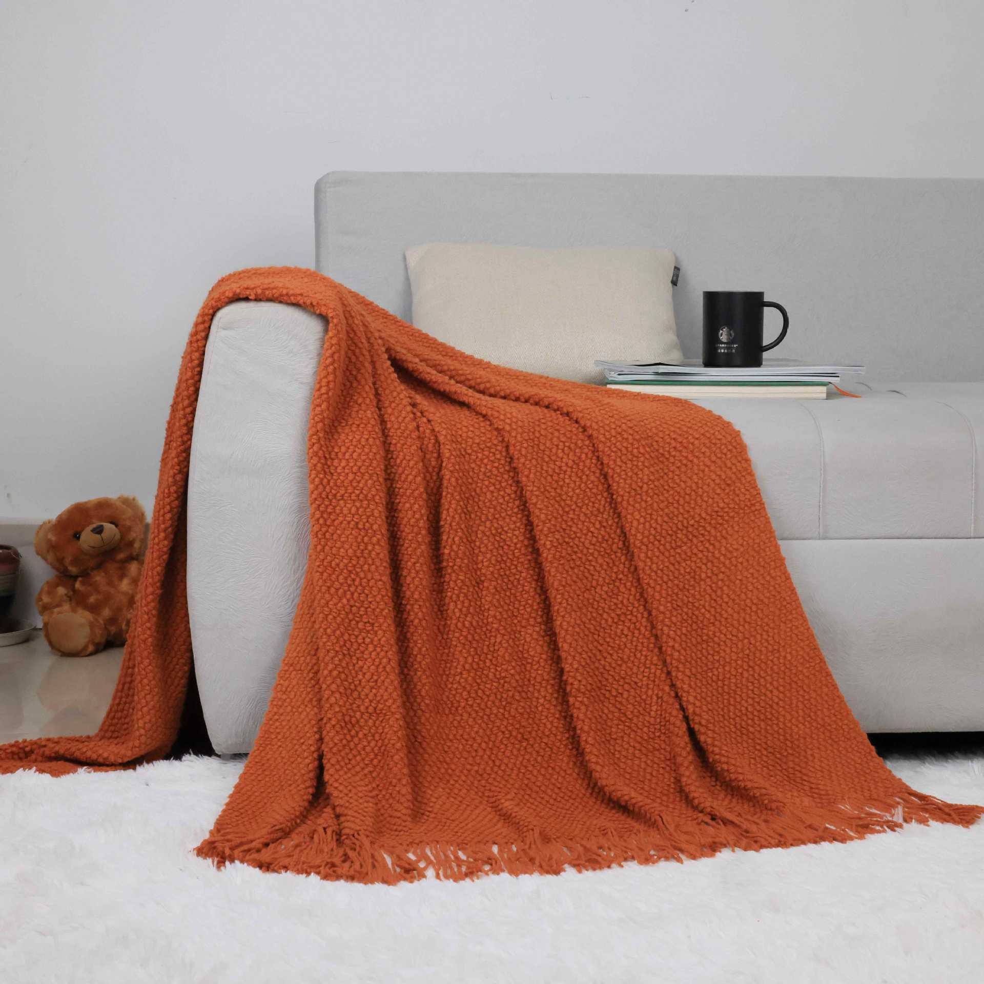 欧式简约轻奢玉米粒床盖北欧毛毯现代简约沙发毯沙发巾毯子