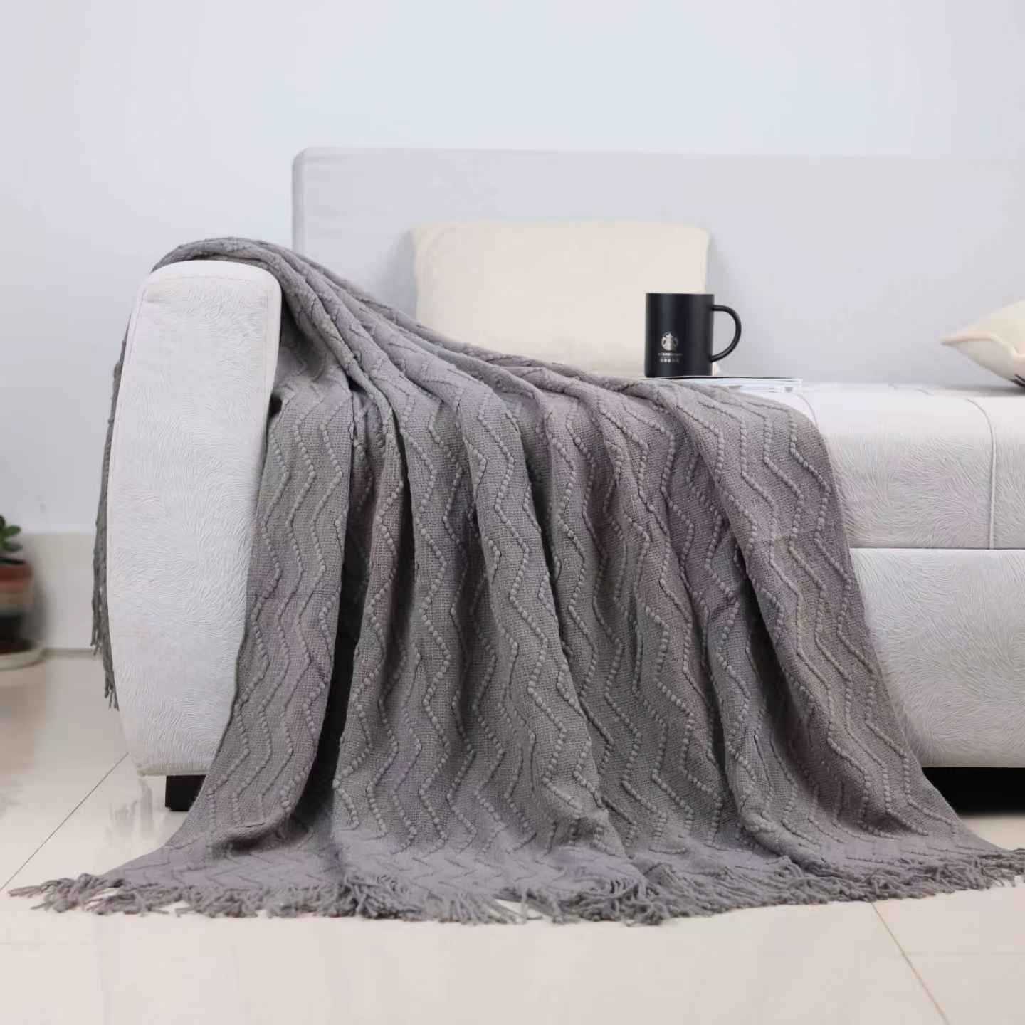 欧式跨境ing风纯色沙发毯法式沙发巾居家毯子家用午睡毯毛毯批发