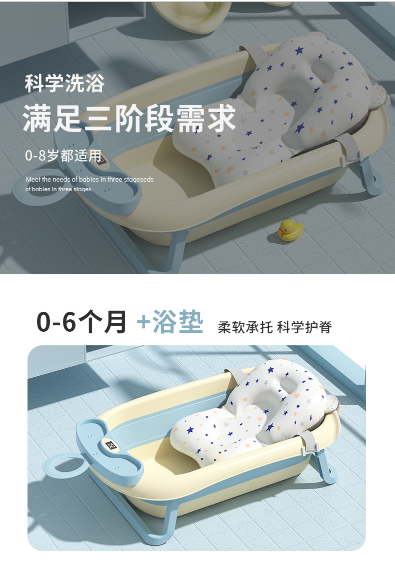 折叠感温婴儿洗澡盆新生儿可坐躺洗澡盆家用新生儿大号宝宝浴盆16
