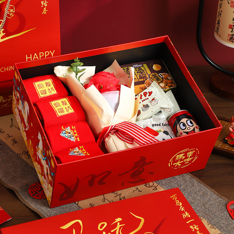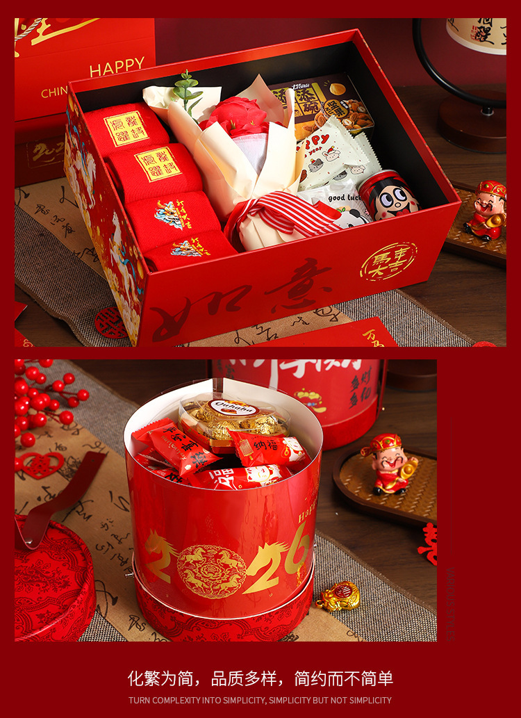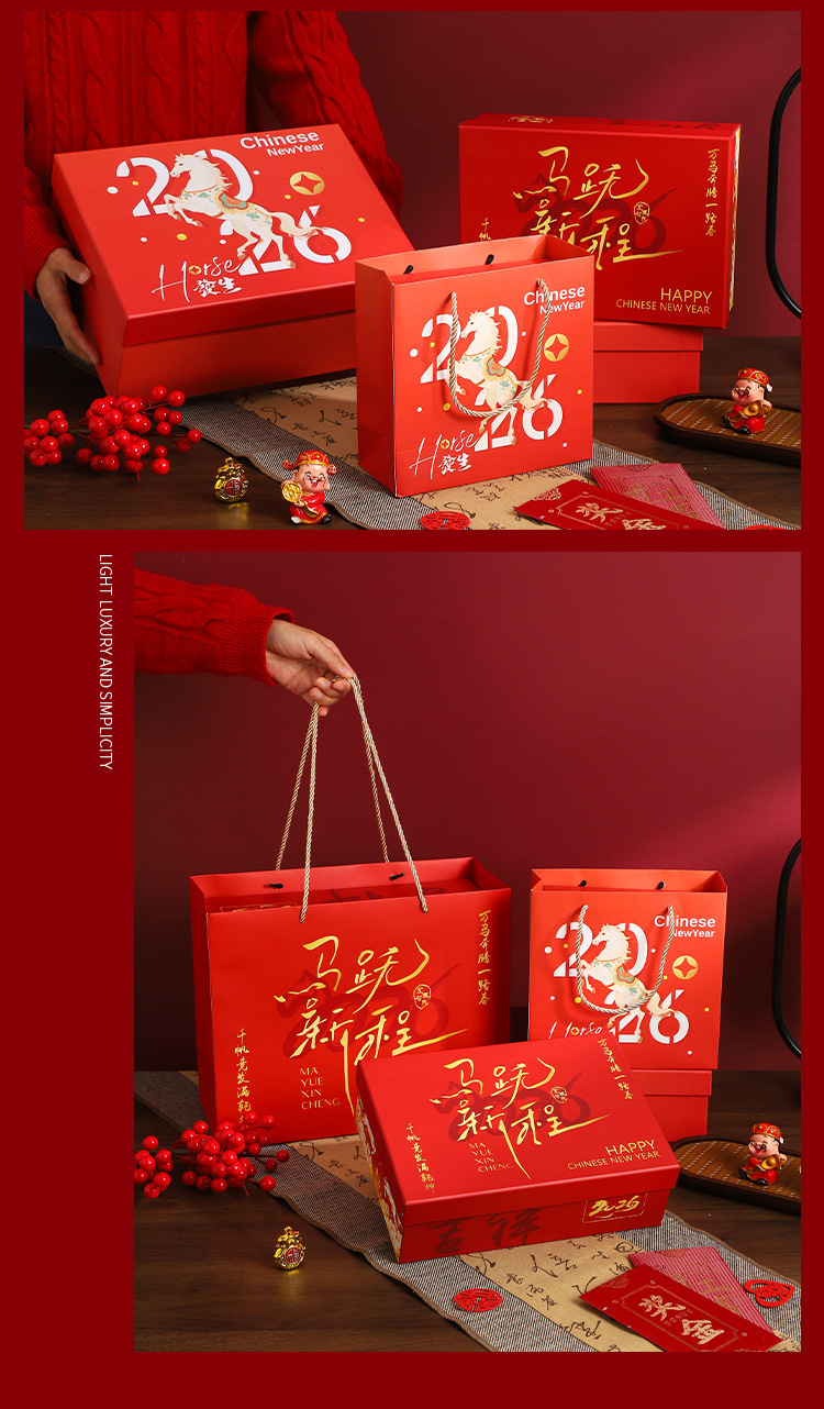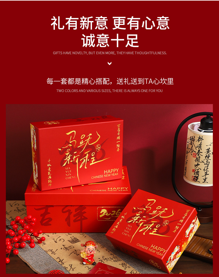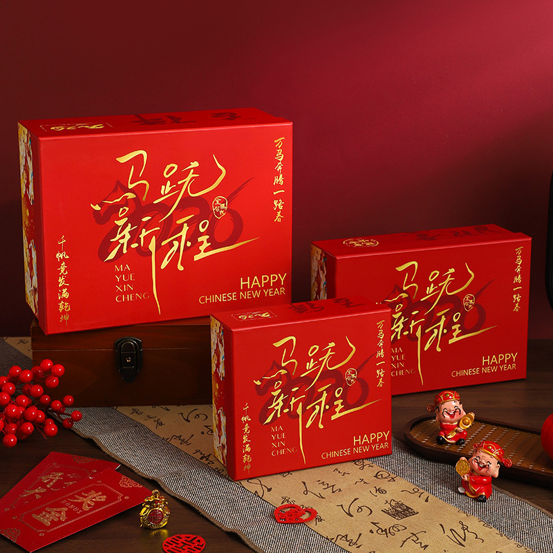 2026新款春节礼盒马年天地盖礼品包装零食大礼包手提礼盒现货批发