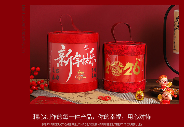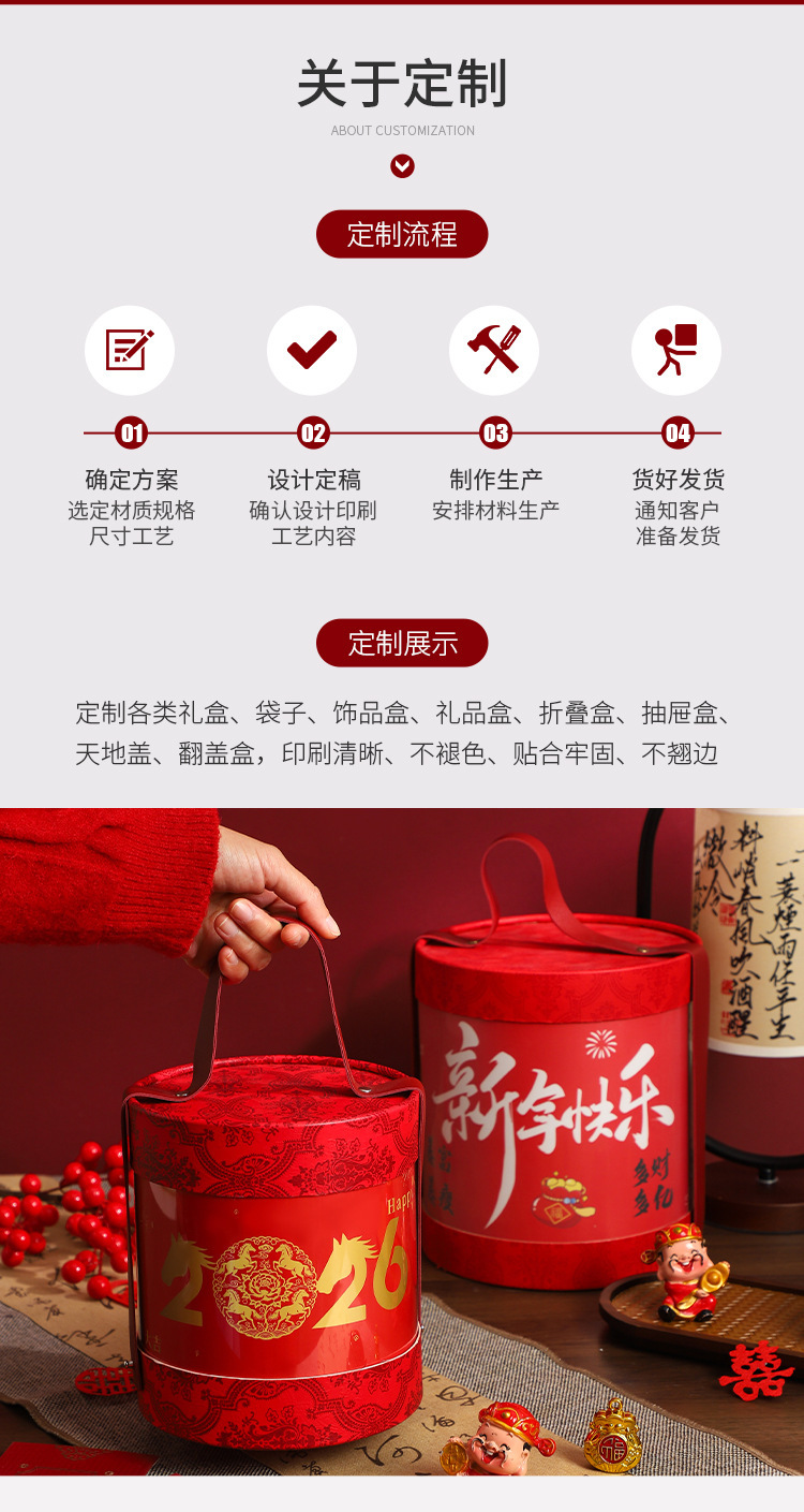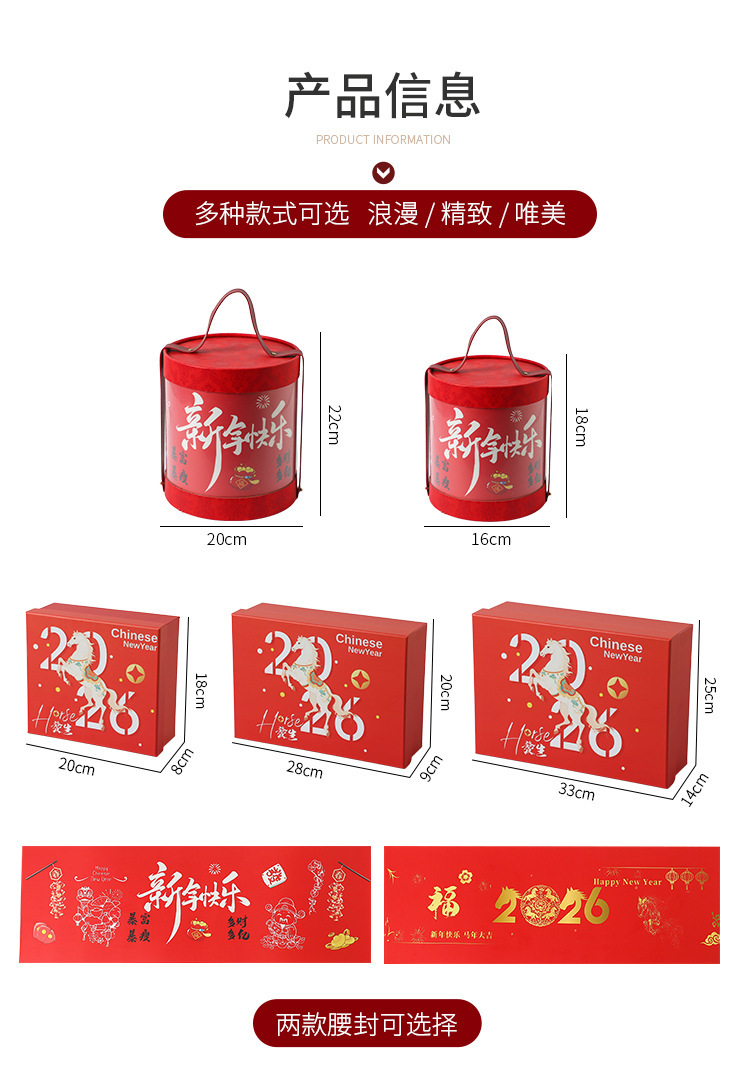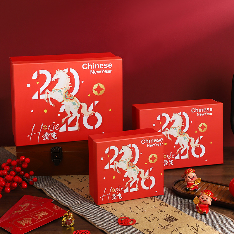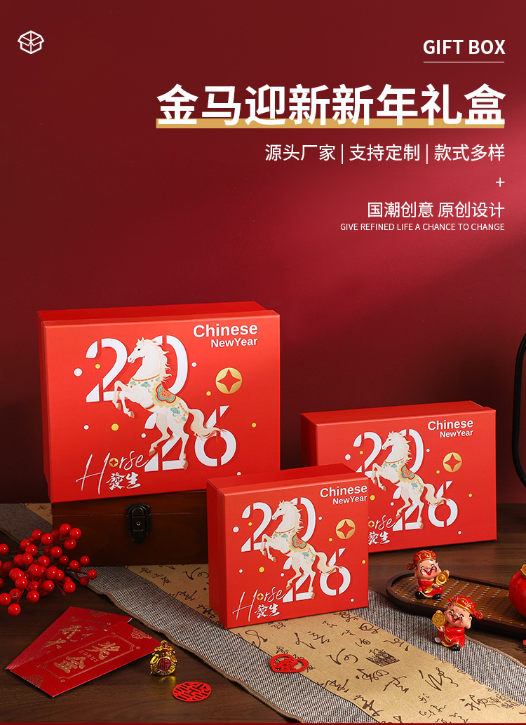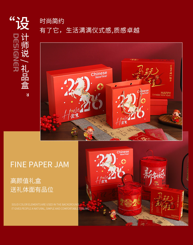 2026新款春节礼盒马年天地盖礼品包装零食大礼包手提礼盒现货批发