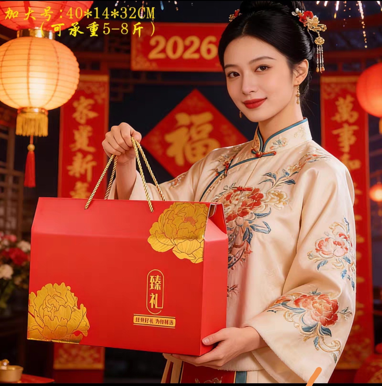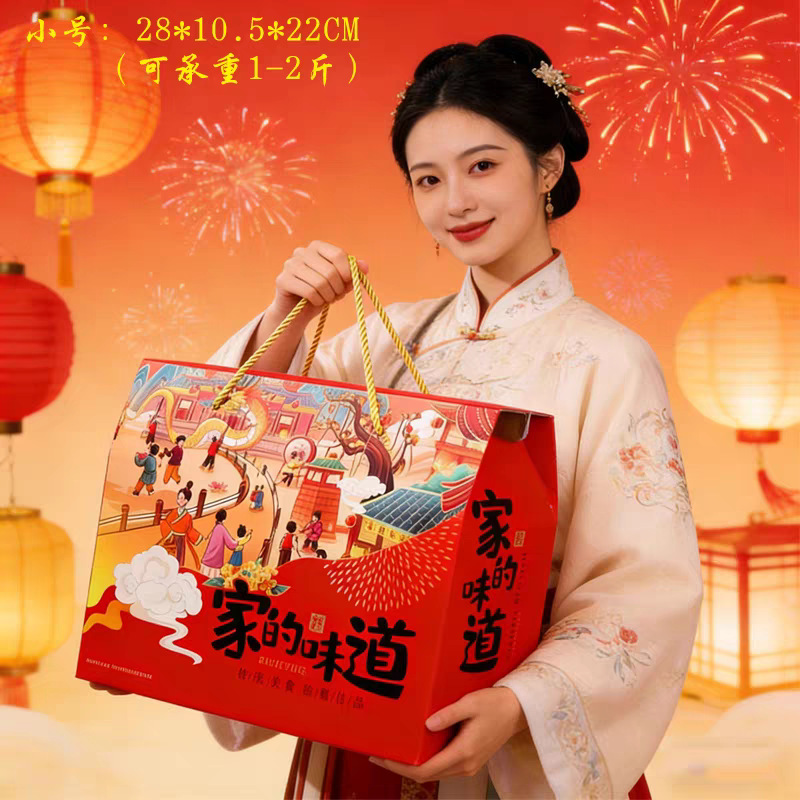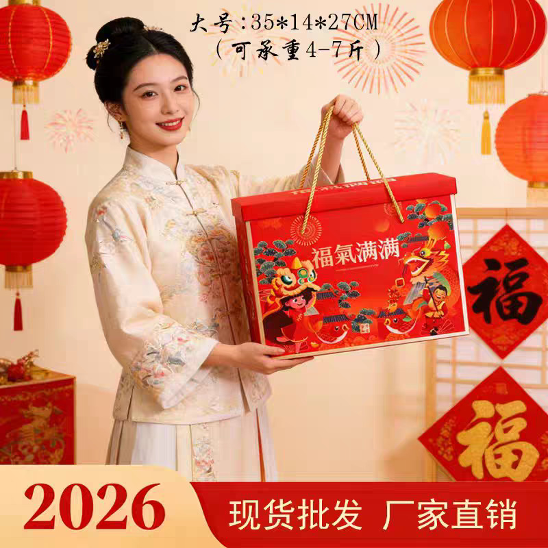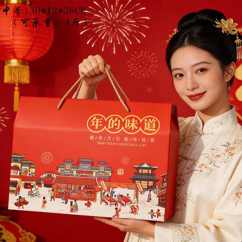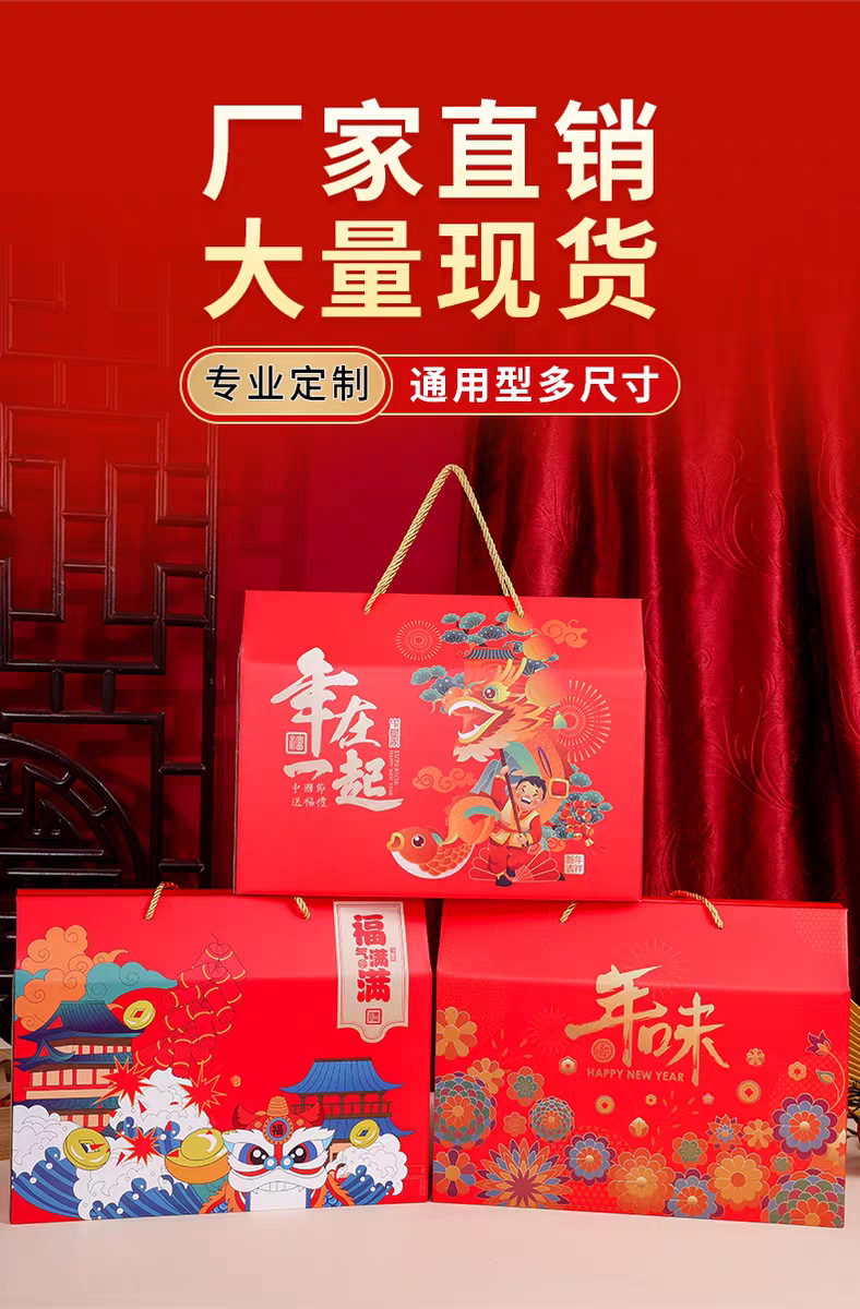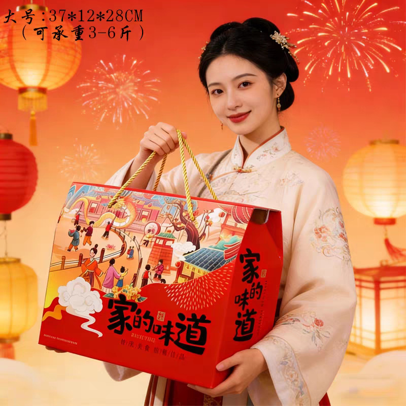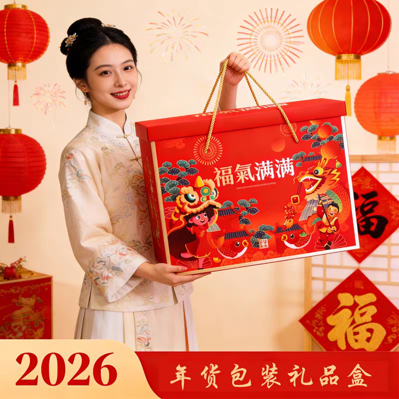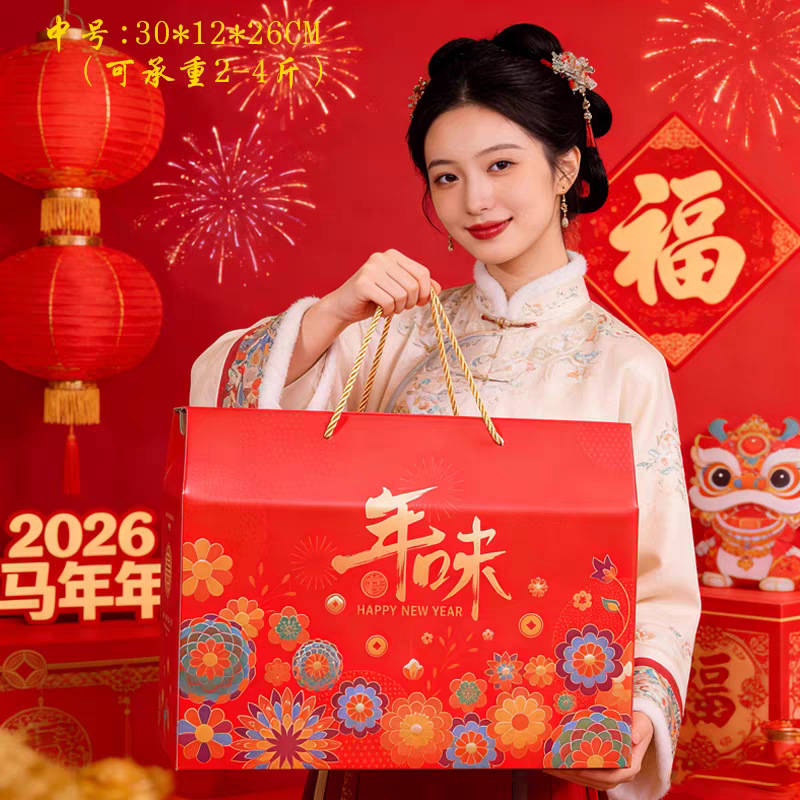 2026年货礼盒手提土特产干货水果包装盒腊肠瓦楞盒马年春节礼品盒