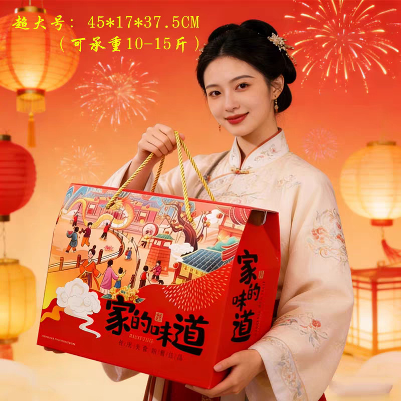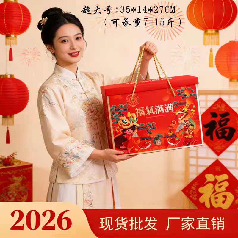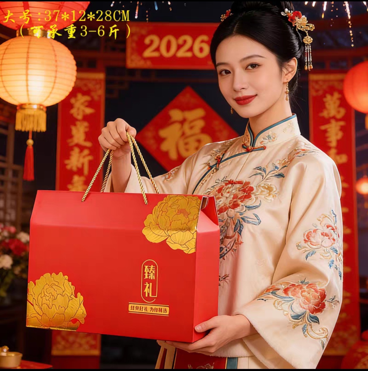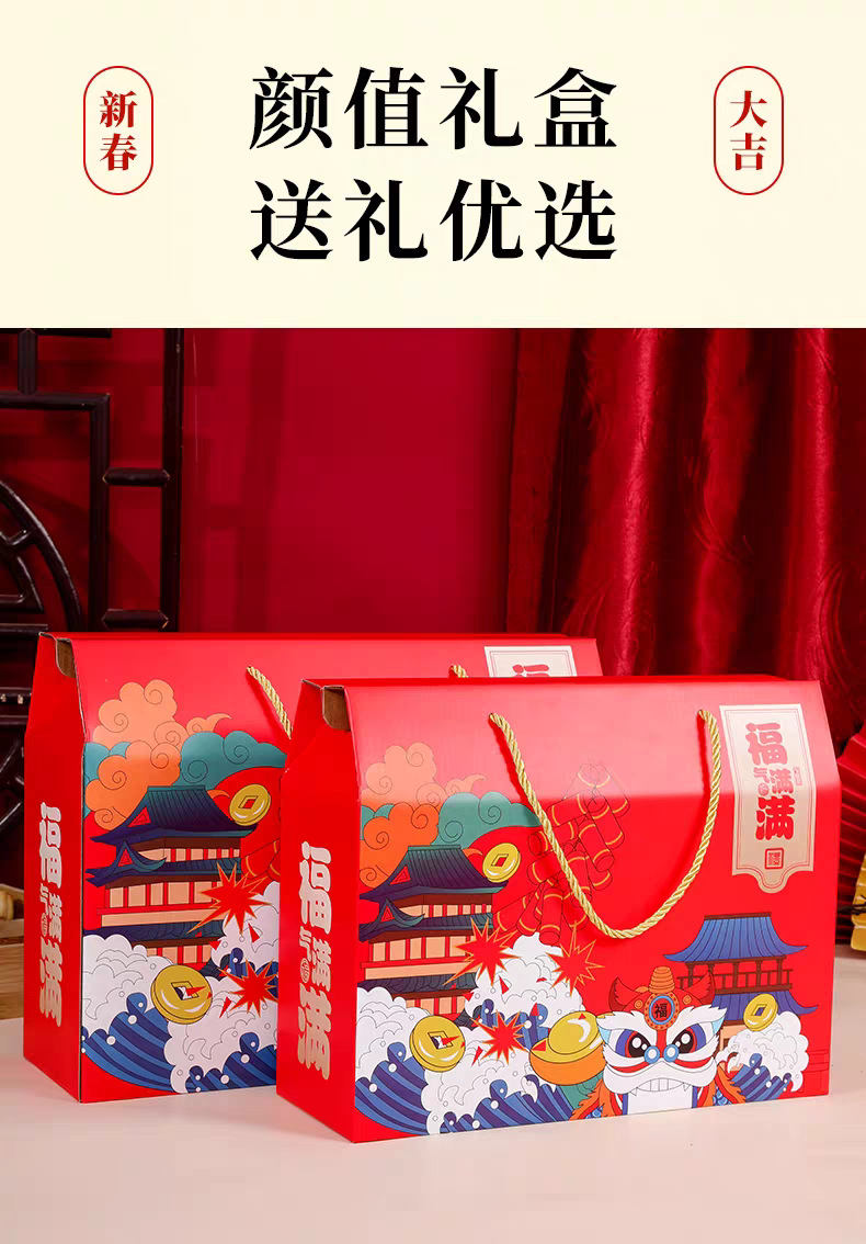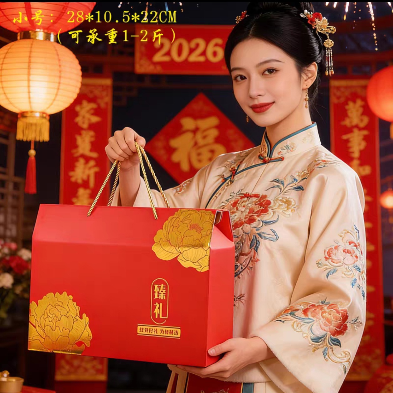 2026年货礼盒手提土特产干货水果包装盒腊肠瓦楞盒马年春节礼品盒