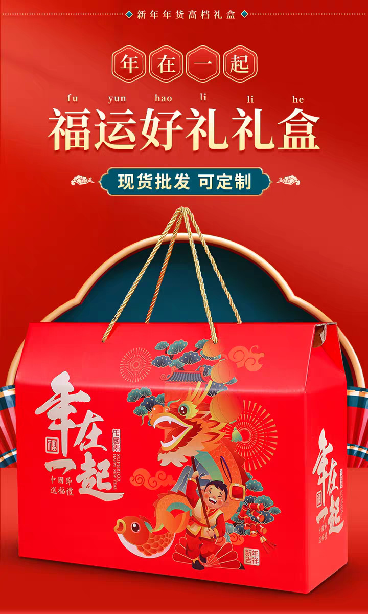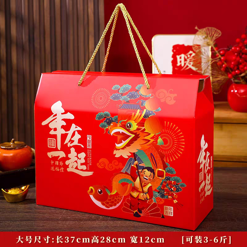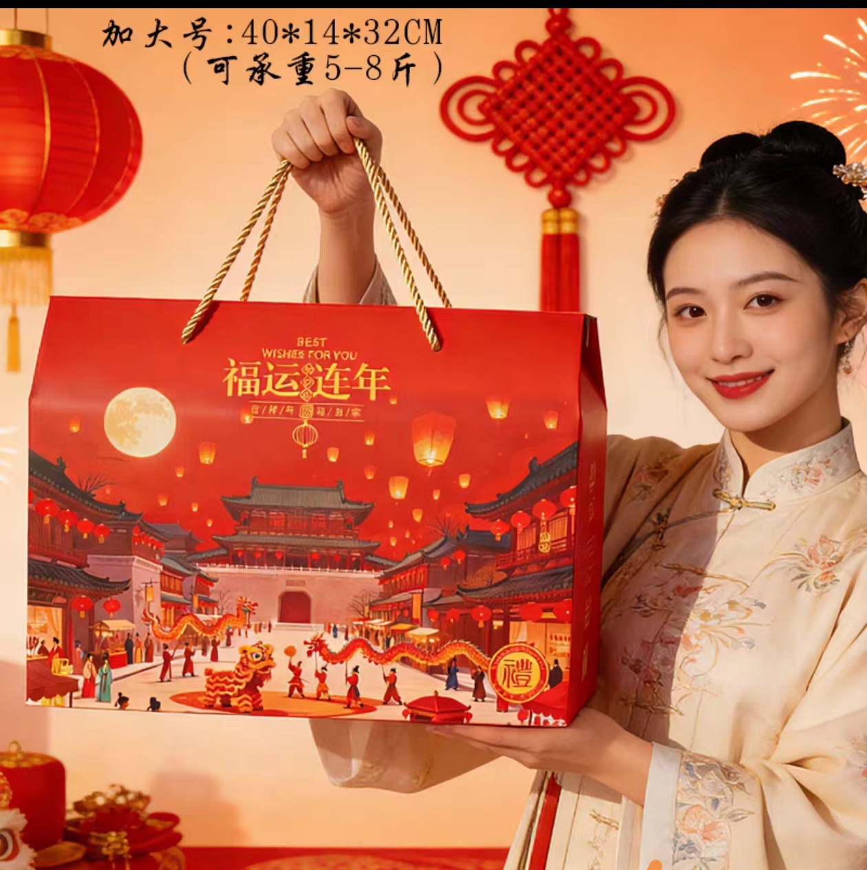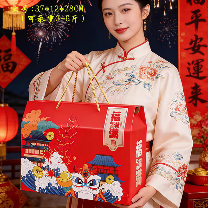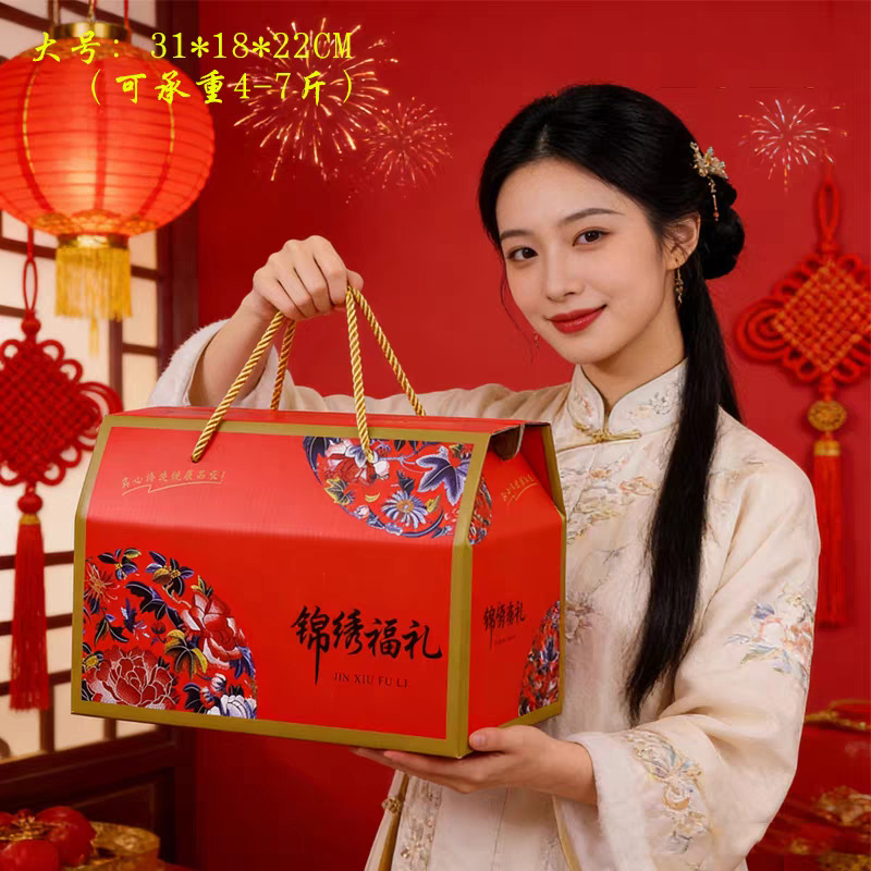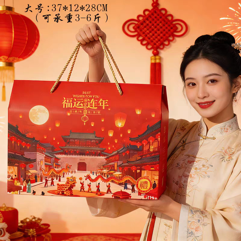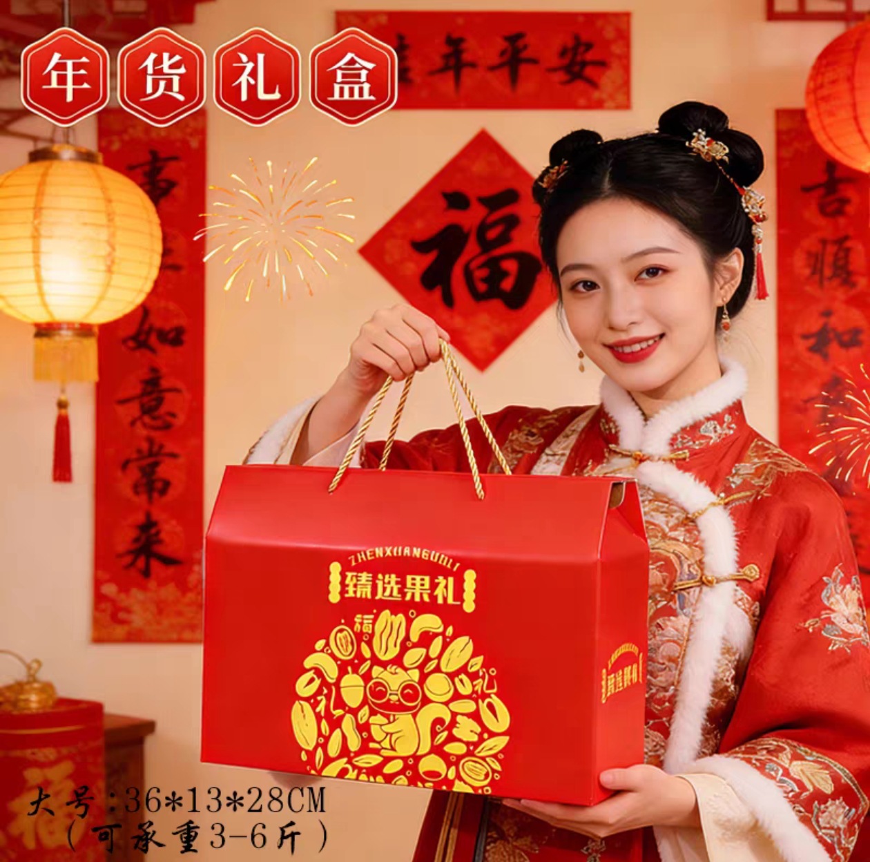 2026年货礼盒手提土特产干货水果包装盒腊肠瓦楞盒马年春节礼品盒