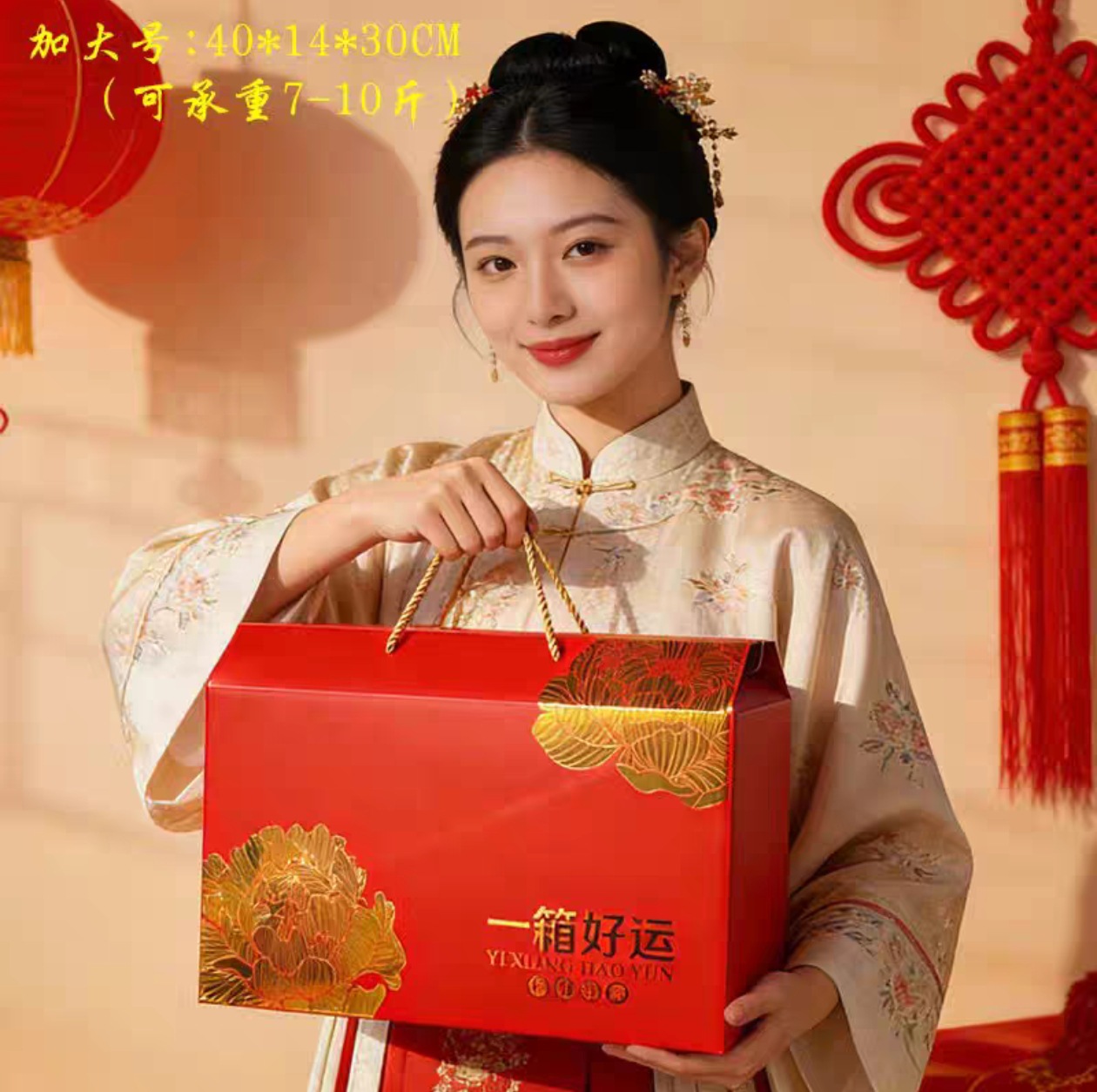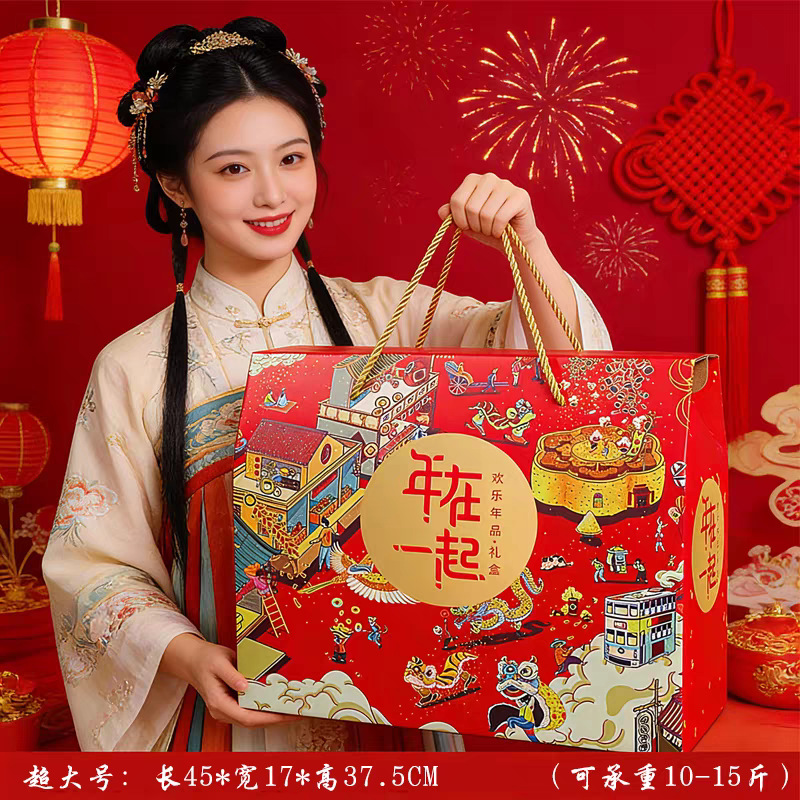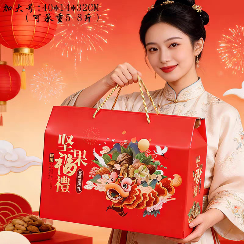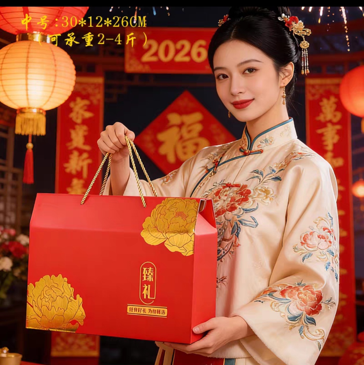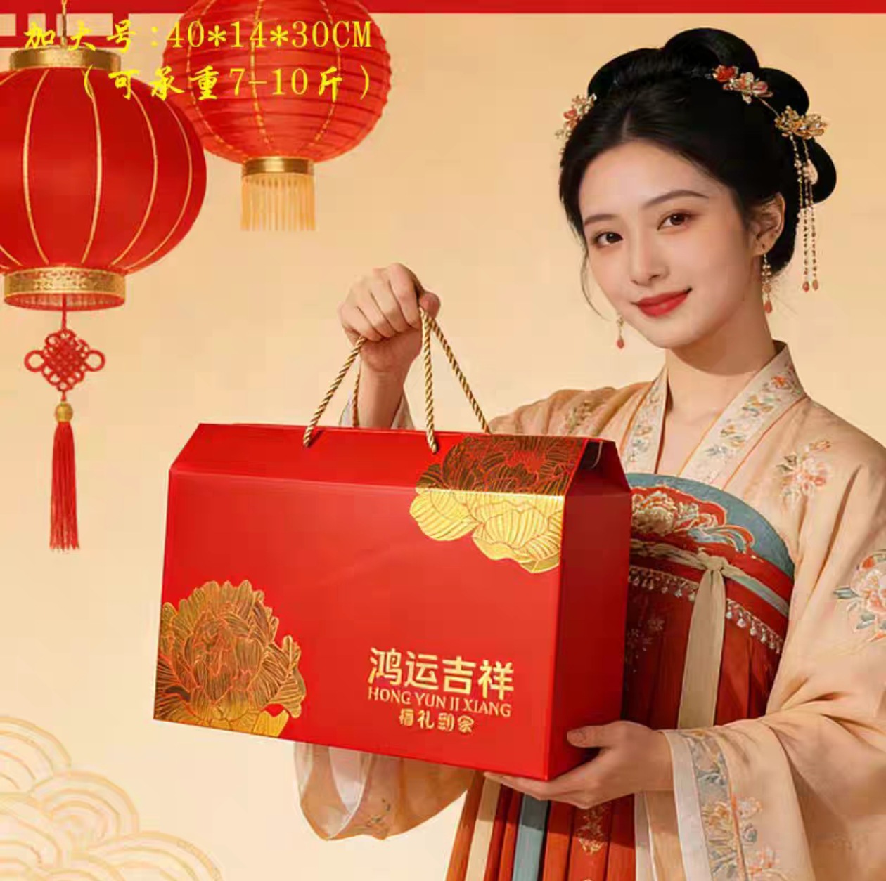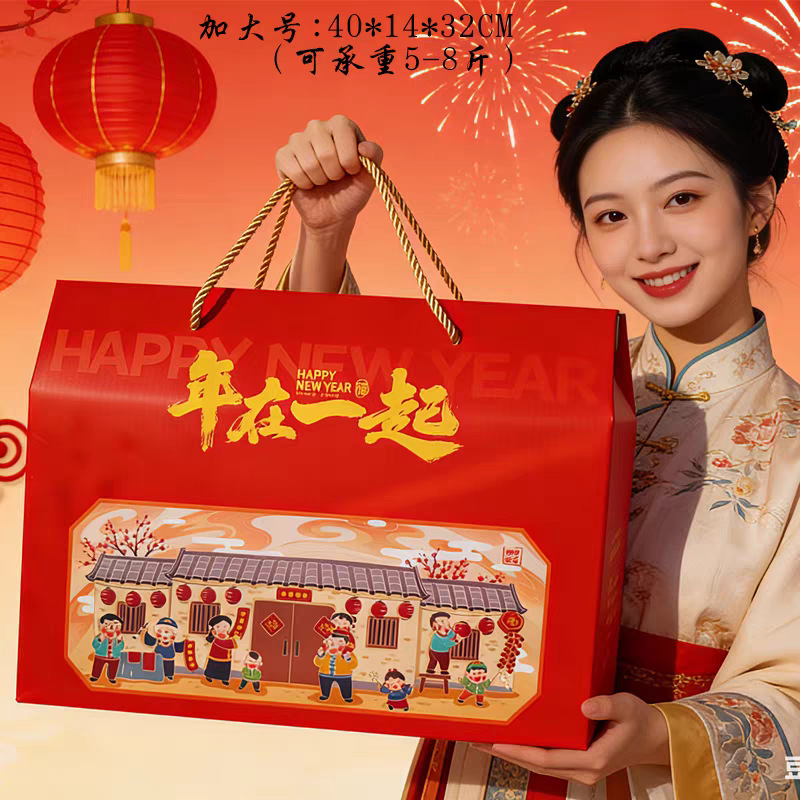 2026年货礼盒手提土特产干货水果包装盒腊肠瓦楞盒马年春节礼品盒