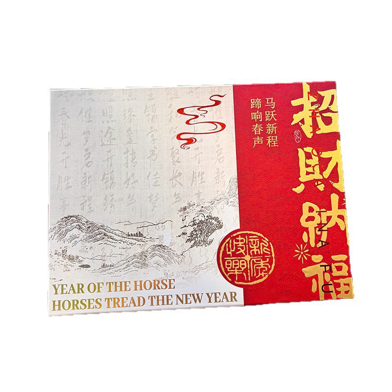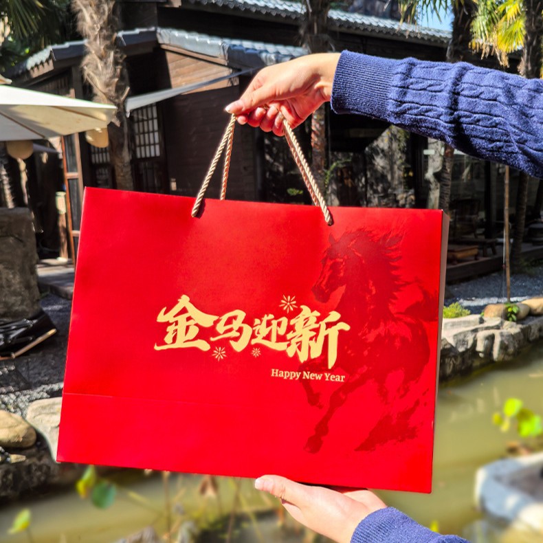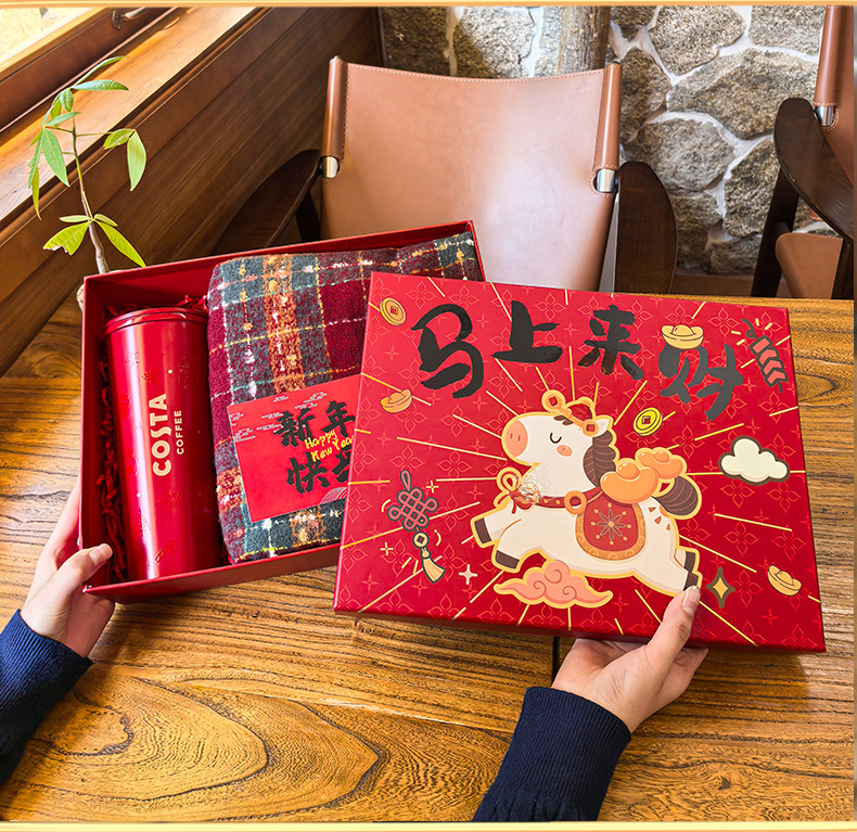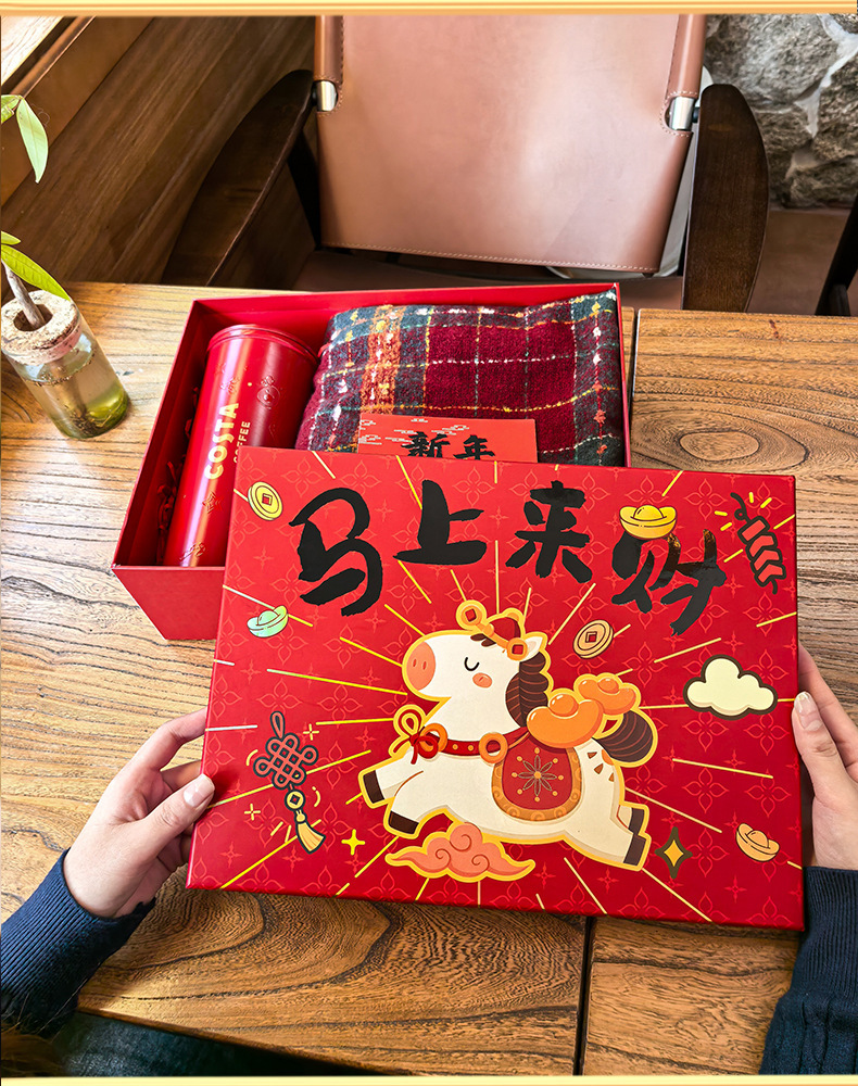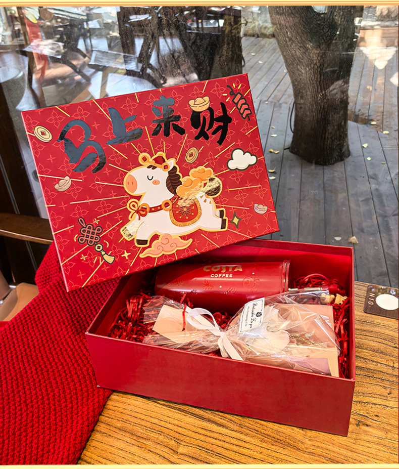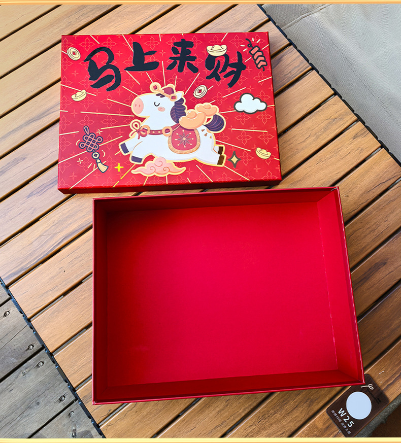 马年新春喜庆礼盒年货礼物马上来财红色包装盒坚果特产手提礼袋