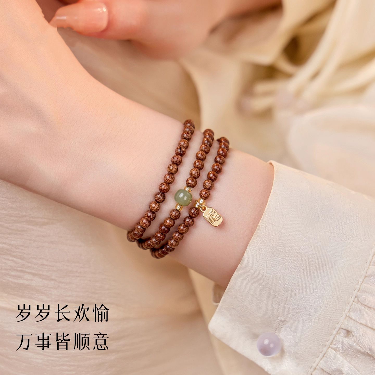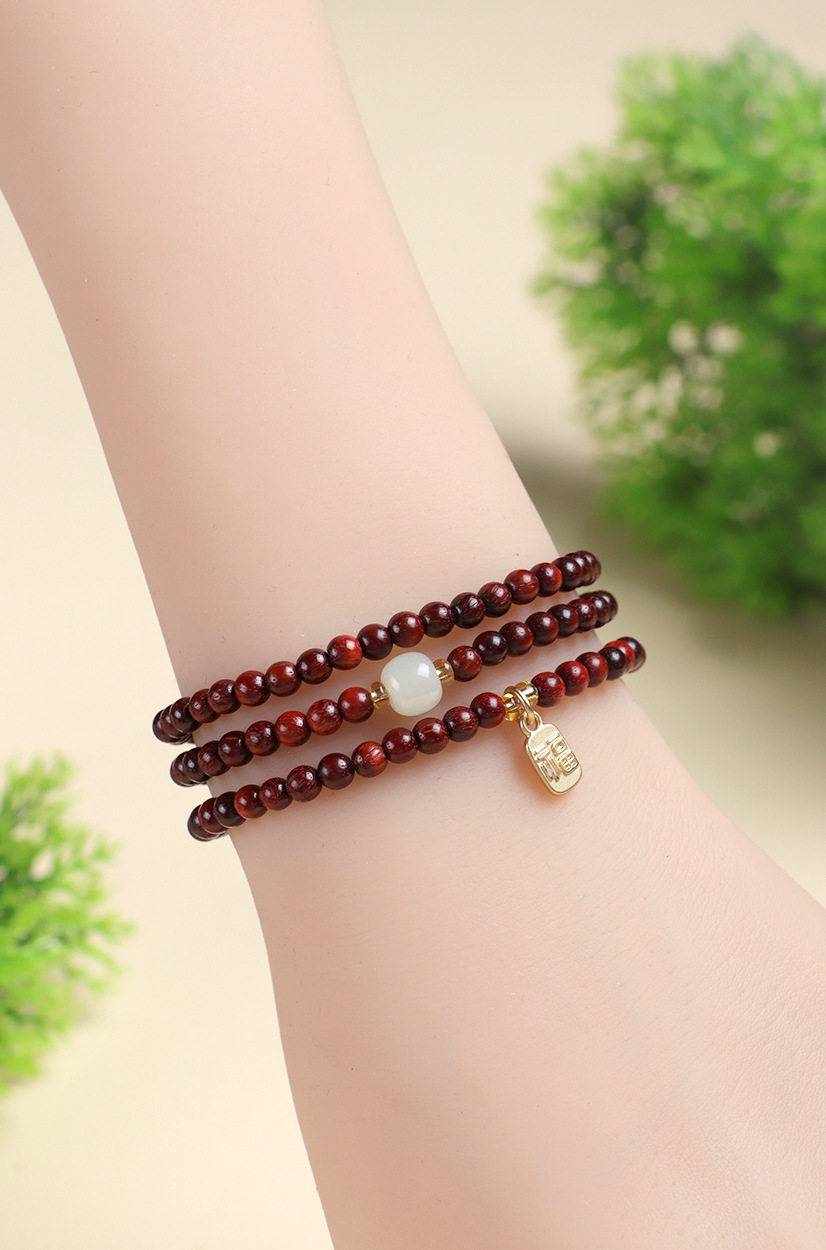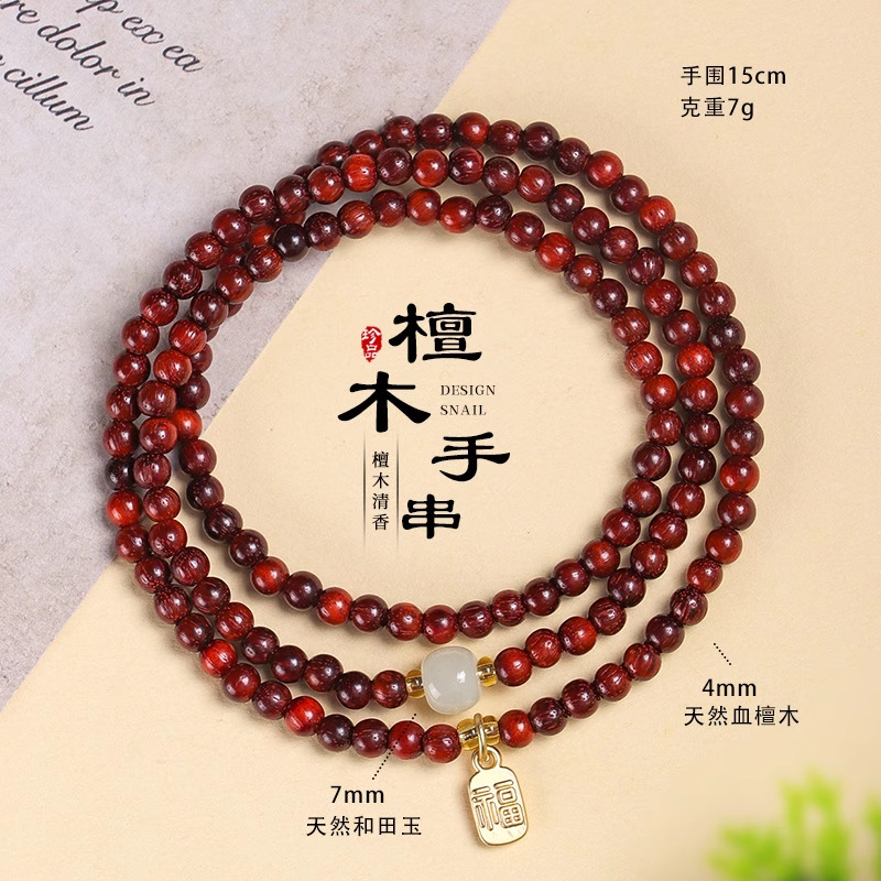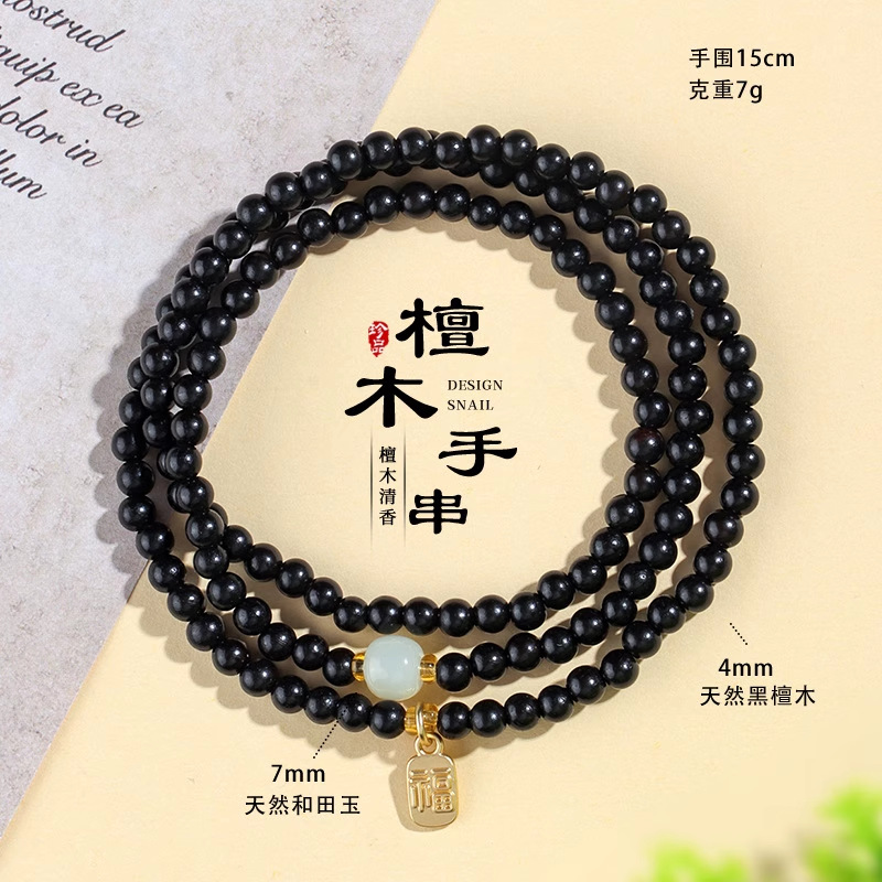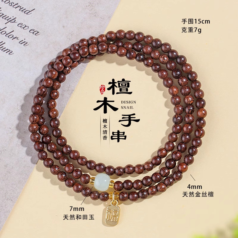 普陀山天然金丝檀多圈手串男女士老紫檀佛珠文玩盘玩手链闺蜜同款