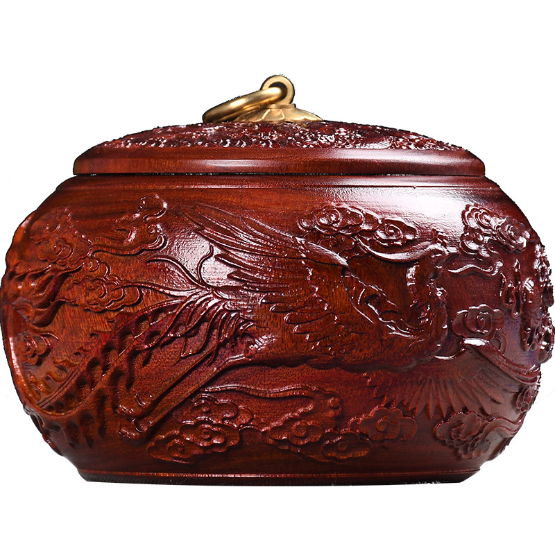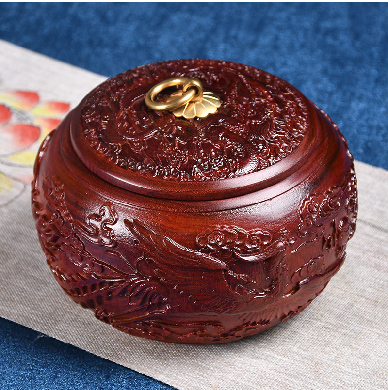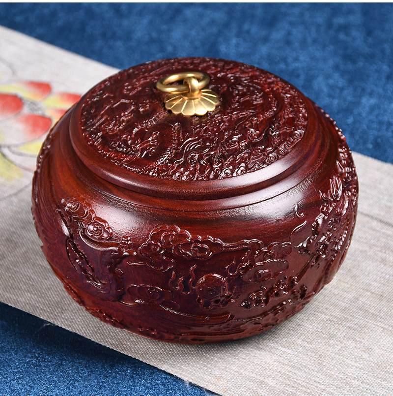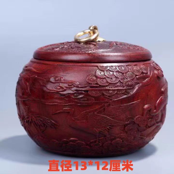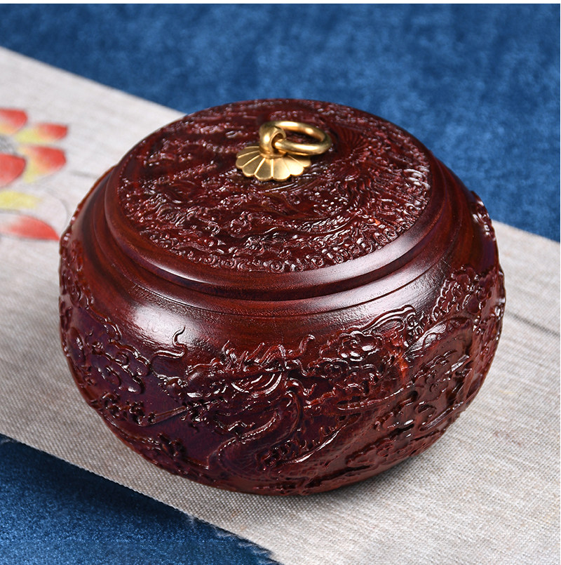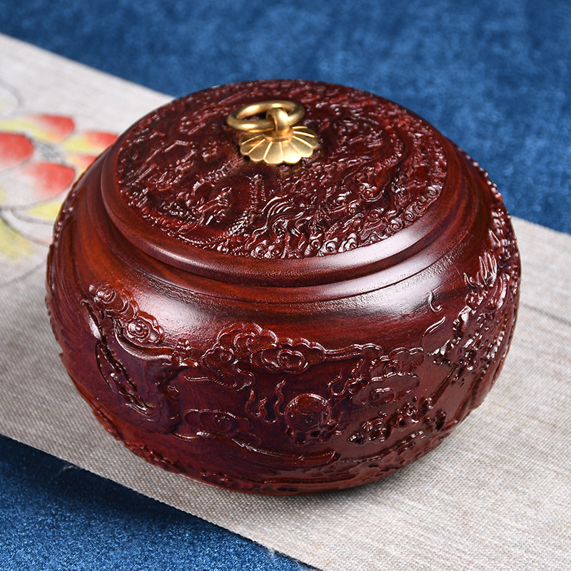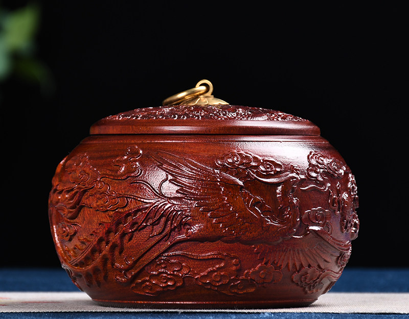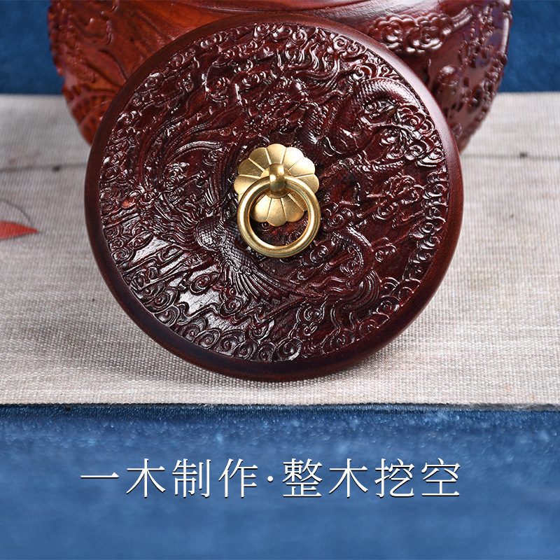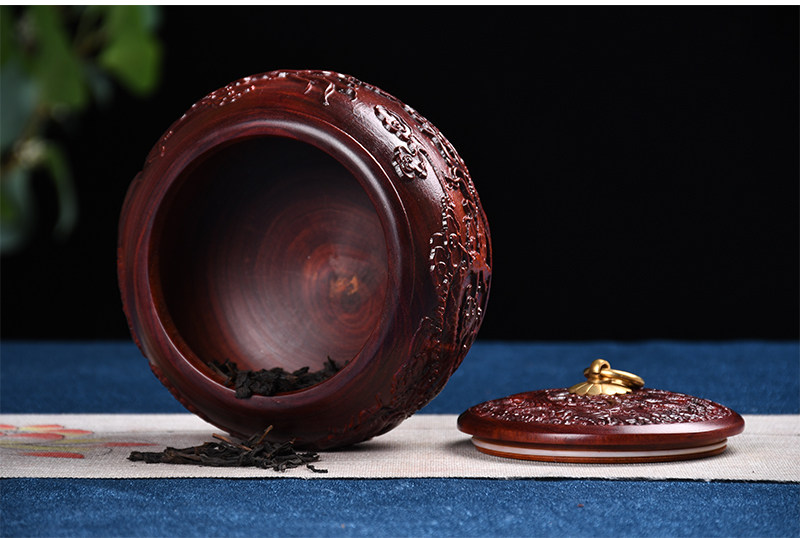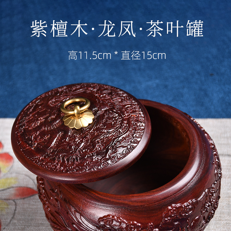 紫檀木雕茶叶罐实木整料雕刻中式散装茶叶收纳储存密封木质茶叶盒