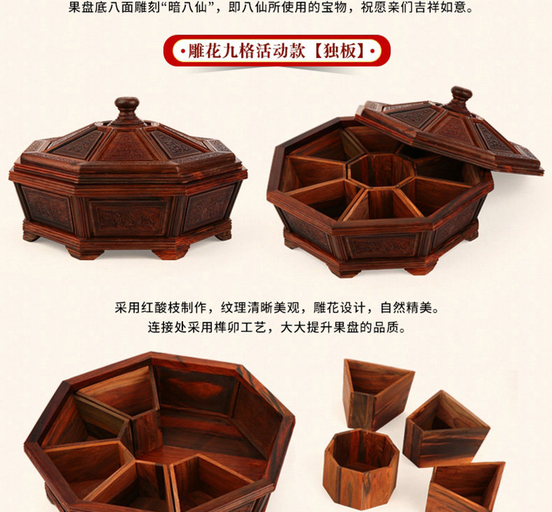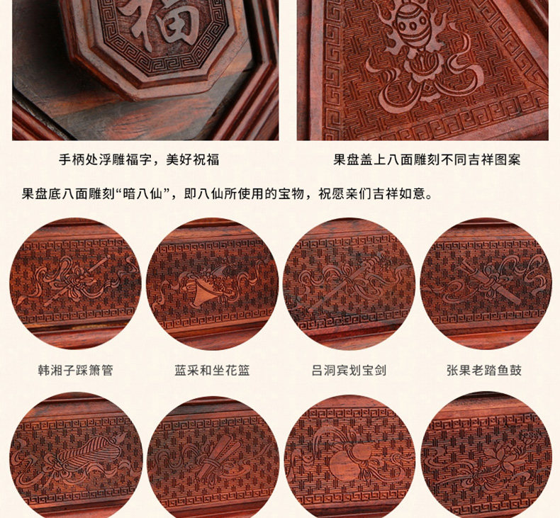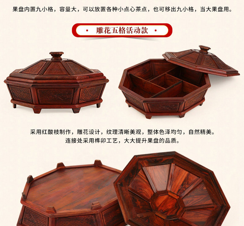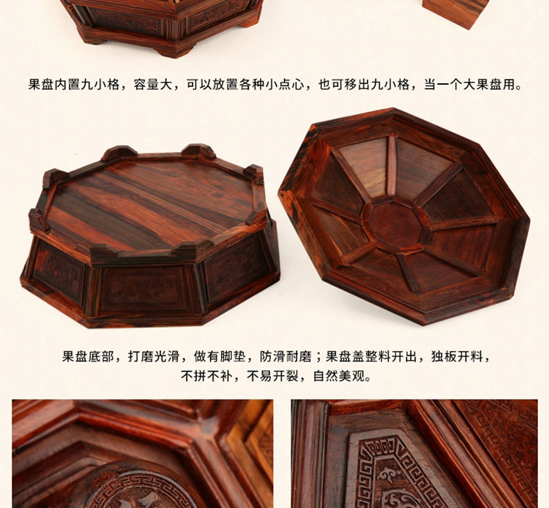 非洲紫檀果盘实木红木干果篮客厅摆件果盒红酸枝盖零食盘中式礼品