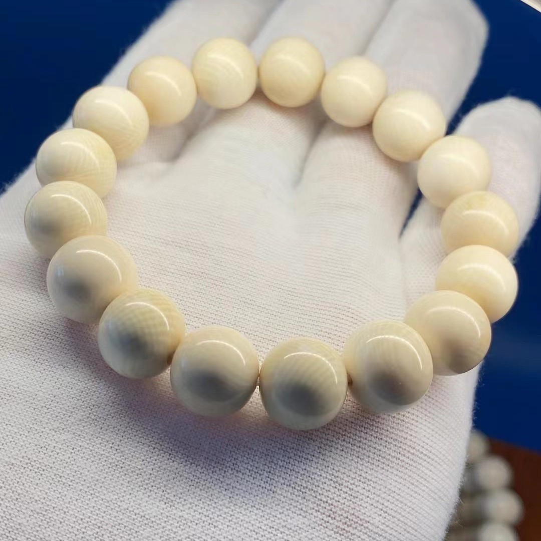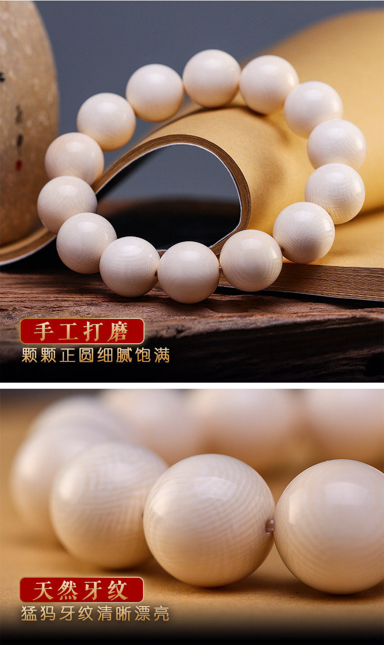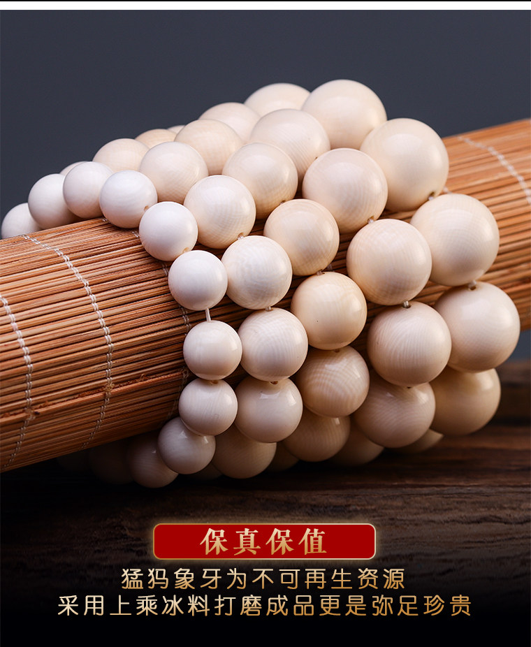 天然保真猛犸象牙手串男20mm 满纹冰料果冻 猛犸牙男女士佛珠手链