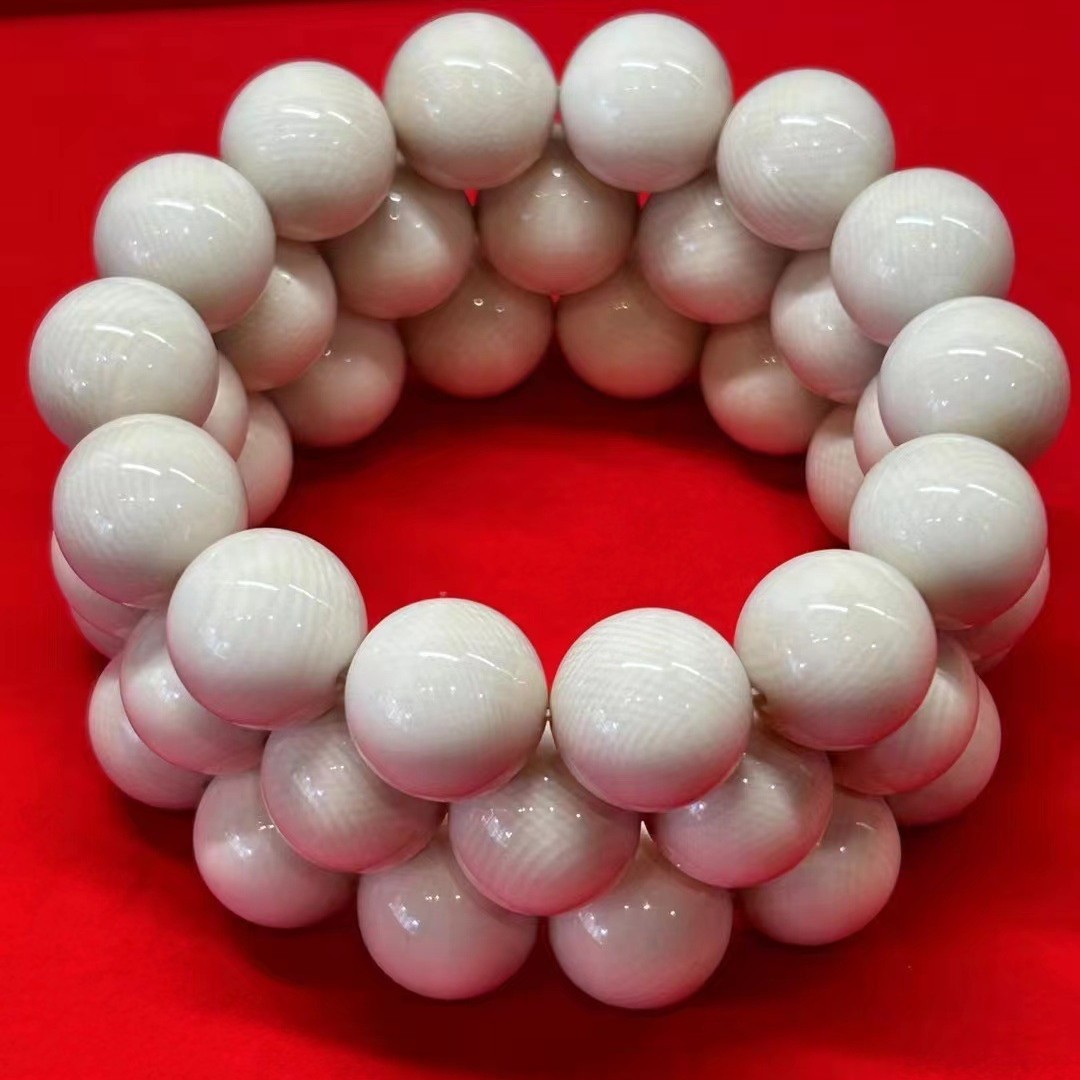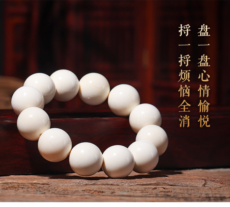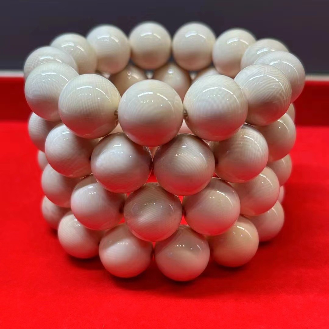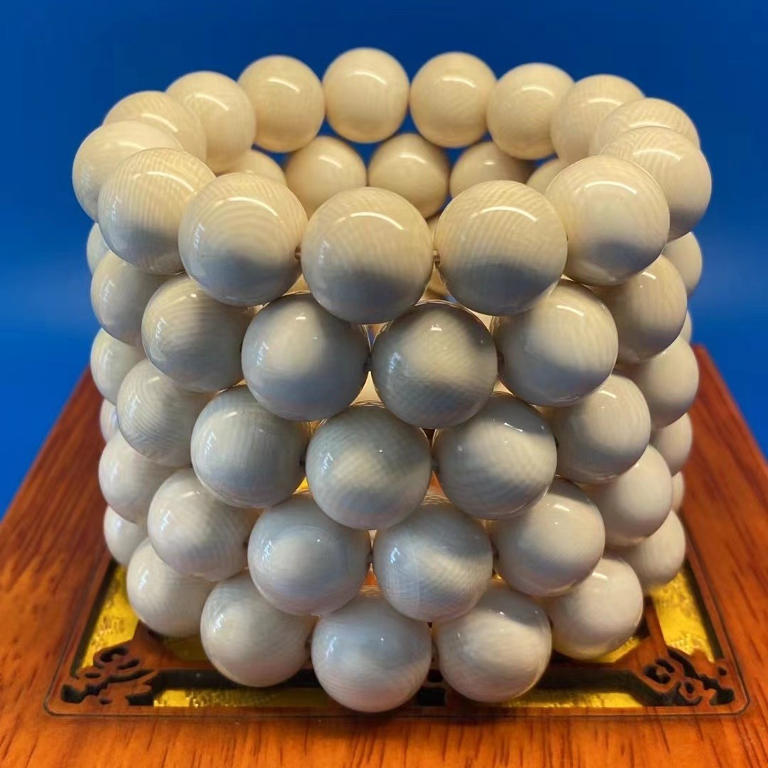 天然保真猛犸象牙手串男20mm 满纹冰料果冻 猛犸牙男女士佛珠手链