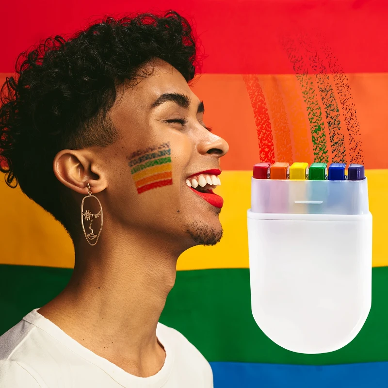 派对节日儿童球迷化妆脸彩6色彩虹手指画舞台绘画diy人体彩绘