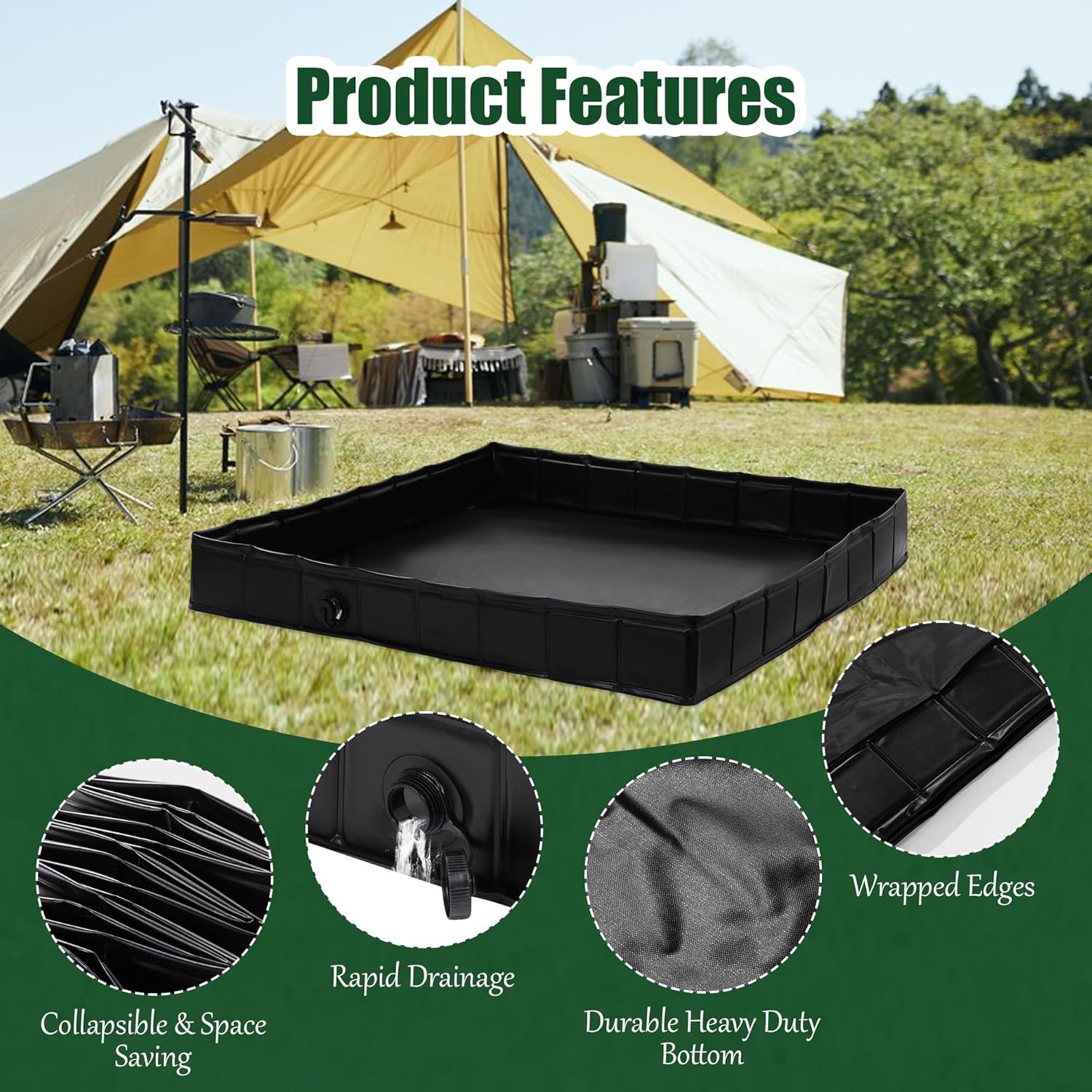跨境热销成人PVC淋浴盆户外可移动接水帐篷淋浴池便携式洗澡水池