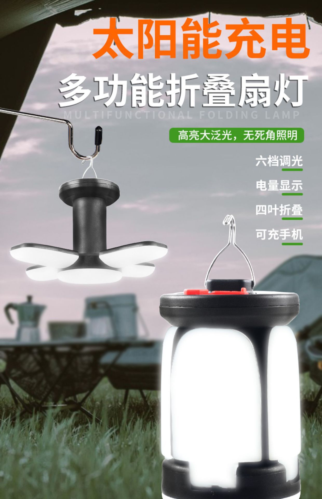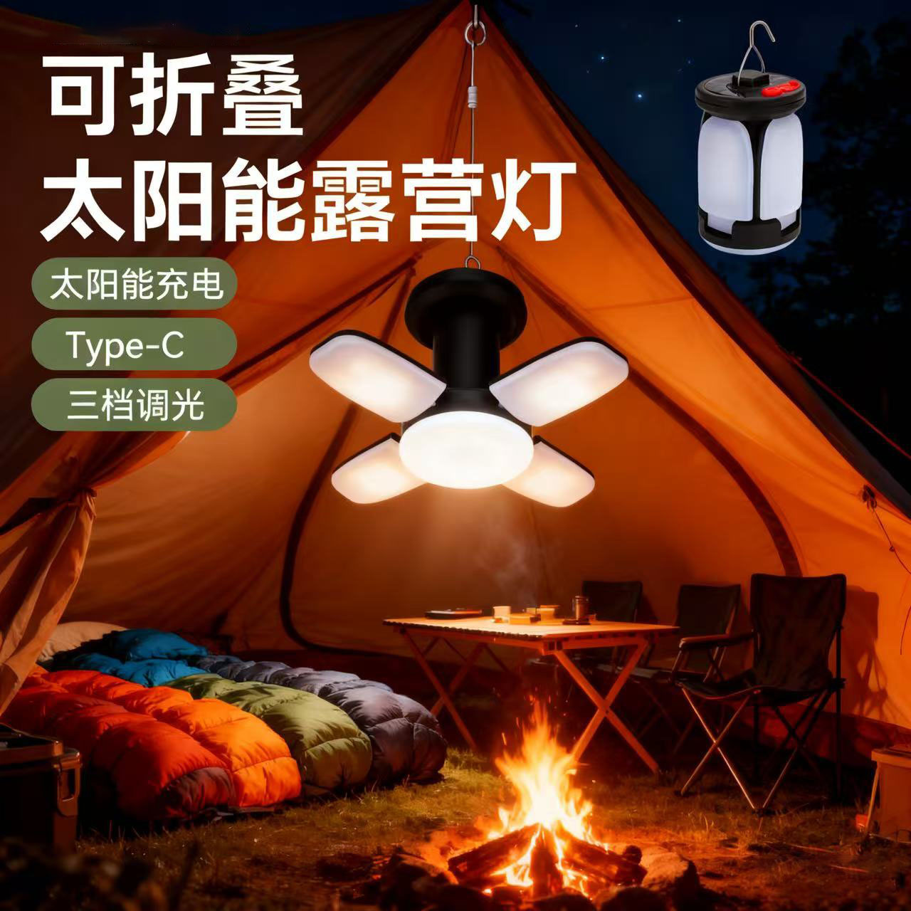 新款户外太阳能露营灯usb充电式帐篷灯夜市摆摊家用应急照明灯