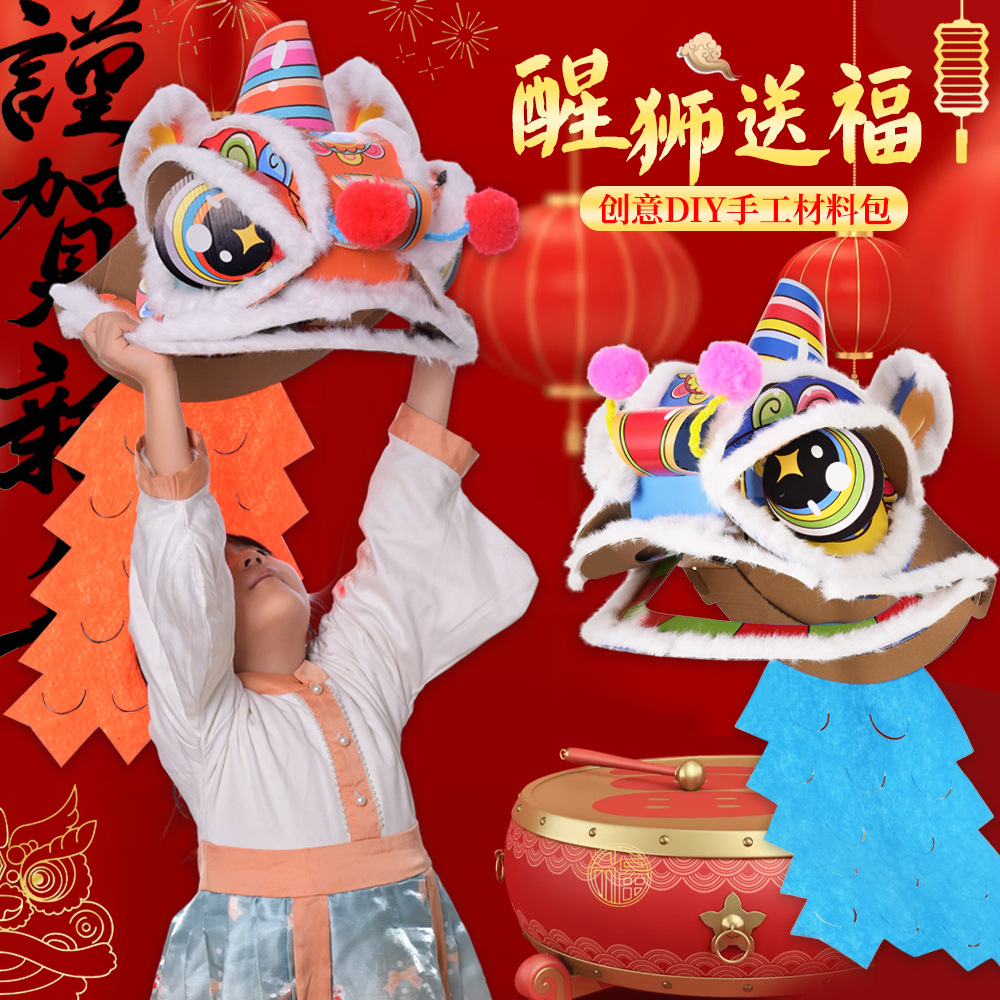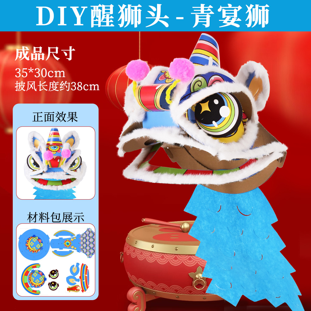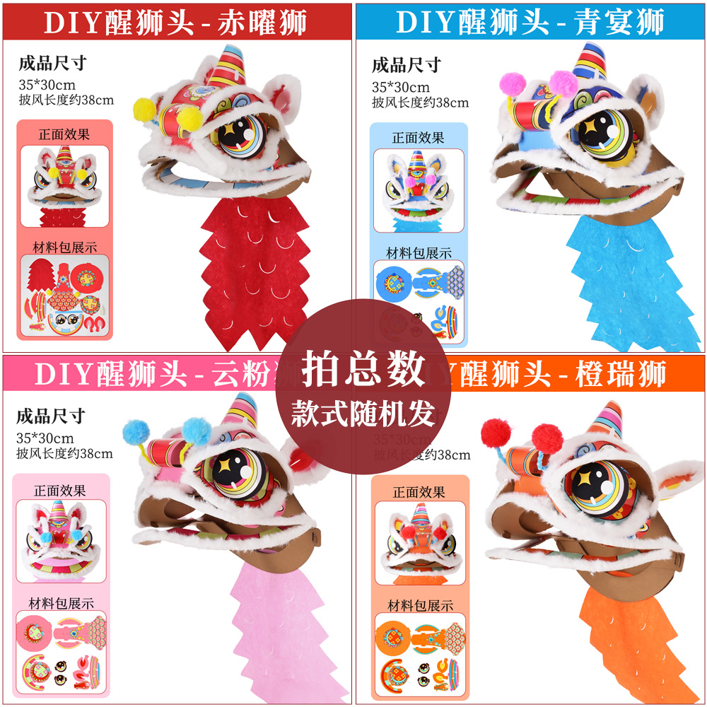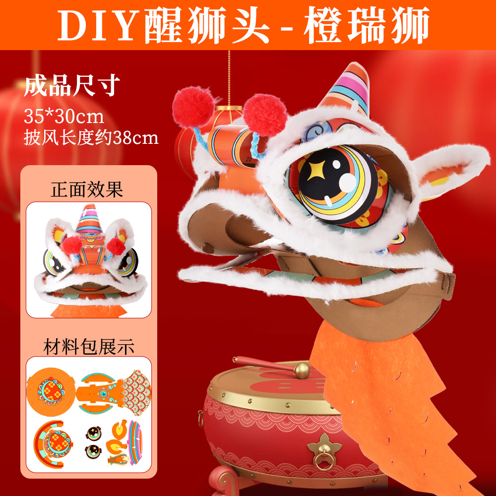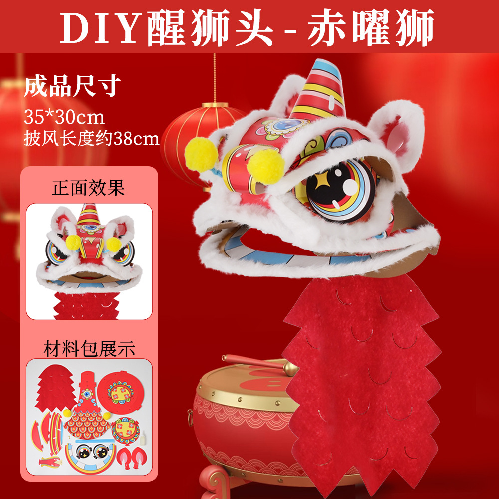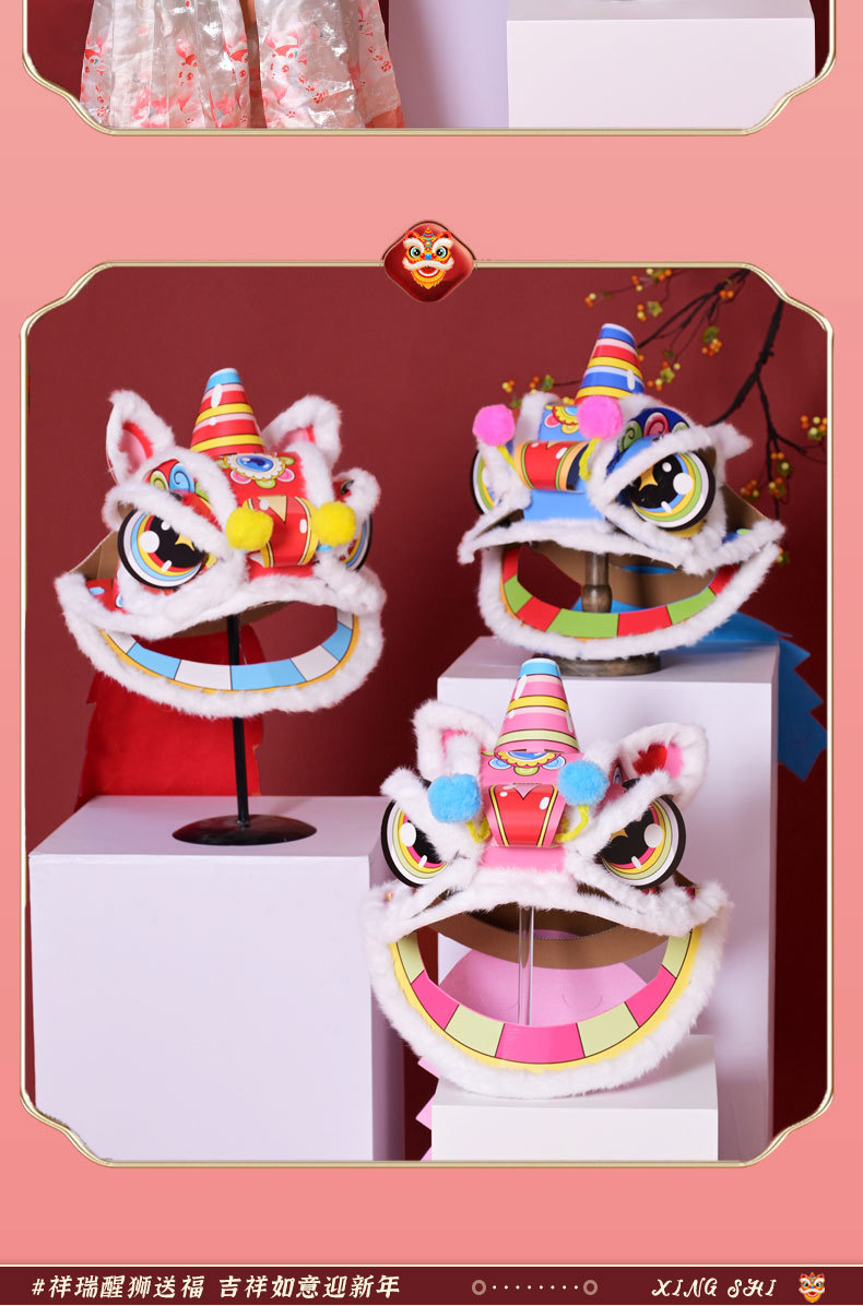 舞狮醒狮羊毛手工舞狮子儿童醒狮狮子头舞狮头饰套装学校表演狮子