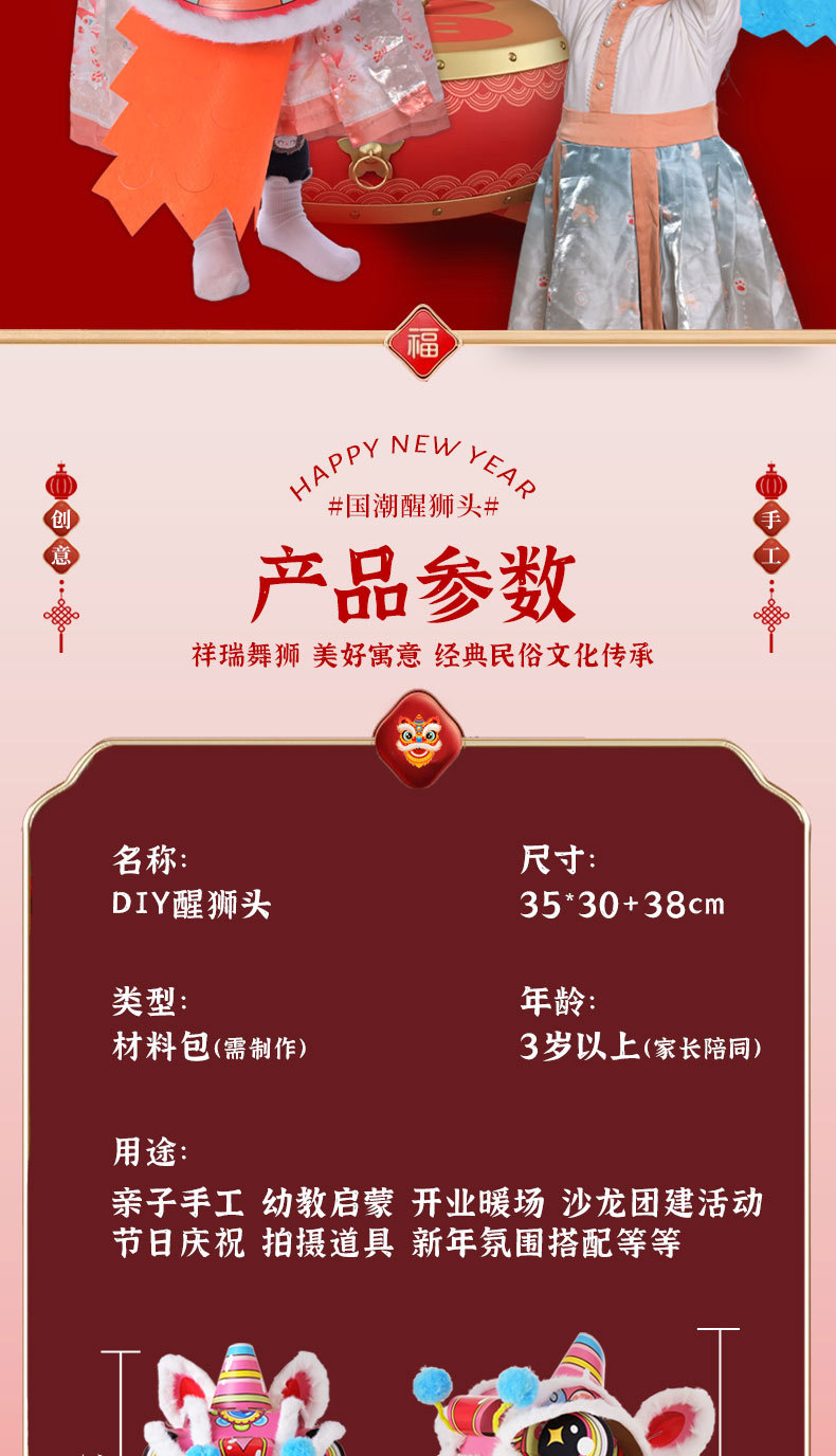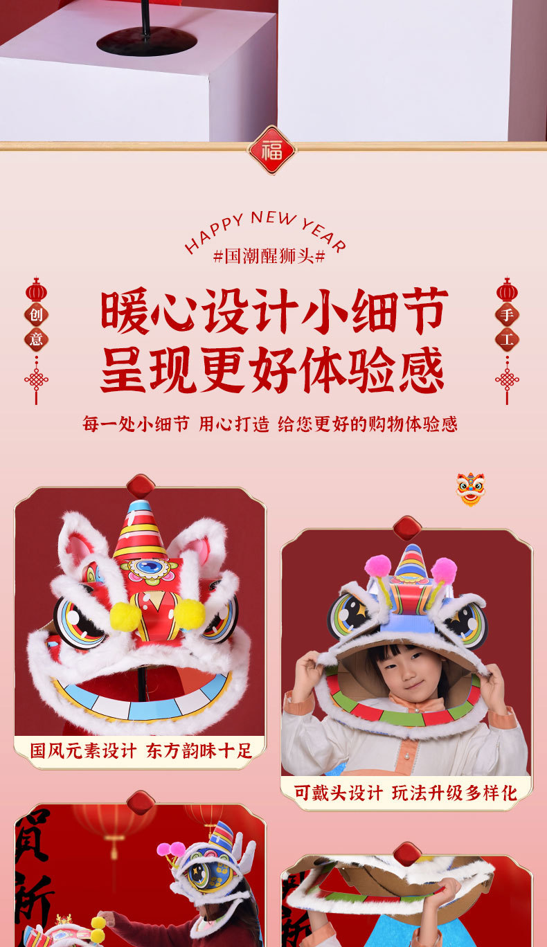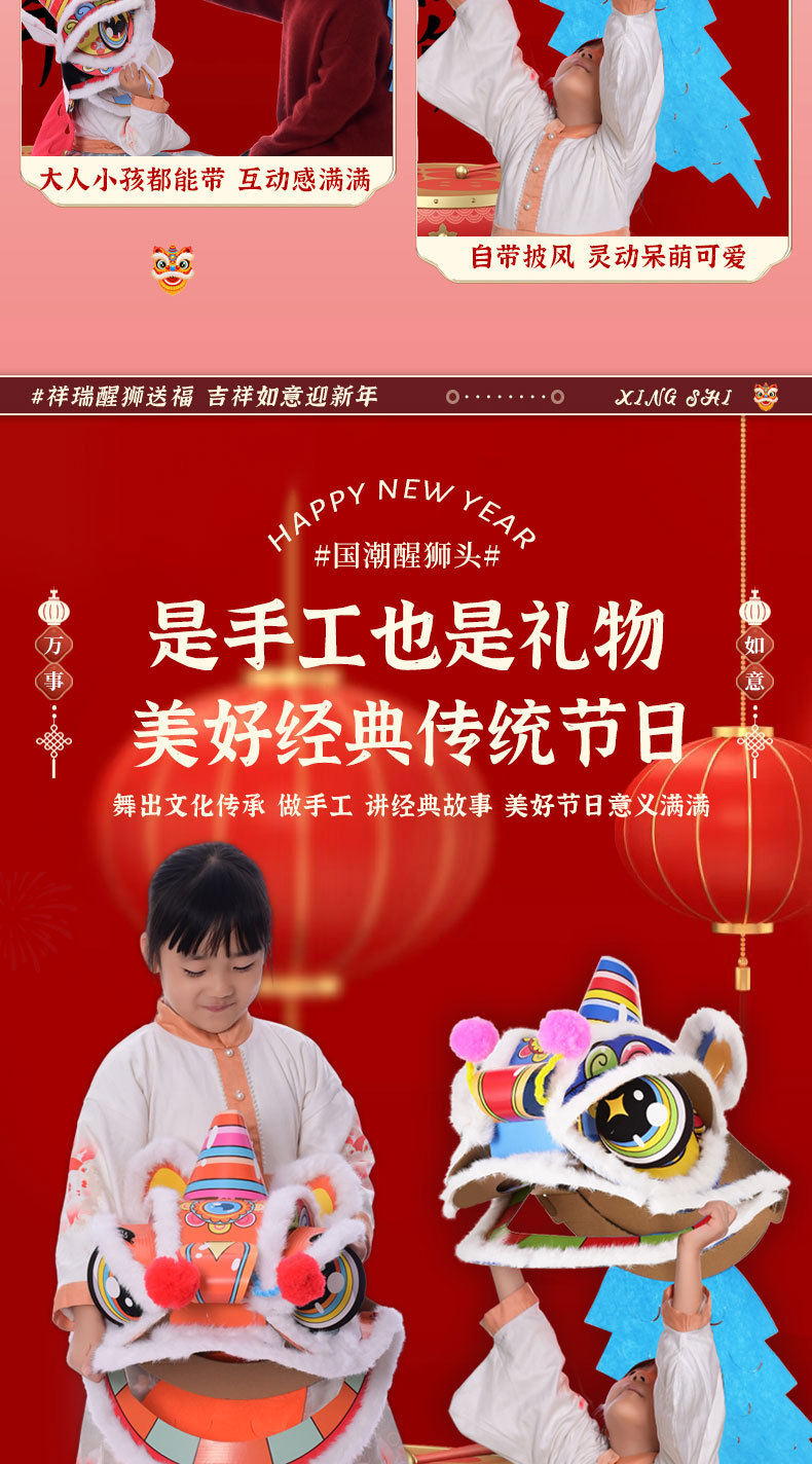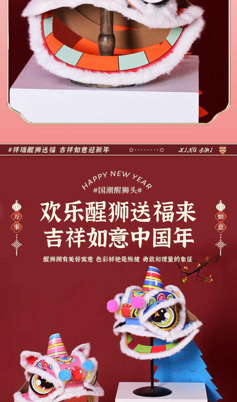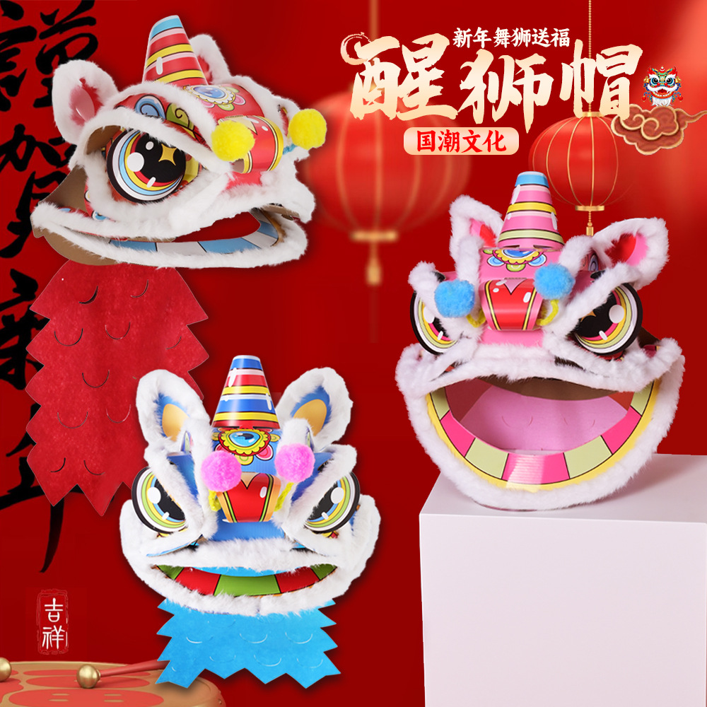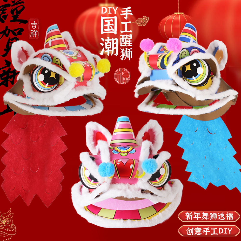 舞狮醒狮羊毛手工舞狮子儿童醒狮狮子头舞狮头饰套装学校表演狮子
