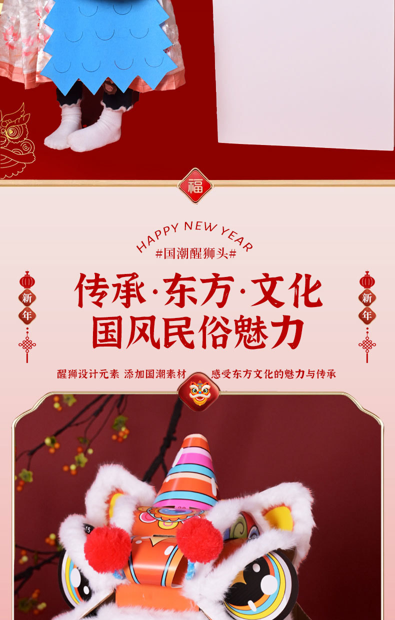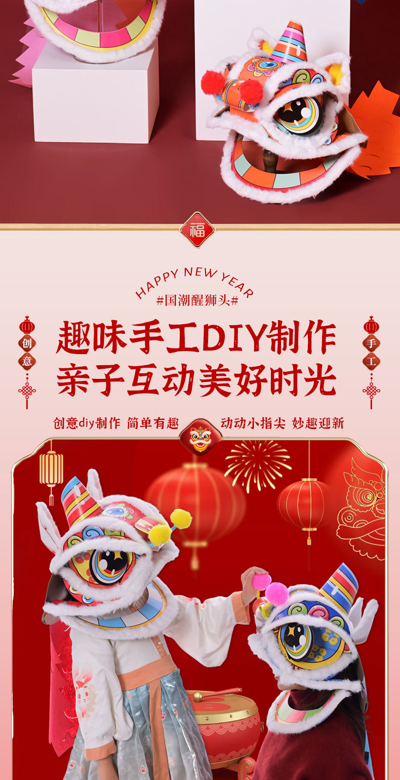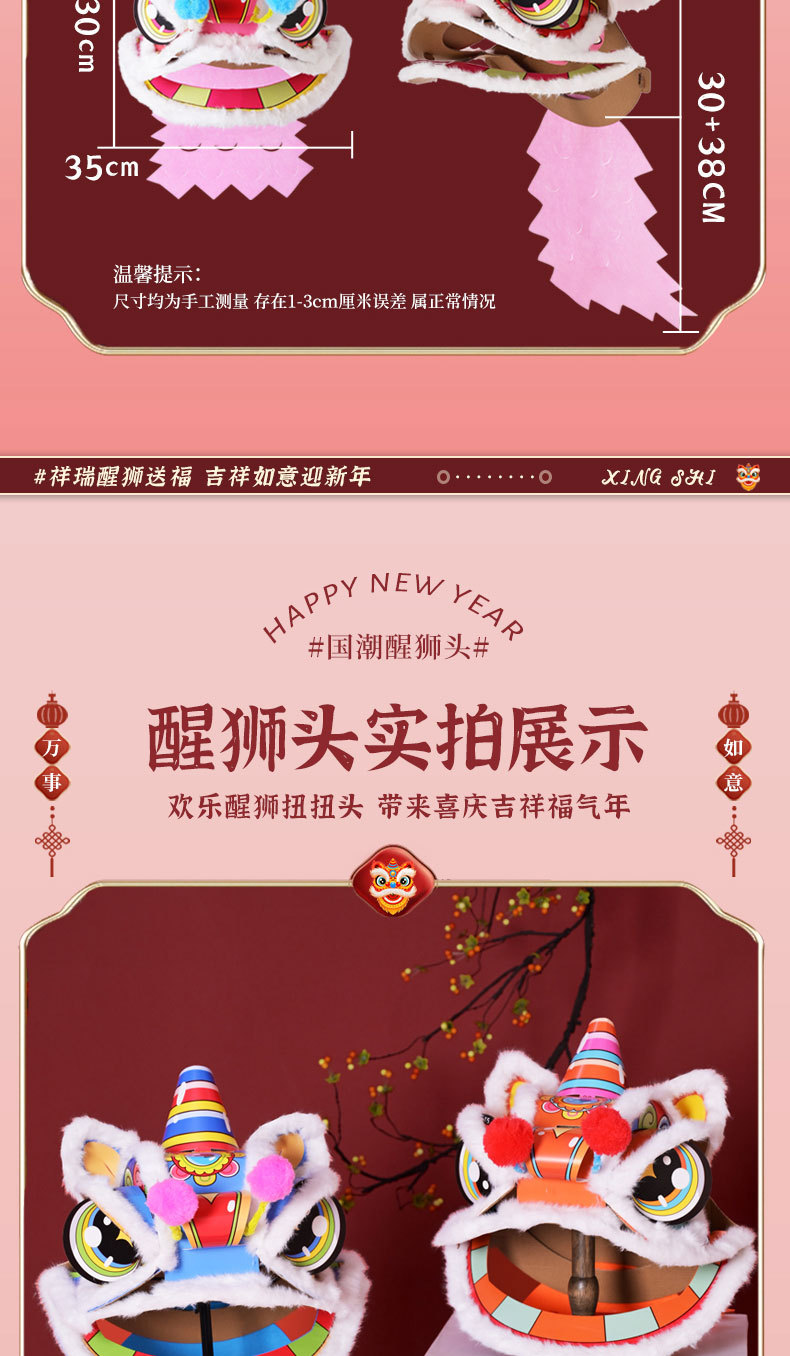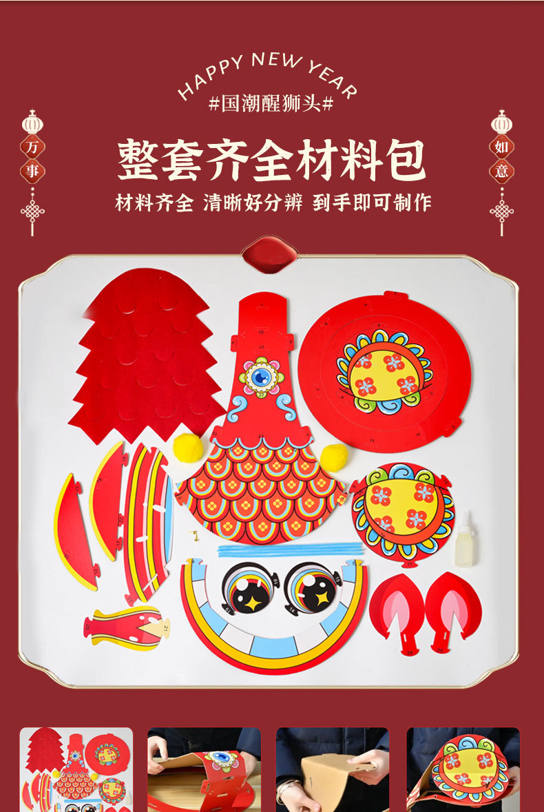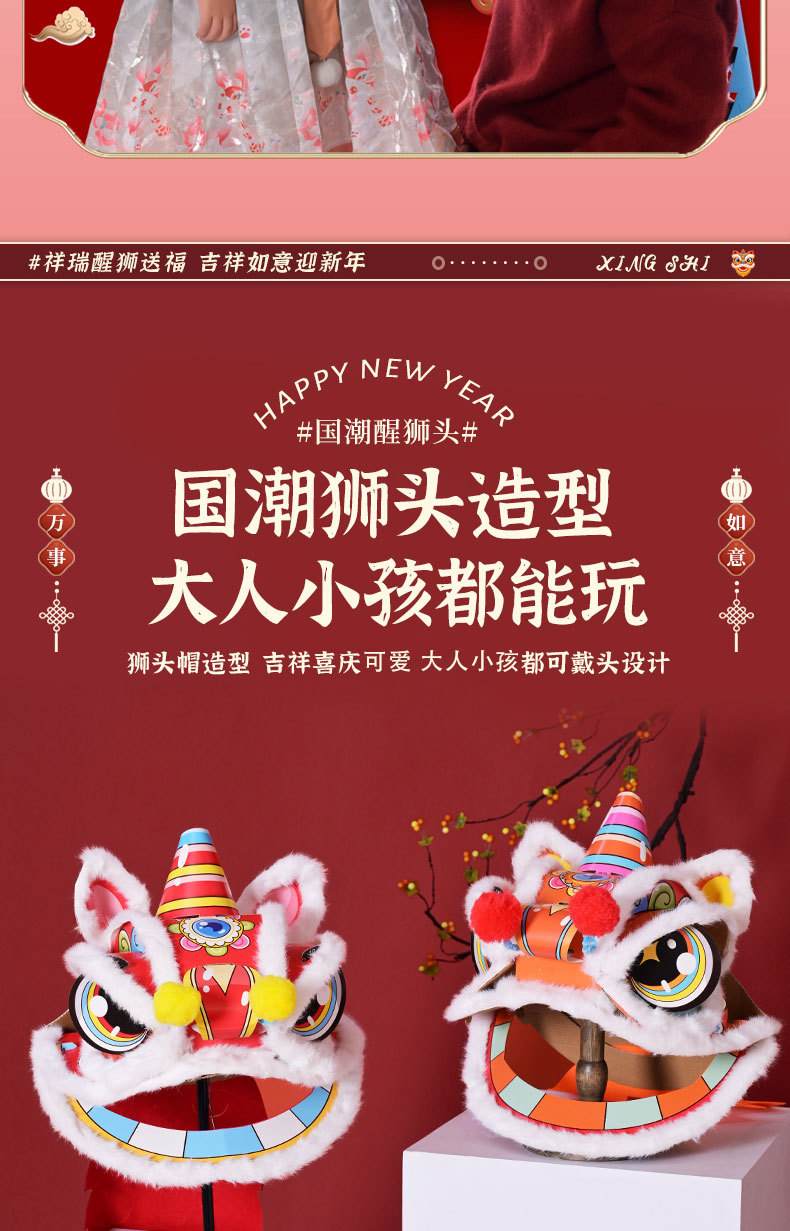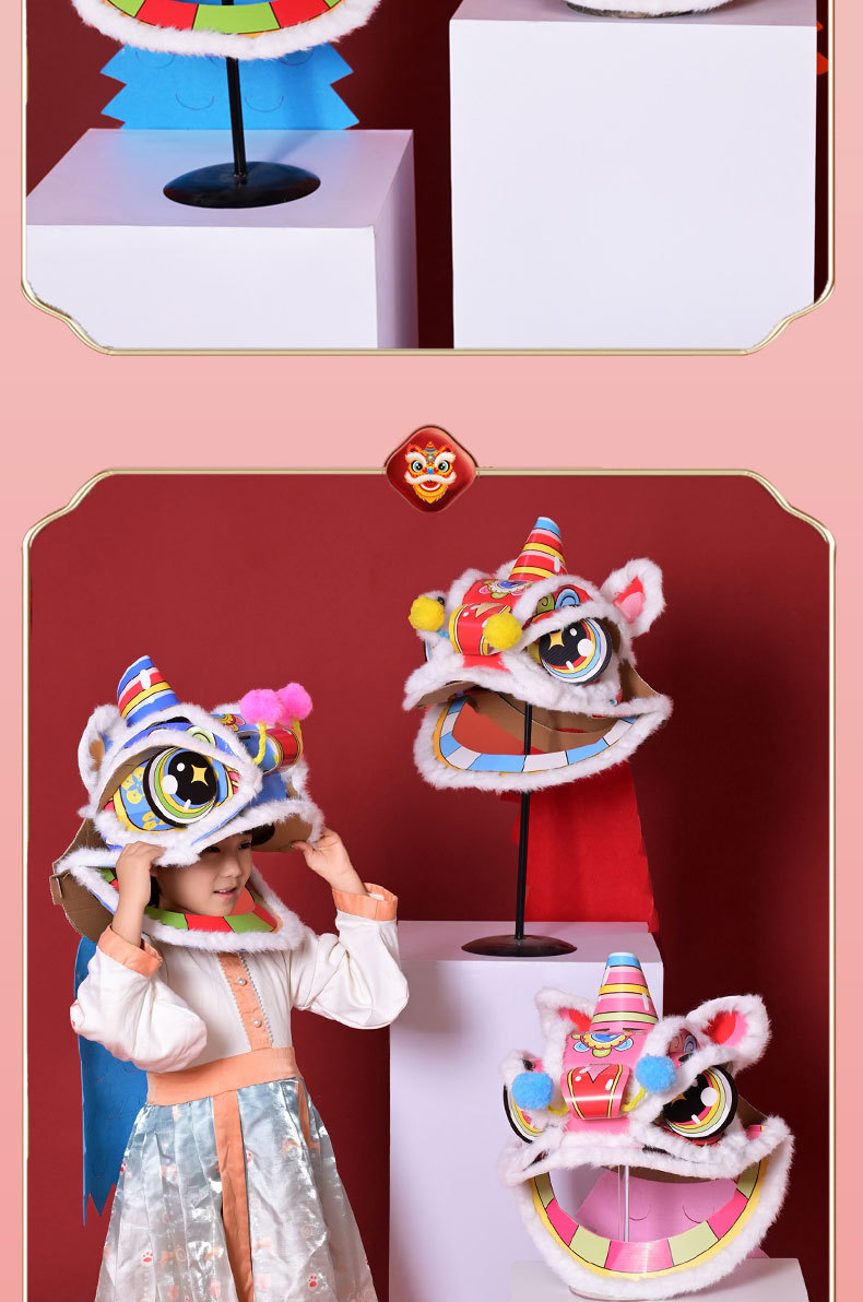 舞狮醒狮羊毛手工舞狮子儿童醒狮狮子头舞狮头饰套装学校表演狮子