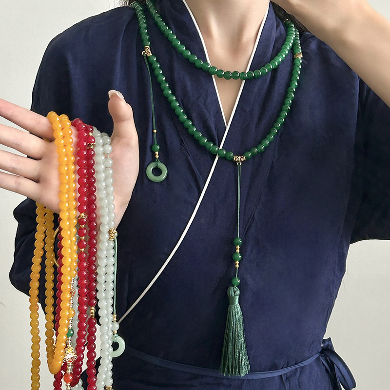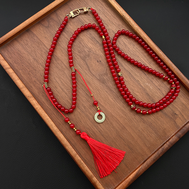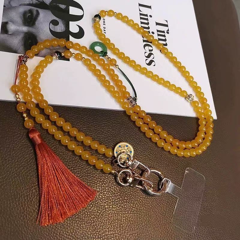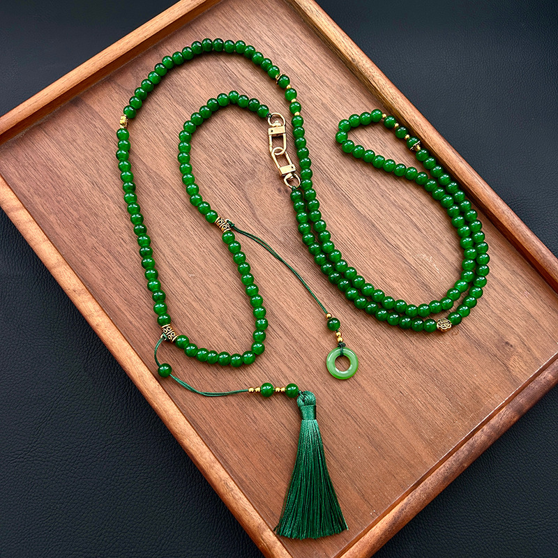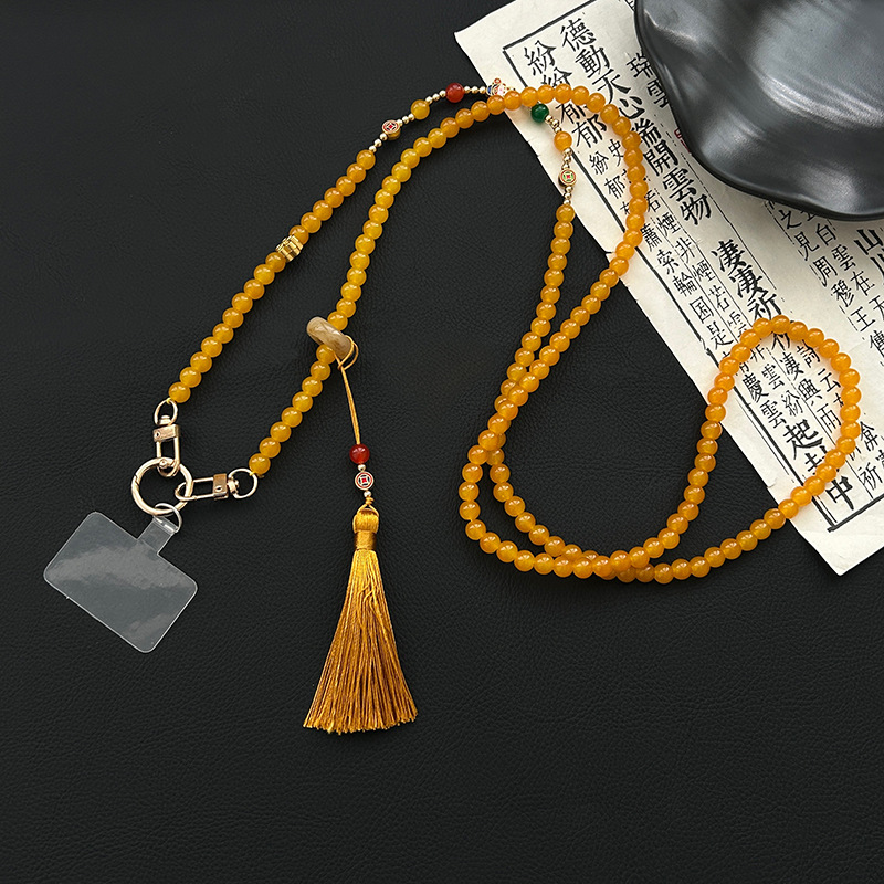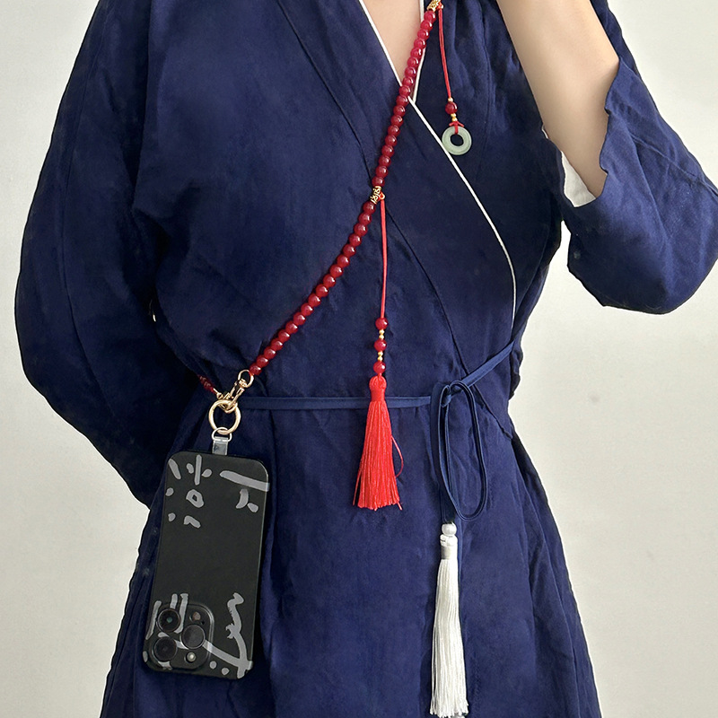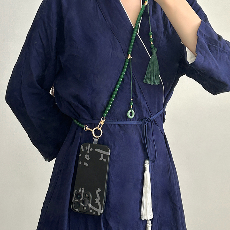 古风长款串珠如意环手机链项链新中式流苏多功能可斜挎毛衣链配饰