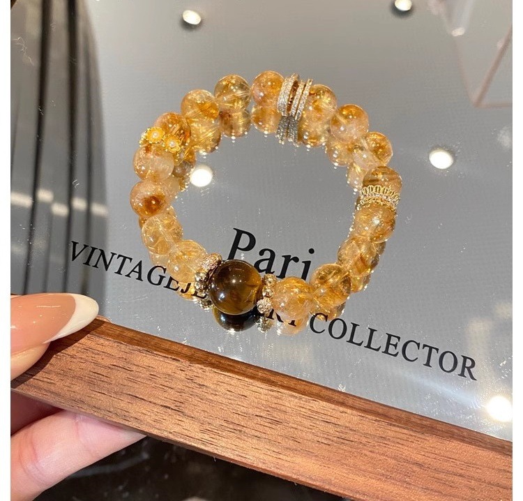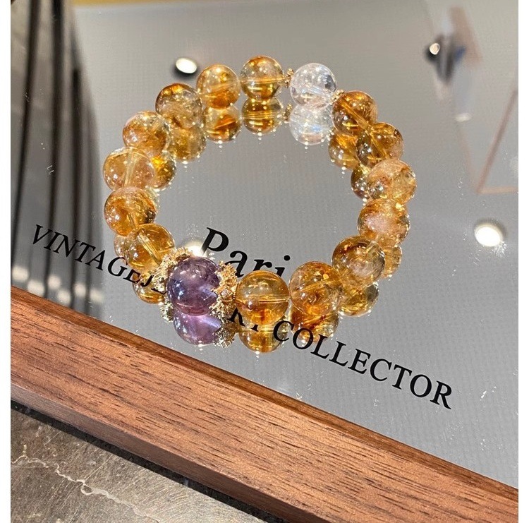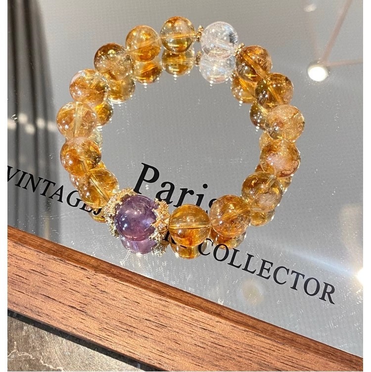 天然紫塔晶黄塔晶手链黄水晶虎眼石紫水晶紫气东来财手串女